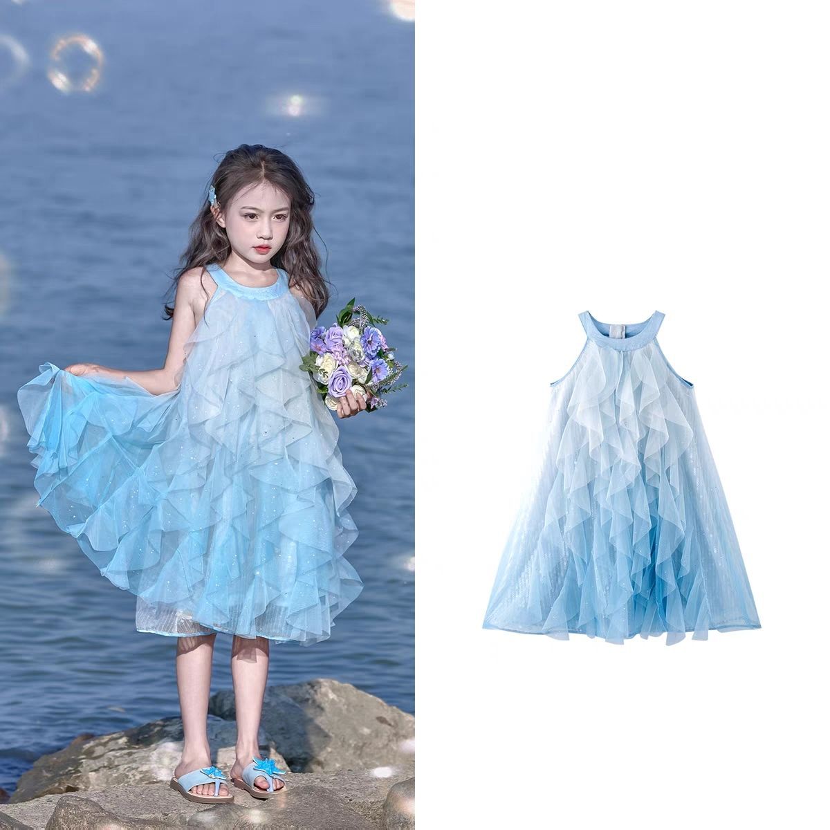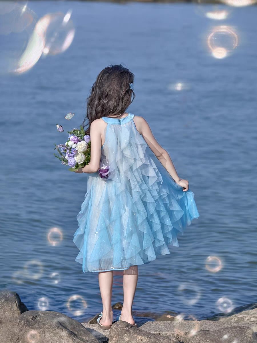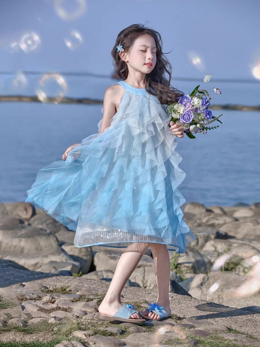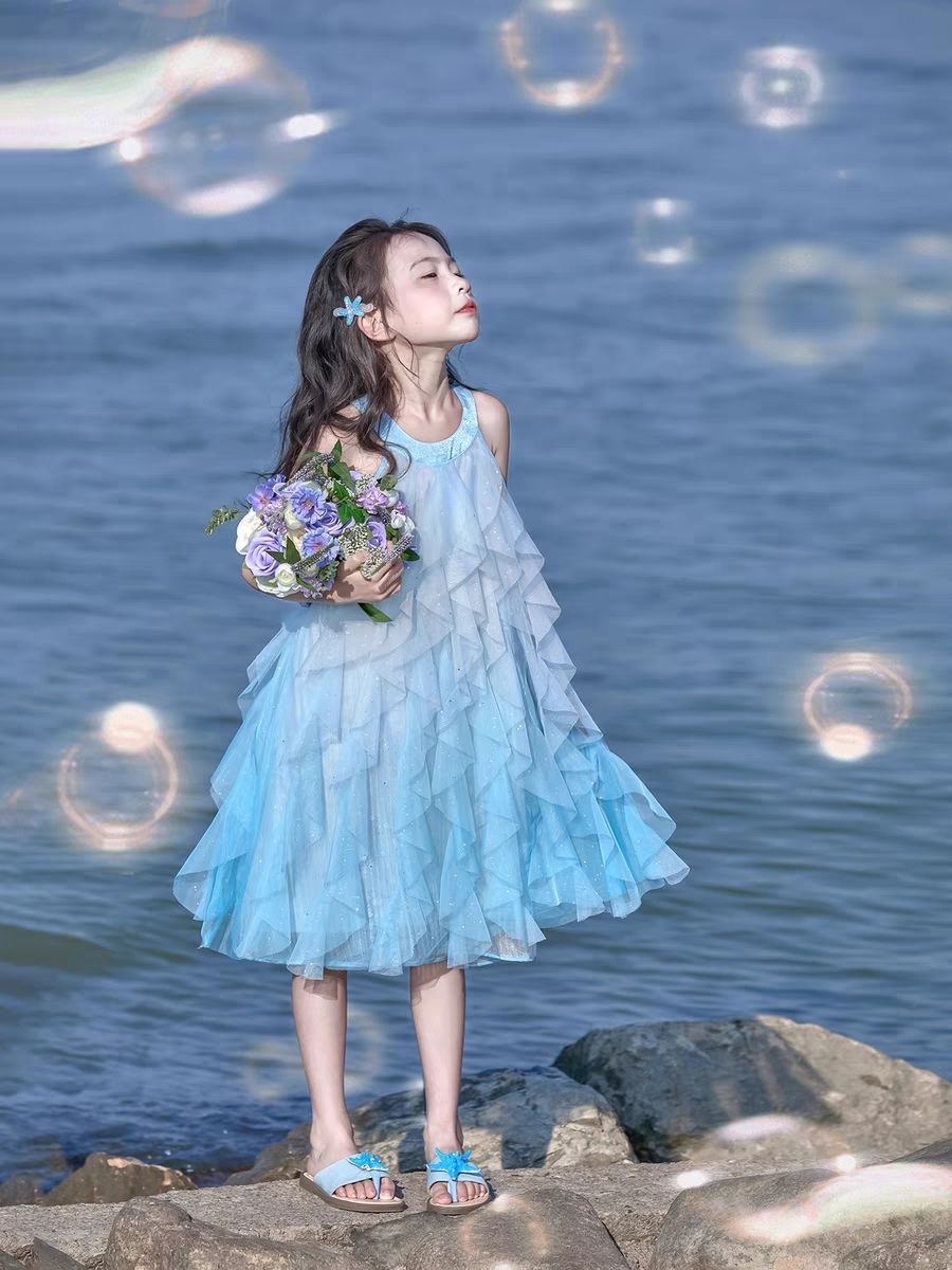 여자 여름 공주 스타일 드레스 2025 새로운 여름 드레스 어린이 민소매 아기 드레스 스커트 드레스스토어 가기