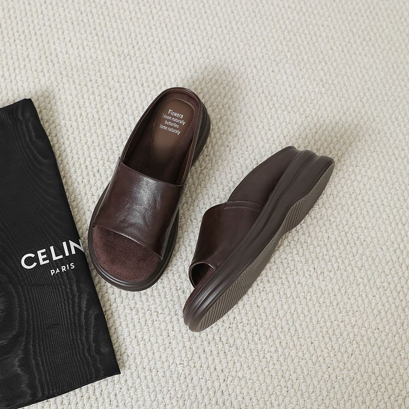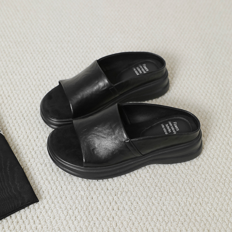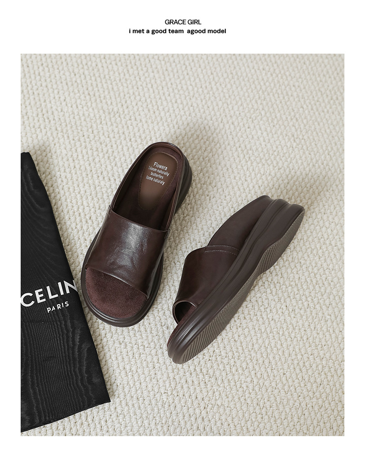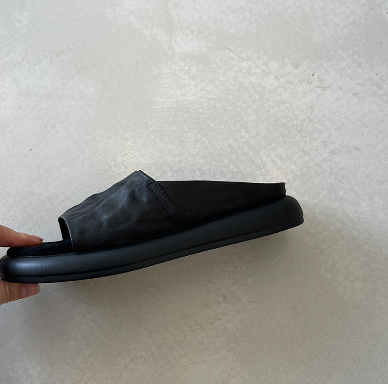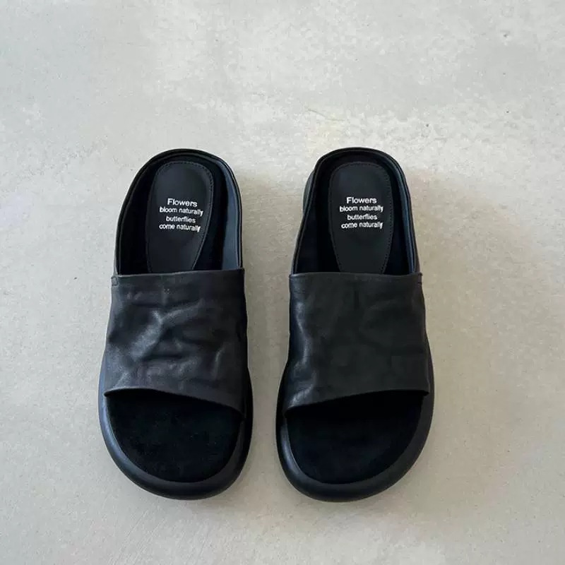 편안하고 가벼운 럭셔리 여름 새로운 스타일 프랑스 복고풍 오픈 발가락 슬리퍼 여성용 플랫 바닥 외부 착용 부드러운 밑창 두꺼운 밑창 뮬스토어 가기