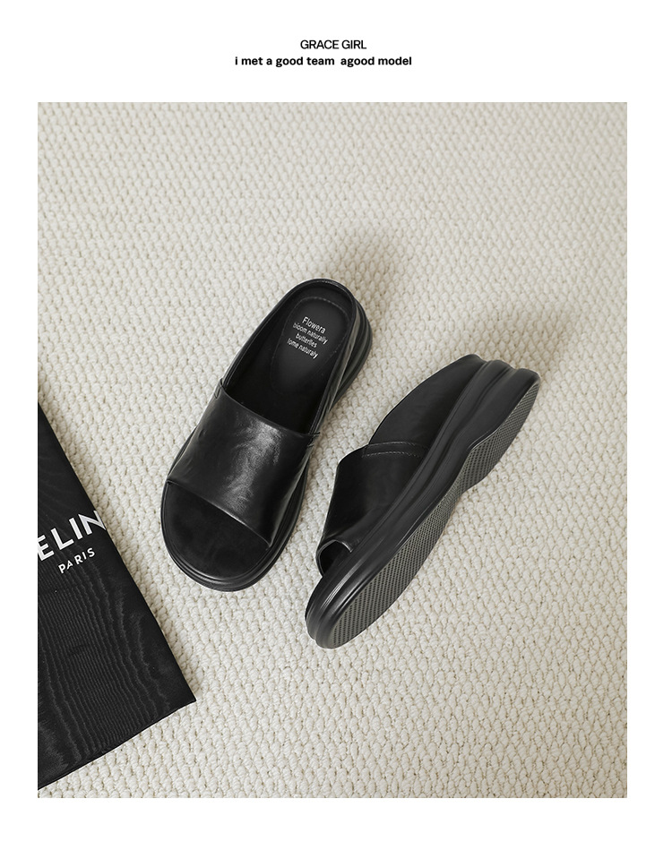 편안하고 가벼운 럭셔리 여름 새로운 스타일 프랑스 복고풍 오픈 발가락 슬리퍼 여성용 플랫 바닥 외부 착용 부드러운 밑창 두꺼운 밑창 뮬