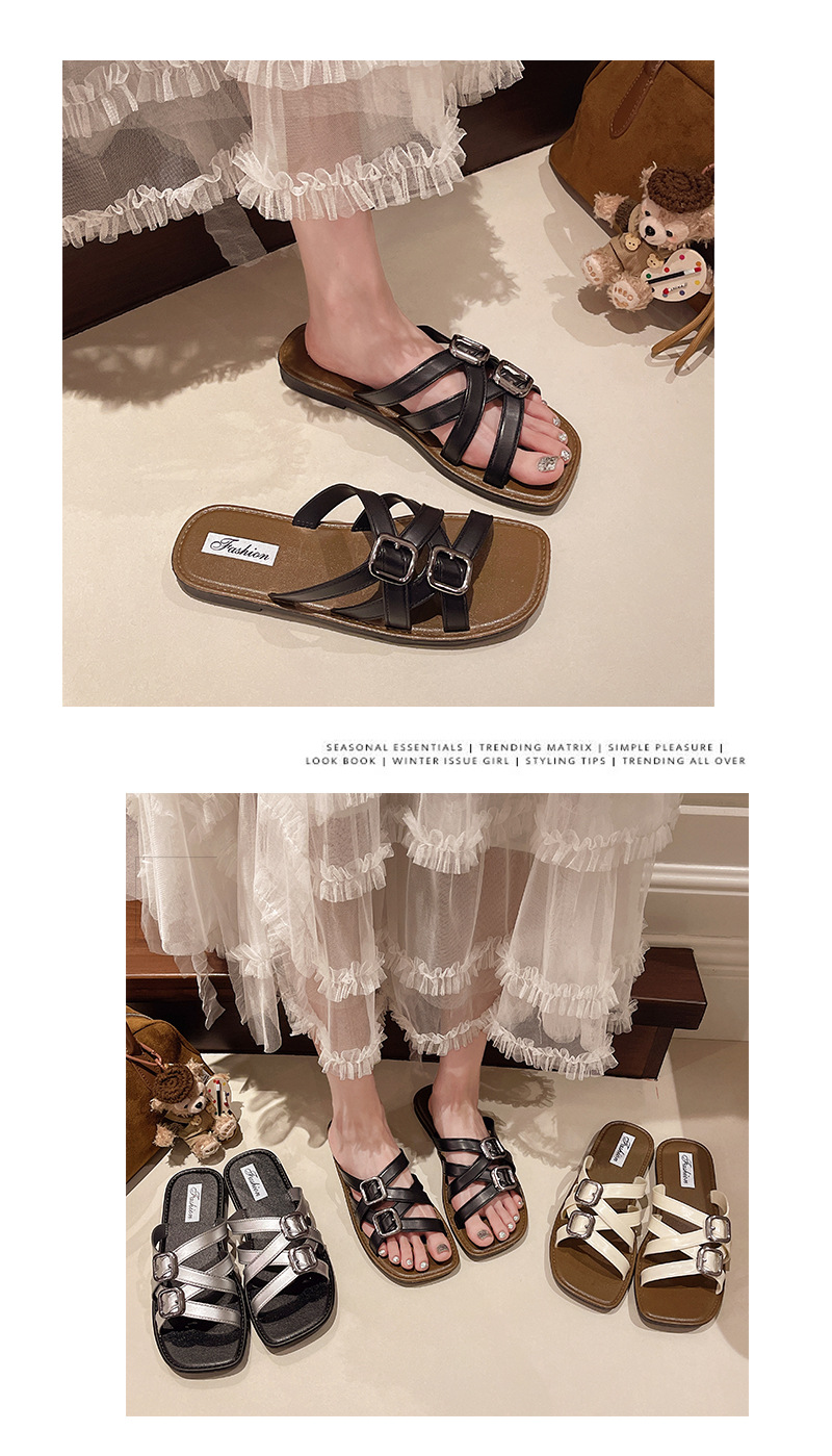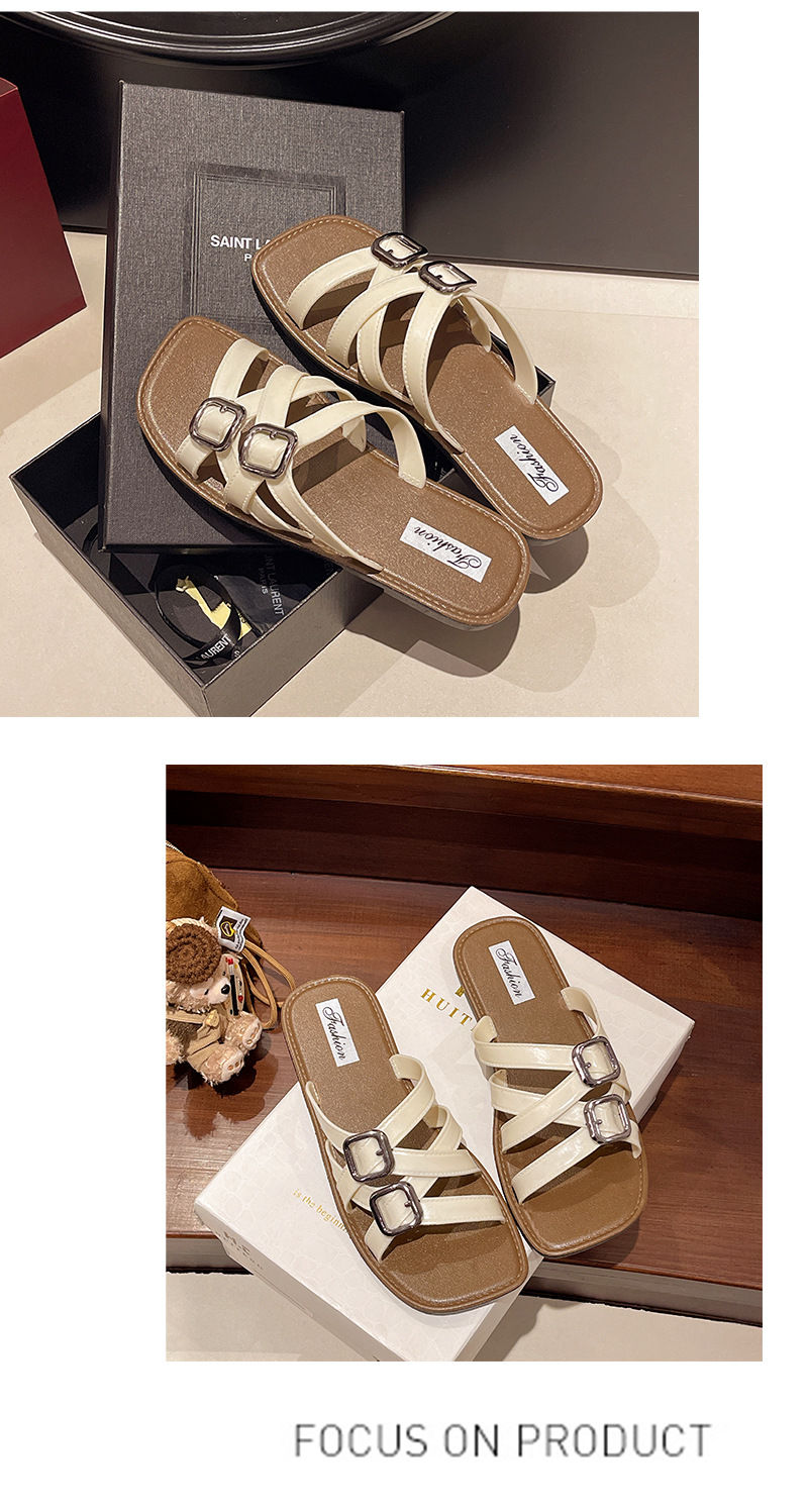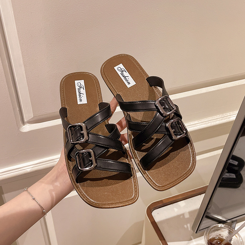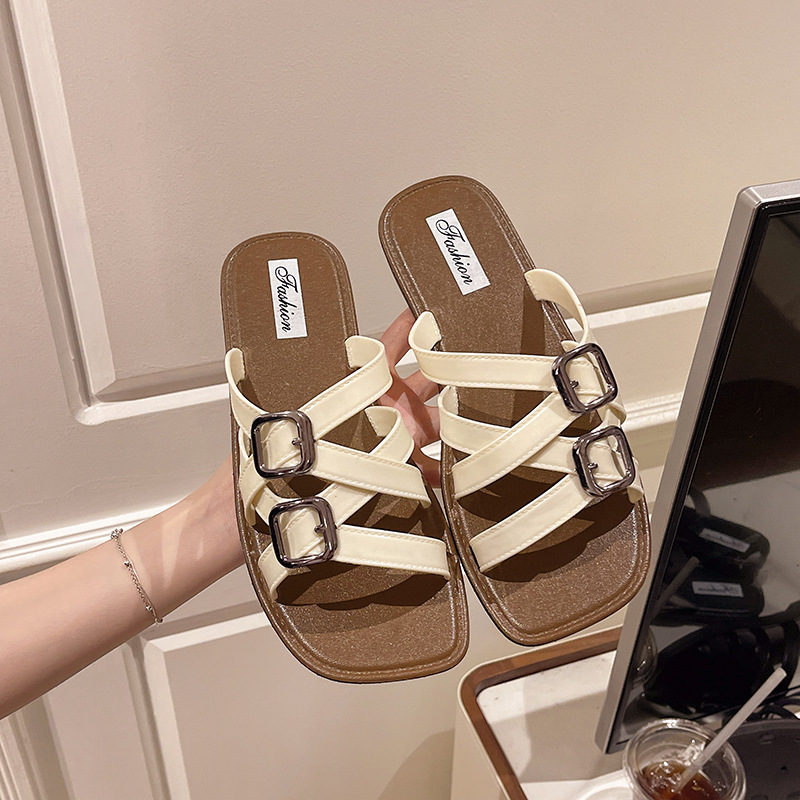 2025년 여름 새로운 패션 다재다능한 여성용 플랫 슬리퍼 로마 크로스 스트랩 샌들 비치 슈즈스토어 가기