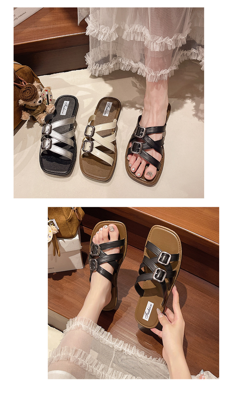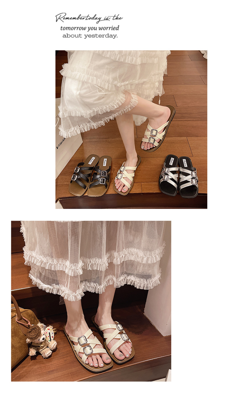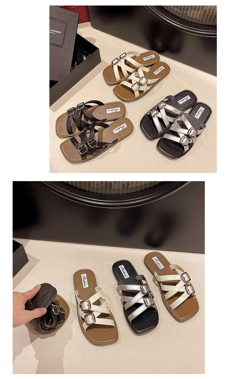 2025년 여름 새로운 패션 다재다능한 여성용 플랫 슬리퍼 로마 크로스 스트랩 샌들 비치 슈즈스토어 가기