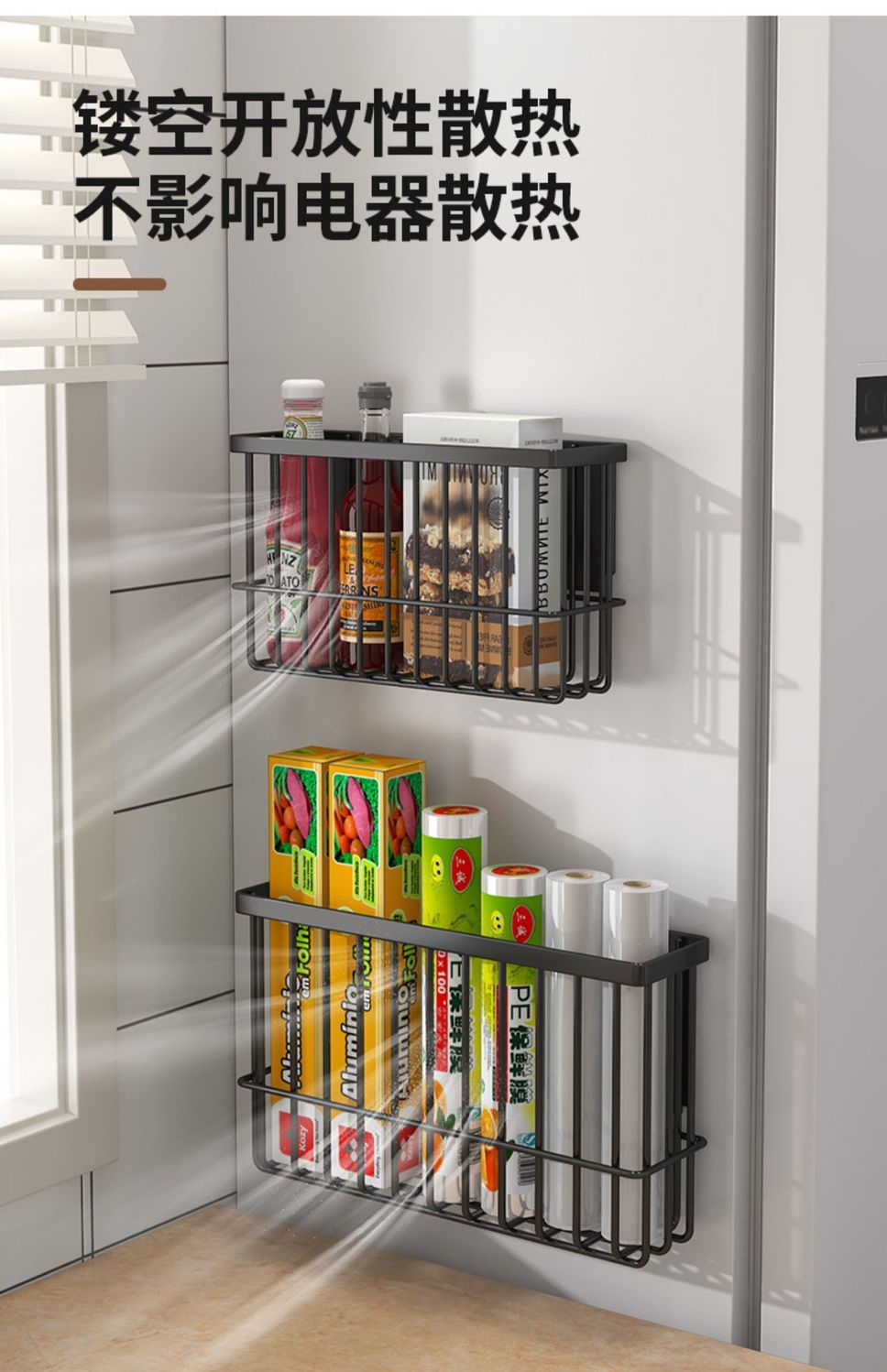 주방 냉장고 자석 수납선반, 접착필름봉투, 티슈티, 펀치 없는 가정용 조미료 접착필름 수납선반스토어 가기