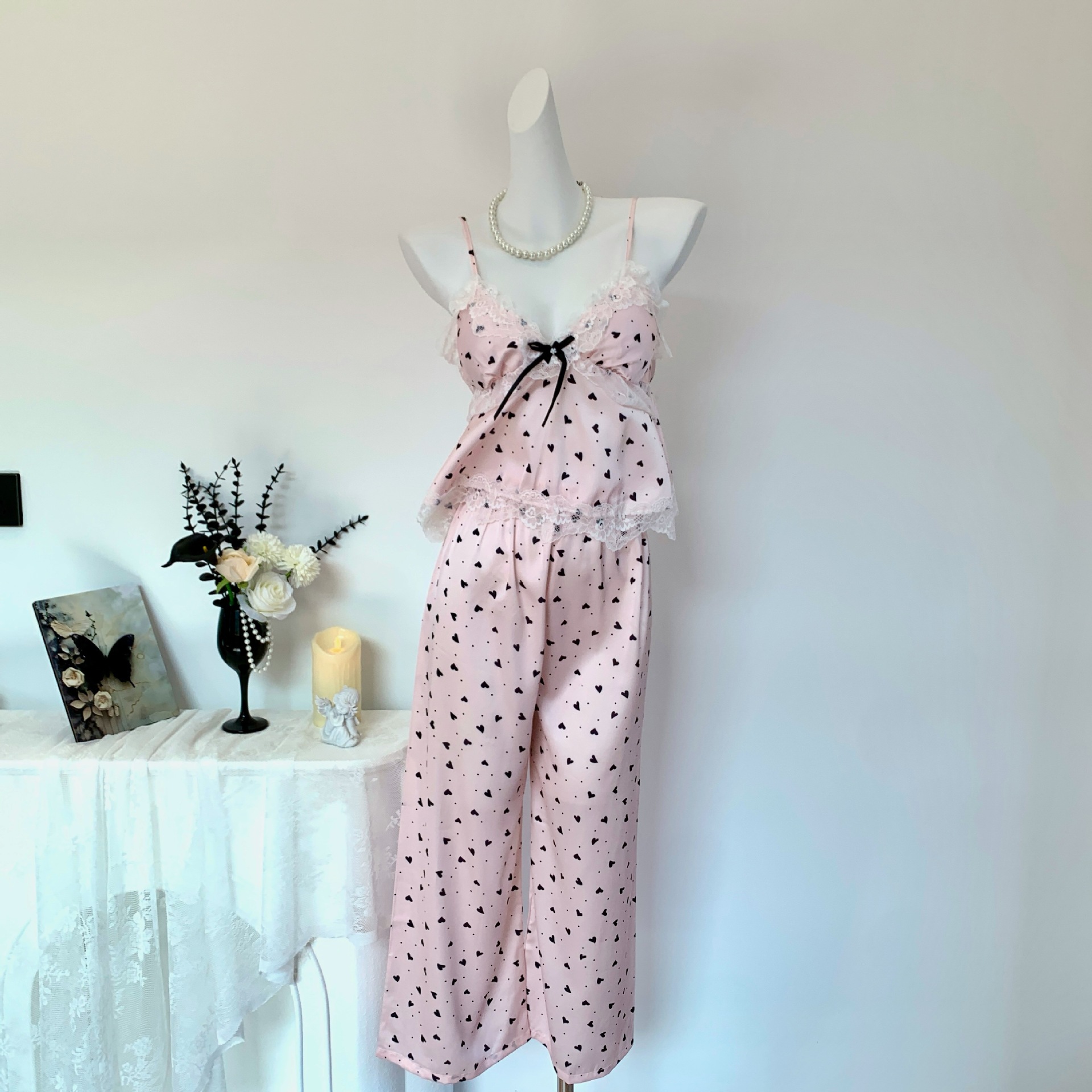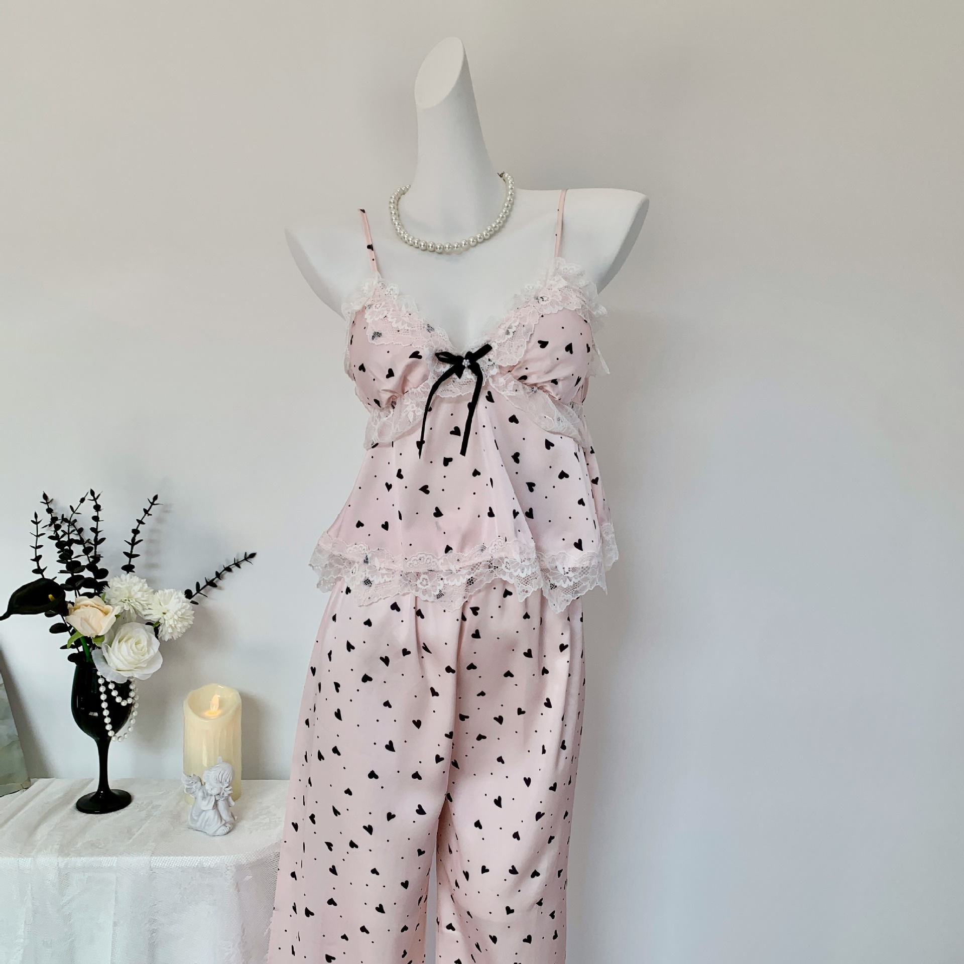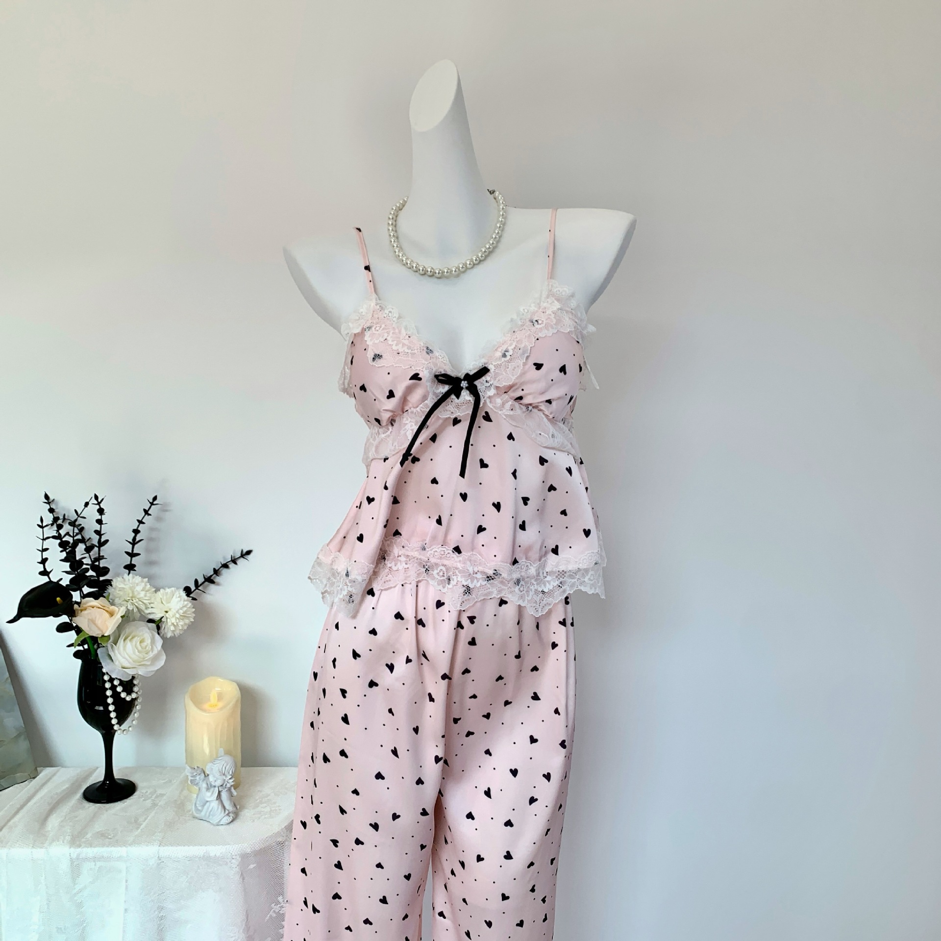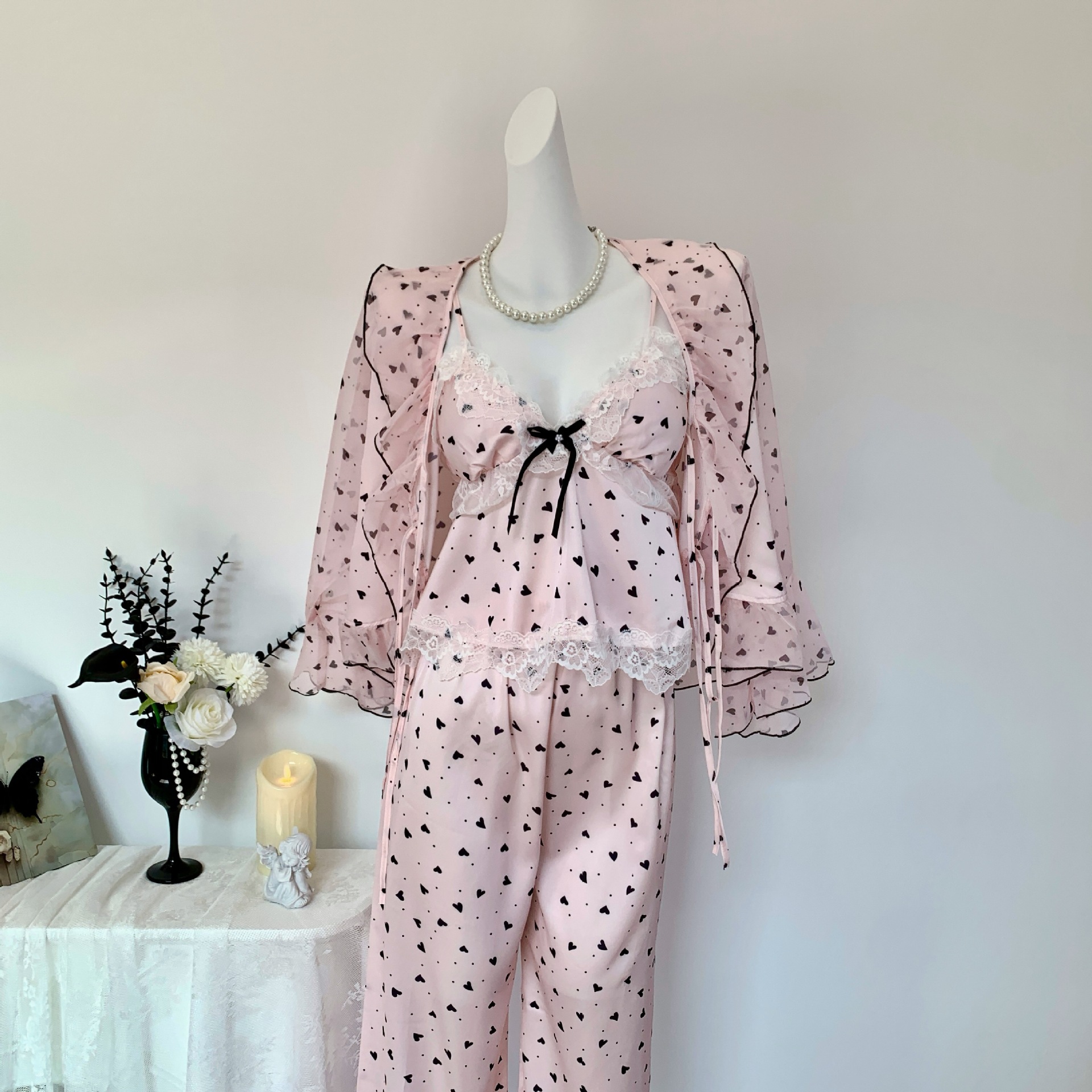 [Heartbeat Trap] 봄 여름 신상 얼음과 눈 실크 잠옷 순수한 욕망 달콤한 서스펜더 3피스 얇은 여성용 홈웨어