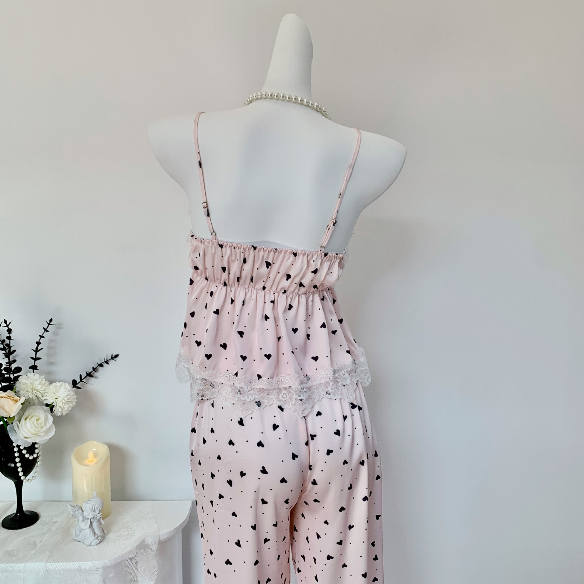 [Heartbeat Trap] 봄 여름 신상 얼음과 눈 실크 잠옷 순수한 욕망 달콤한 서스펜더 3피스 얇은 여성용 홈웨어스토어 가기