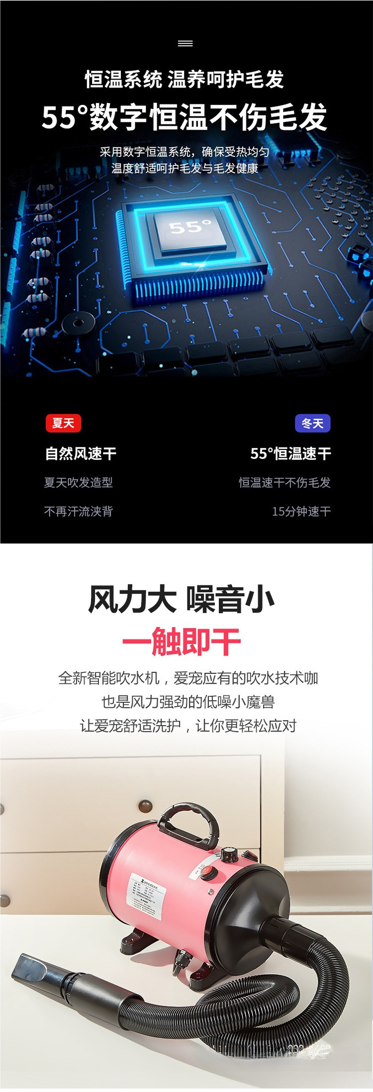 애완 동물 헤어 드라이어 고출력 물 송풍기 저소음 개와 고양이 헤어 드라이어 대형 개 건조 및 헤어 드라이어스토어 가기