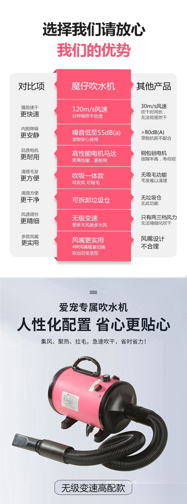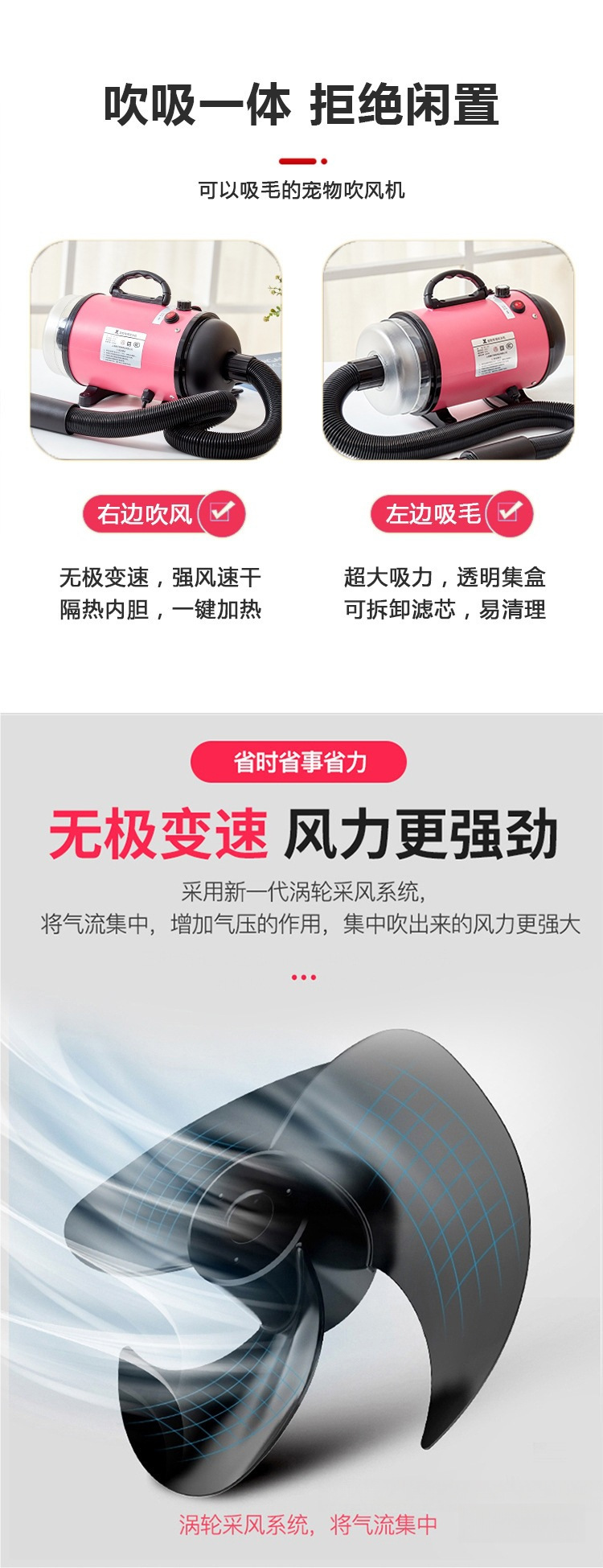 애완 동물 헤어 드라이어 고출력 물 송풍기 저소음 개와 고양이 헤어 드라이어 대형 개 건조 및 헤어 드라이어