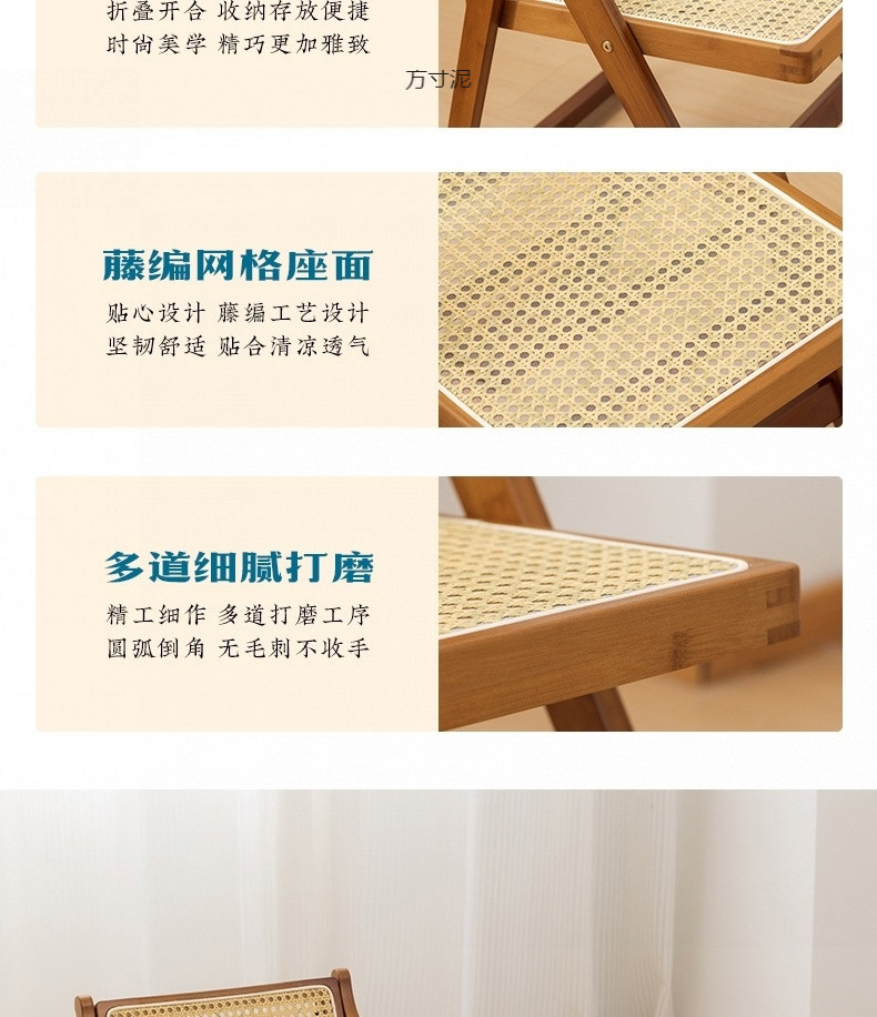 작은 의자 접이식 의자 등나무 의자 가정용 접이식 의자 B&B 대나무 단단한 나무 의자 레저 등받이 식당 의자 공장스토어 가기