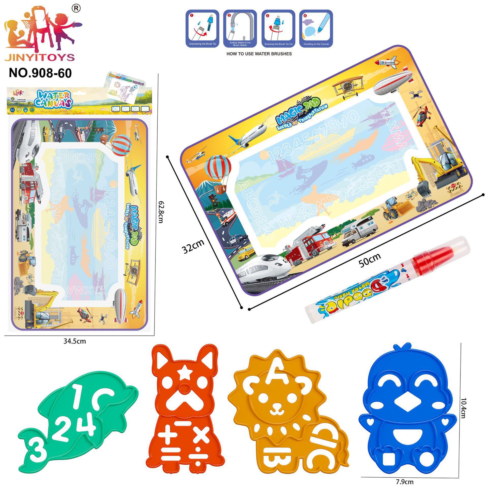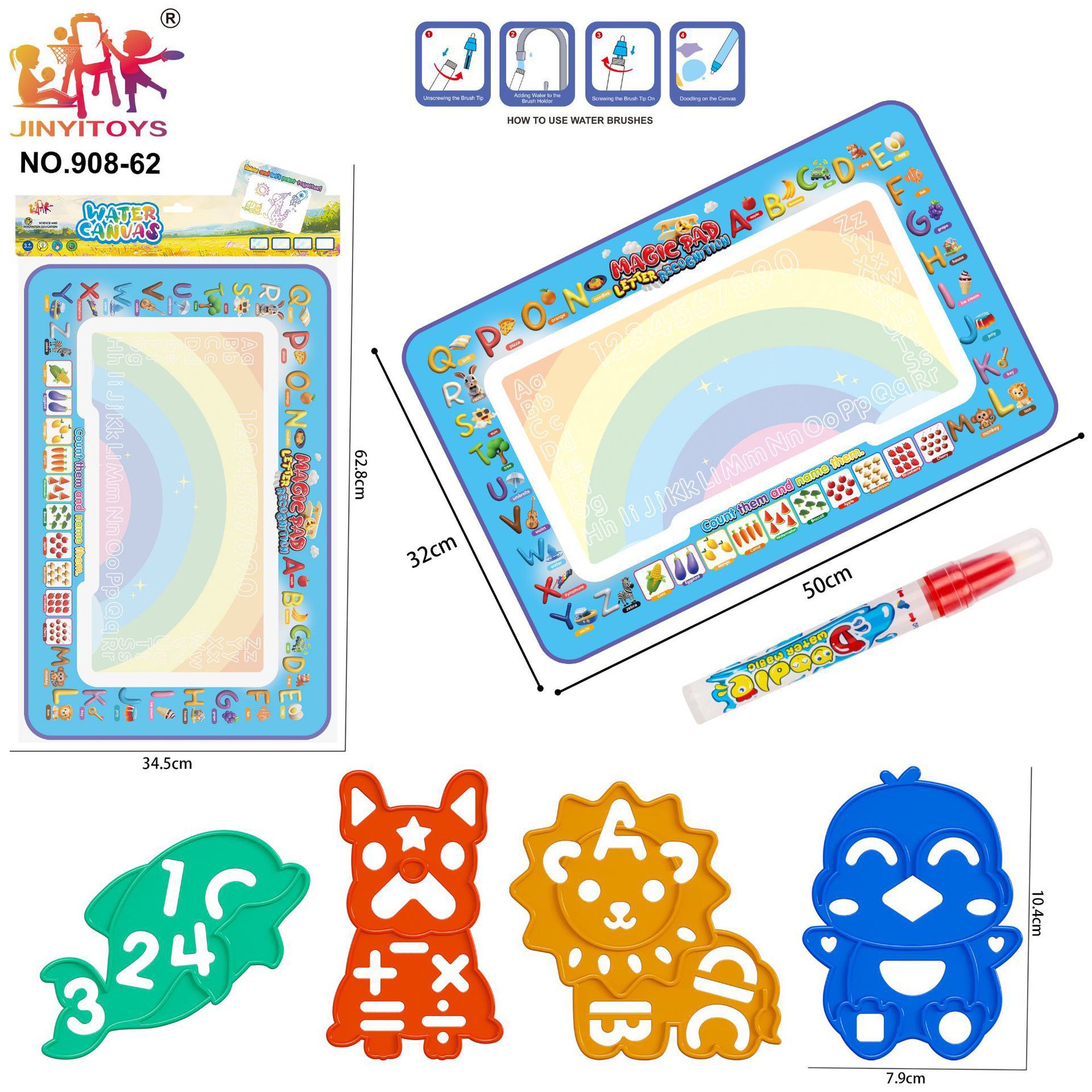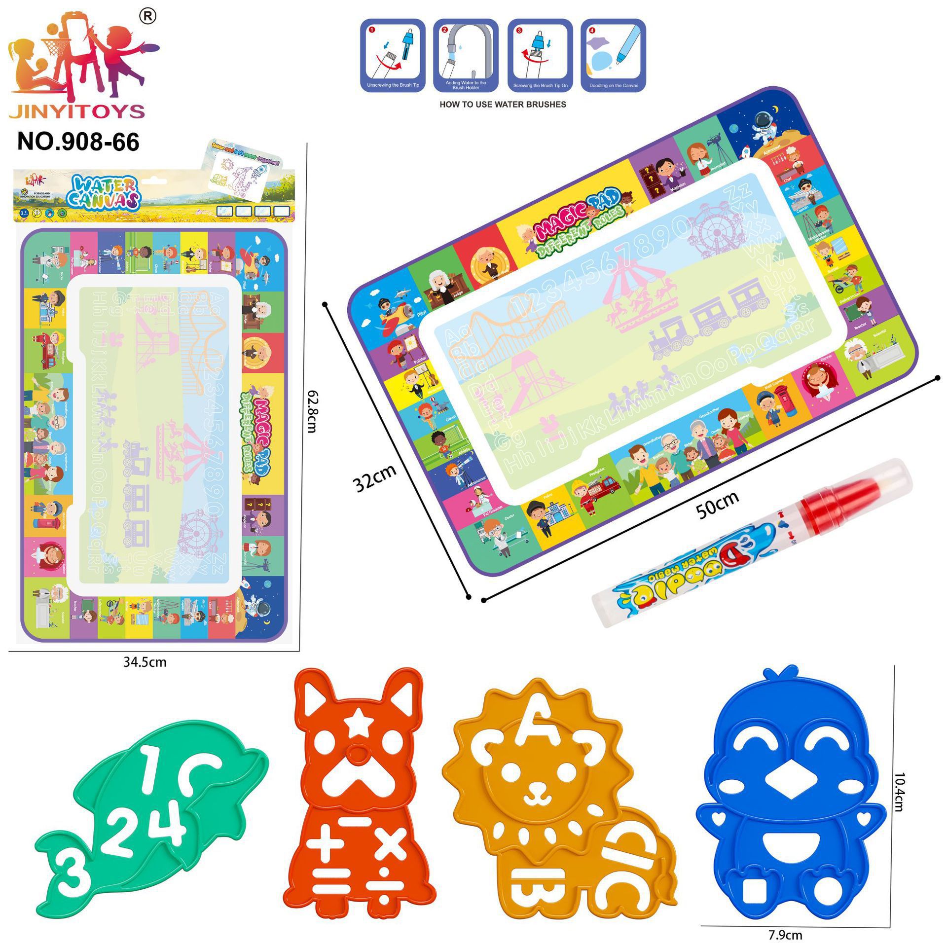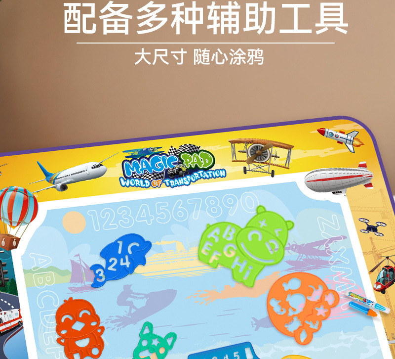 과학 교육용 어린이 대형 물그림판, 맑은 물로 그림을 그리는 반복 가능한 매직 물그림 매트, 지울 수 있는 그림판
