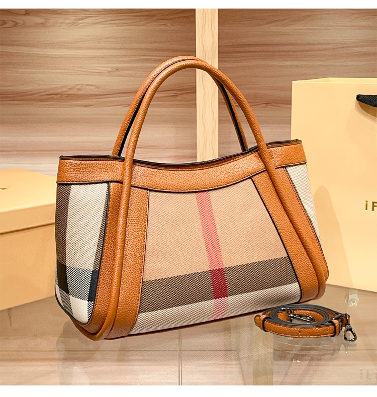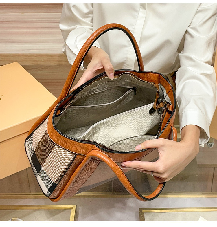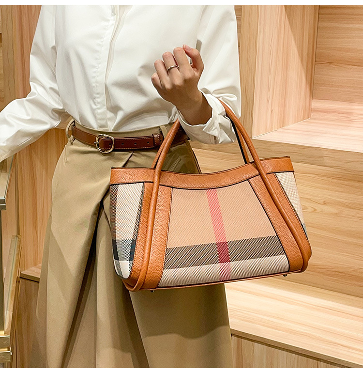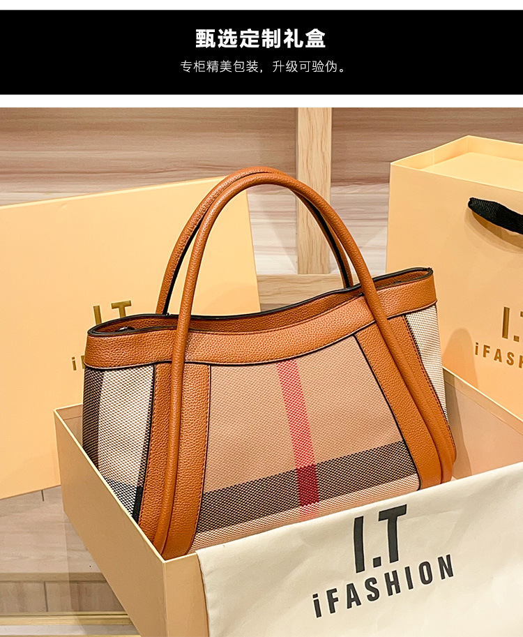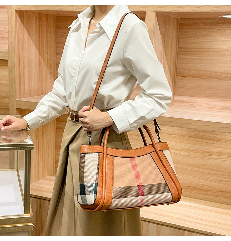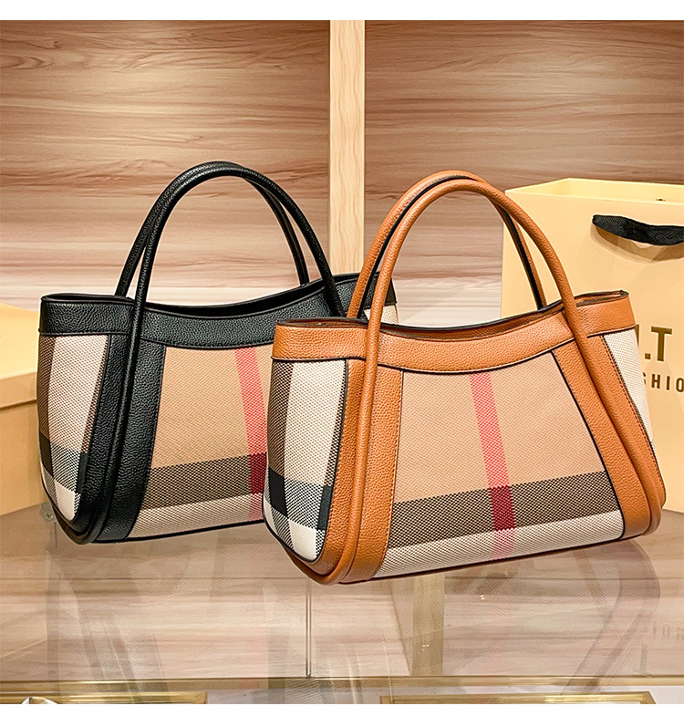 유럽과 미국의 패션 정품 가죽 대용량 핸드백 격자 무늬 토트 백 2025 새로운 가방 여성 어깨 크로스 바디 대형 가방스토어 가기