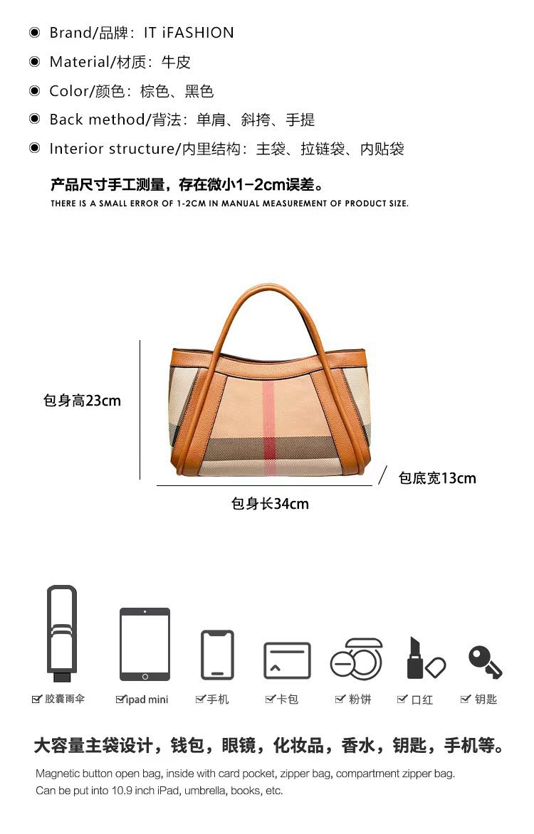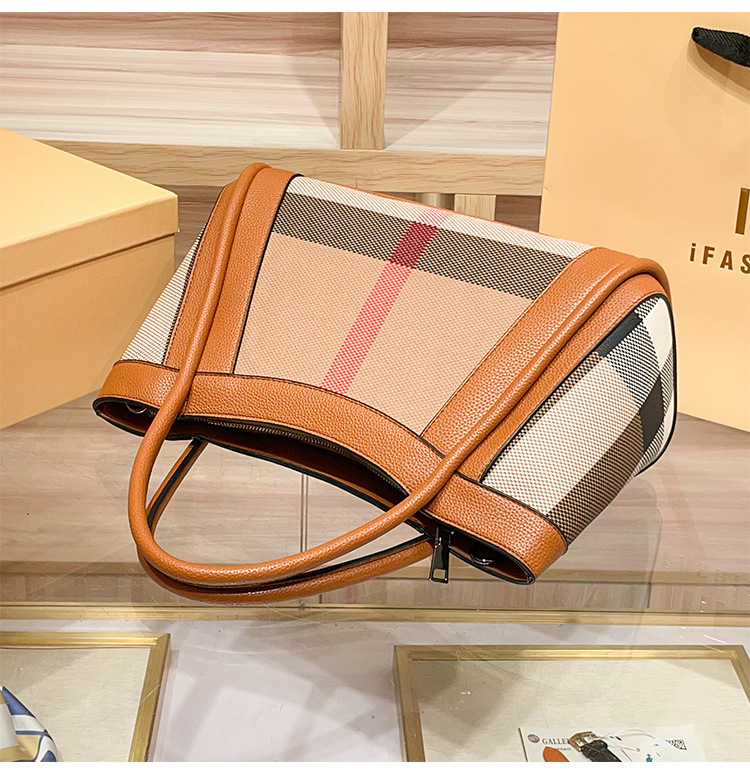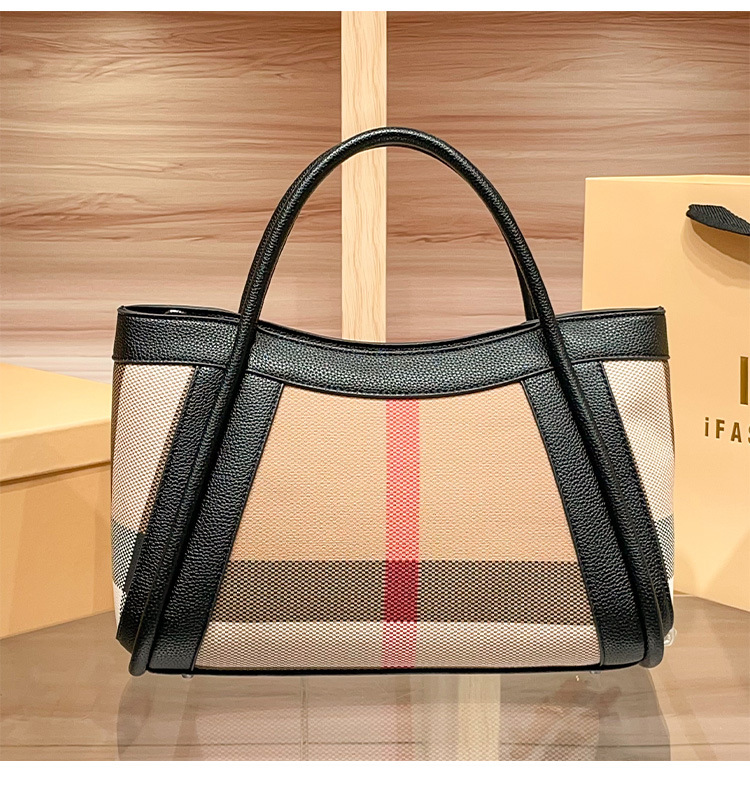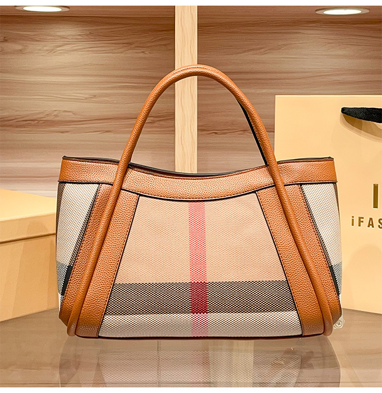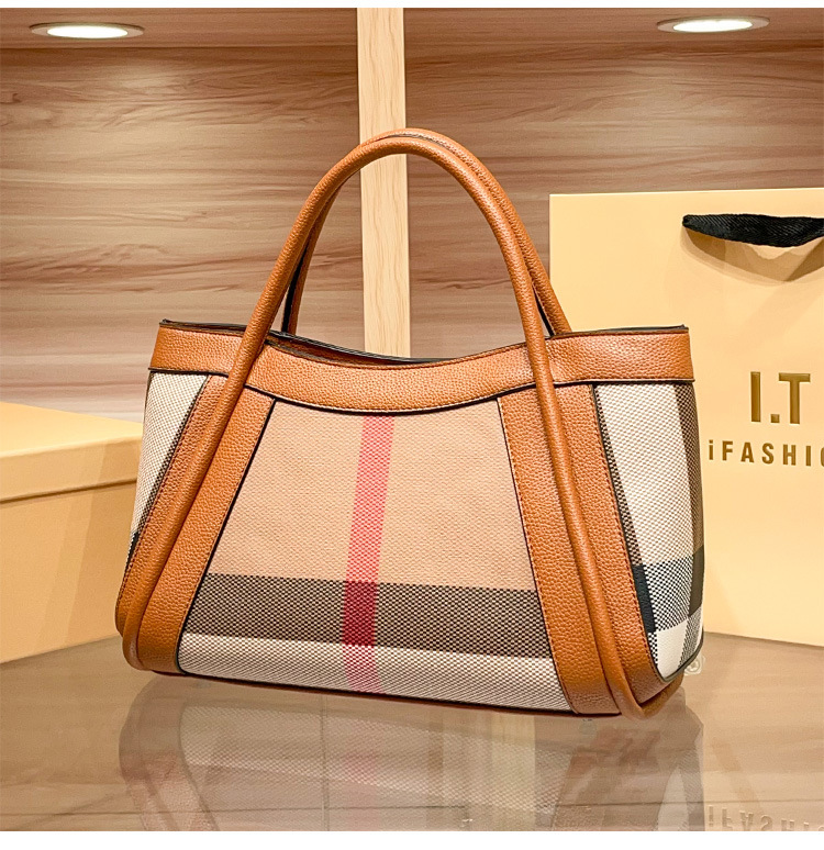 유럽과 미국의 패션 정품 가죽 대용량 핸드백 격자 무늬 토트 백 2025 새로운 가방 여성 어깨 크로스 바디 대형 가방스토어 가기
