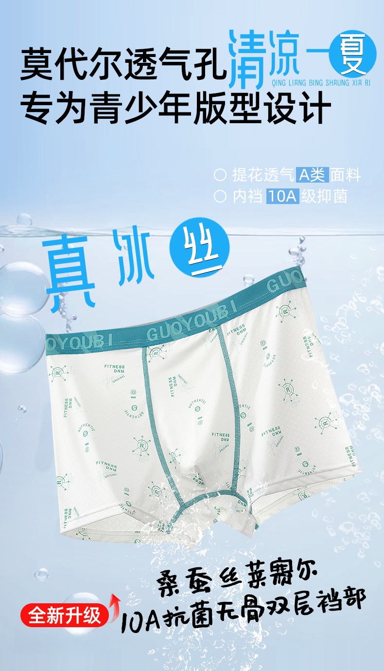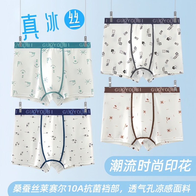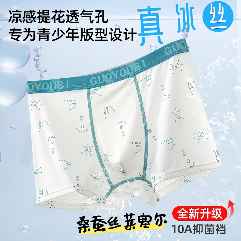 아이스 실크 소년 속옷 청소년 10A 항균 뽕나무 실크 클래스 A 속옷 발달 기간 중년 어린이 아이스 실크 복서 팬티스토어 가기