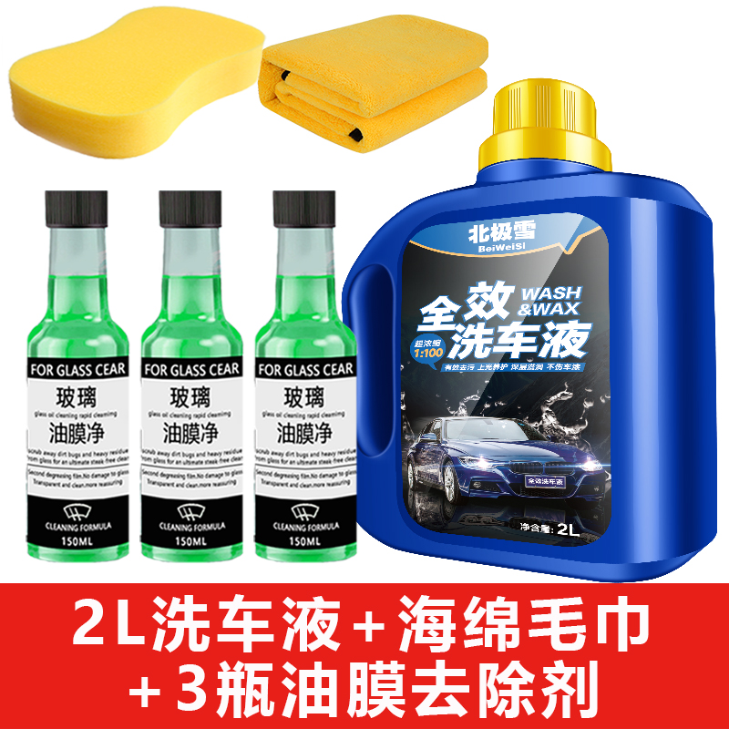 • 세차액 2L 대용량 + 유막세정제 3병 + 스펀지타올