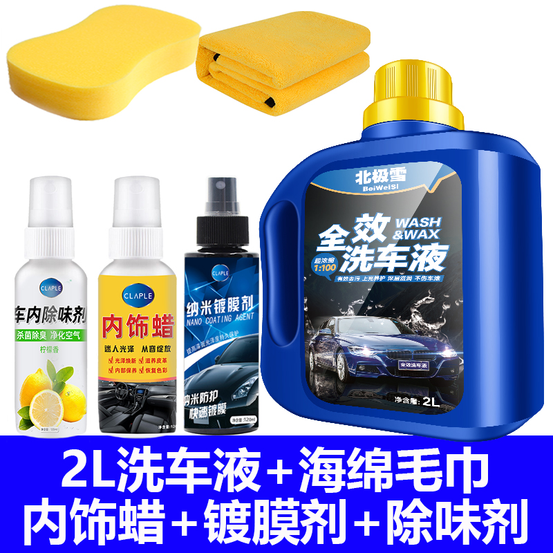 • 2L 세차액 + 코팅제 + 인테리어 왁스 + 탈취제 + 스펀지 타월