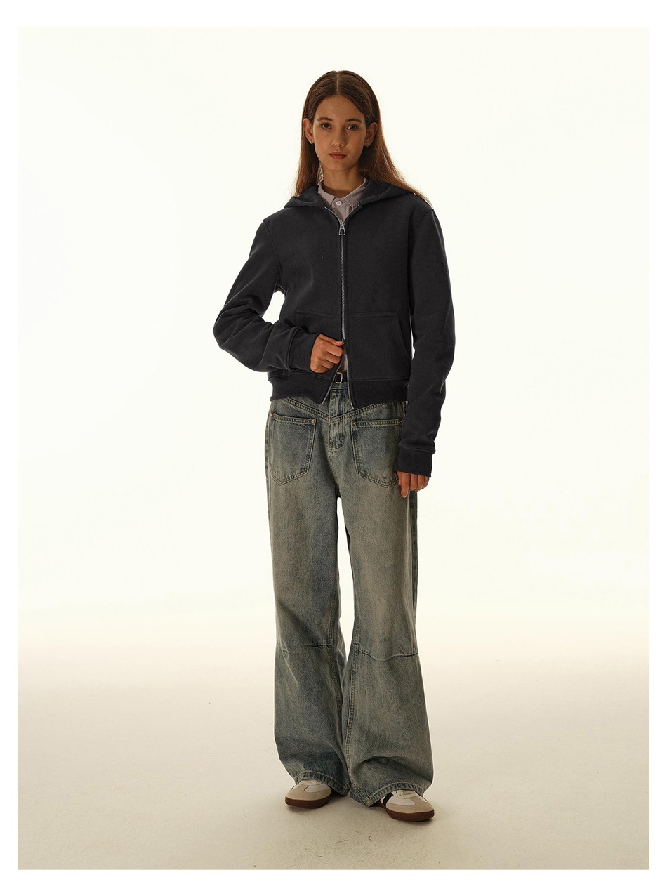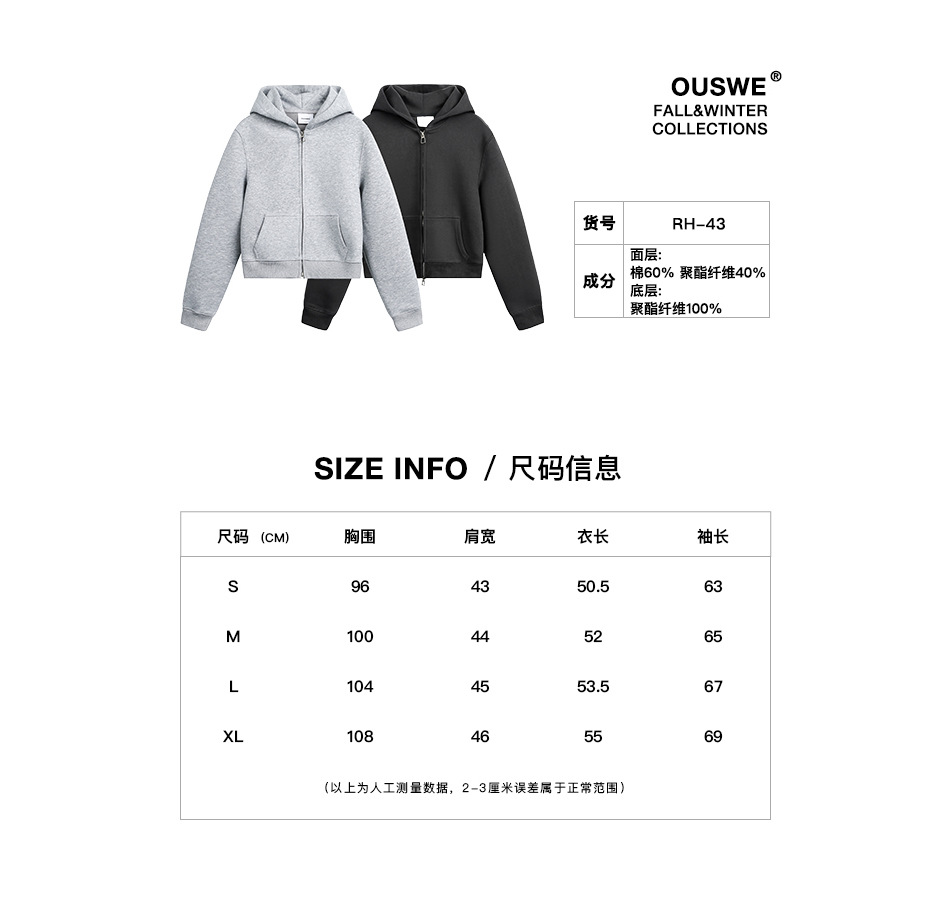 OUSWE 아메리칸 레트로 클린핏 후드 티셔츠 트렌디 브랜드 캐주얼 슬림 재킷 여성 짧은 후드 RH43
