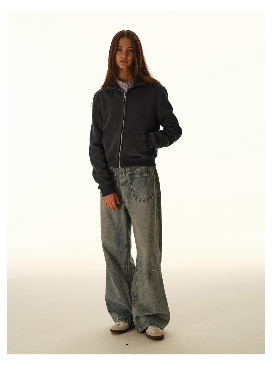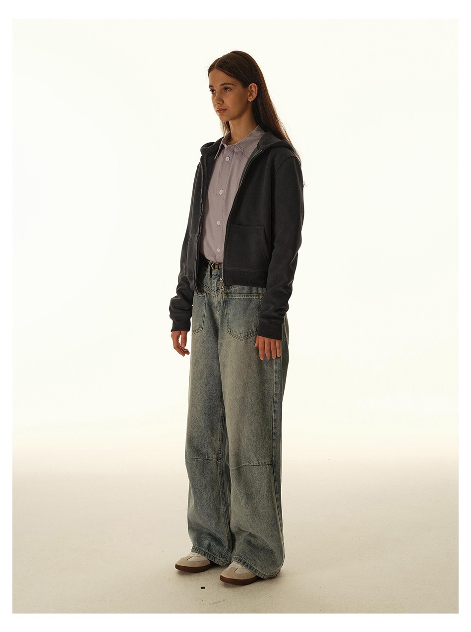 OUSWE 아메리칸 레트로 클린핏 후드 티셔츠 트렌디 브랜드 캐주얼 슬림 재킷 여성 짧은 후드 RH43스토어 가기