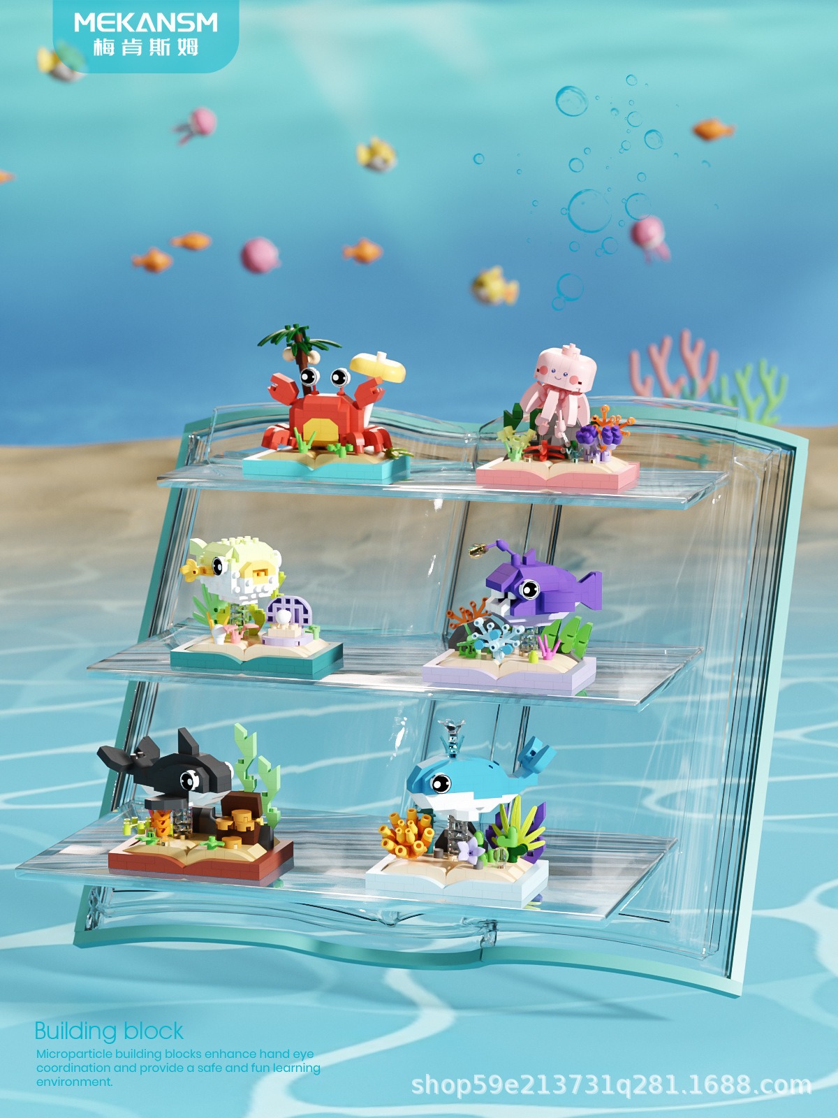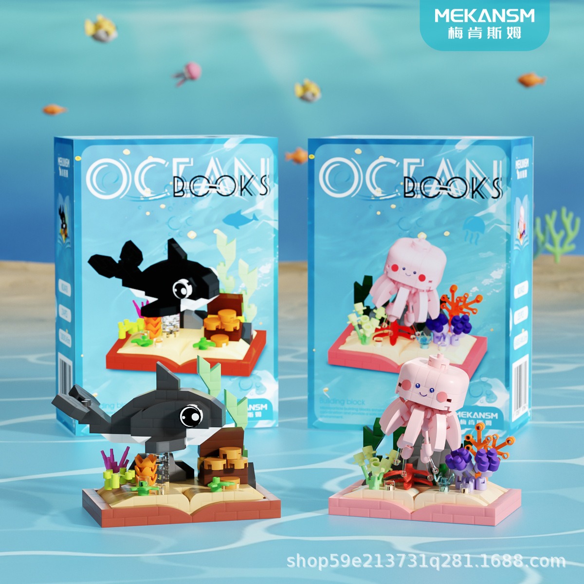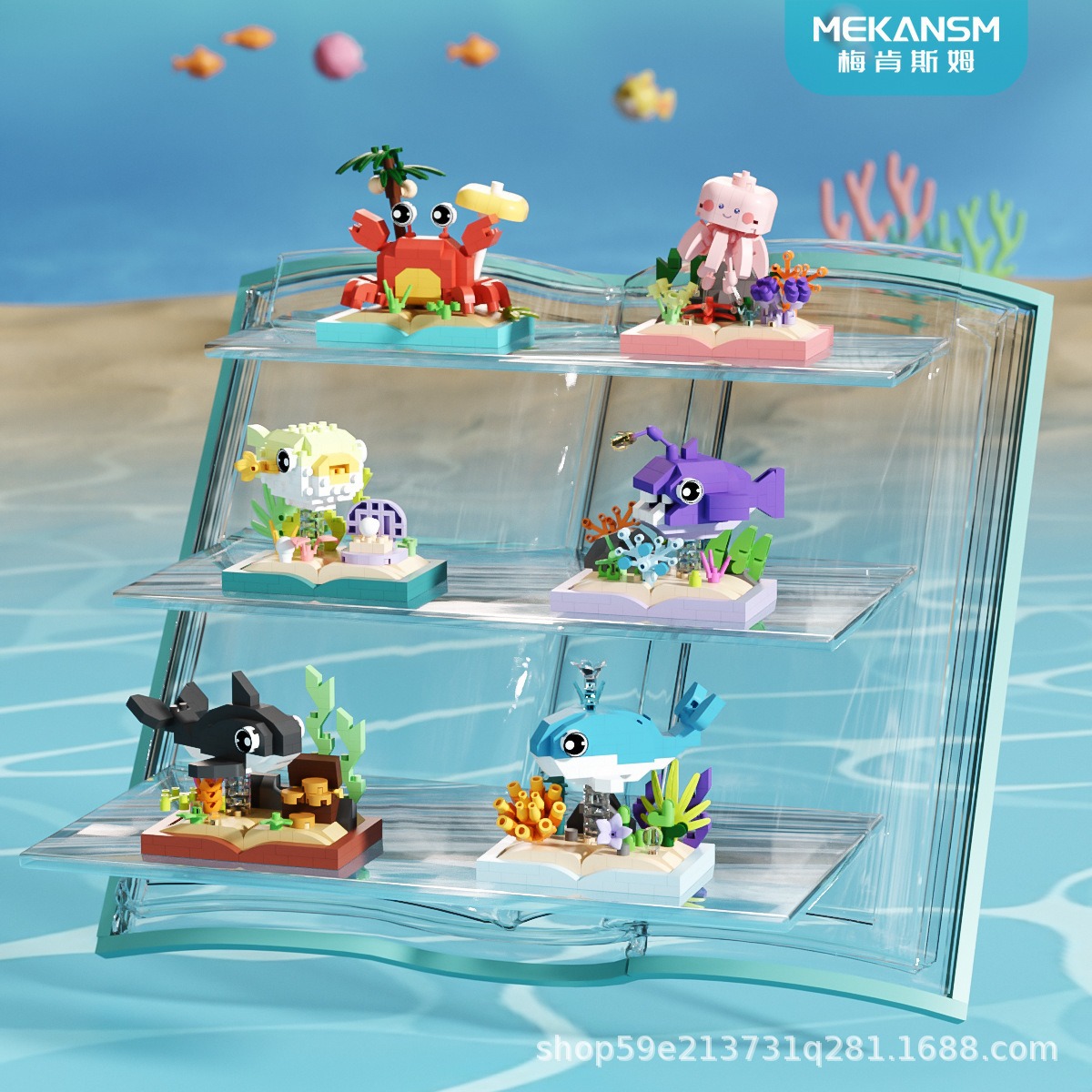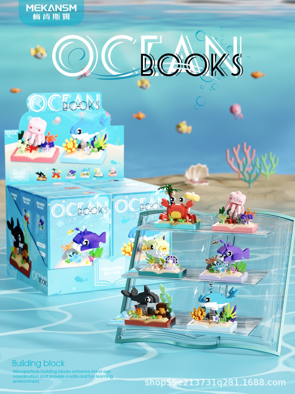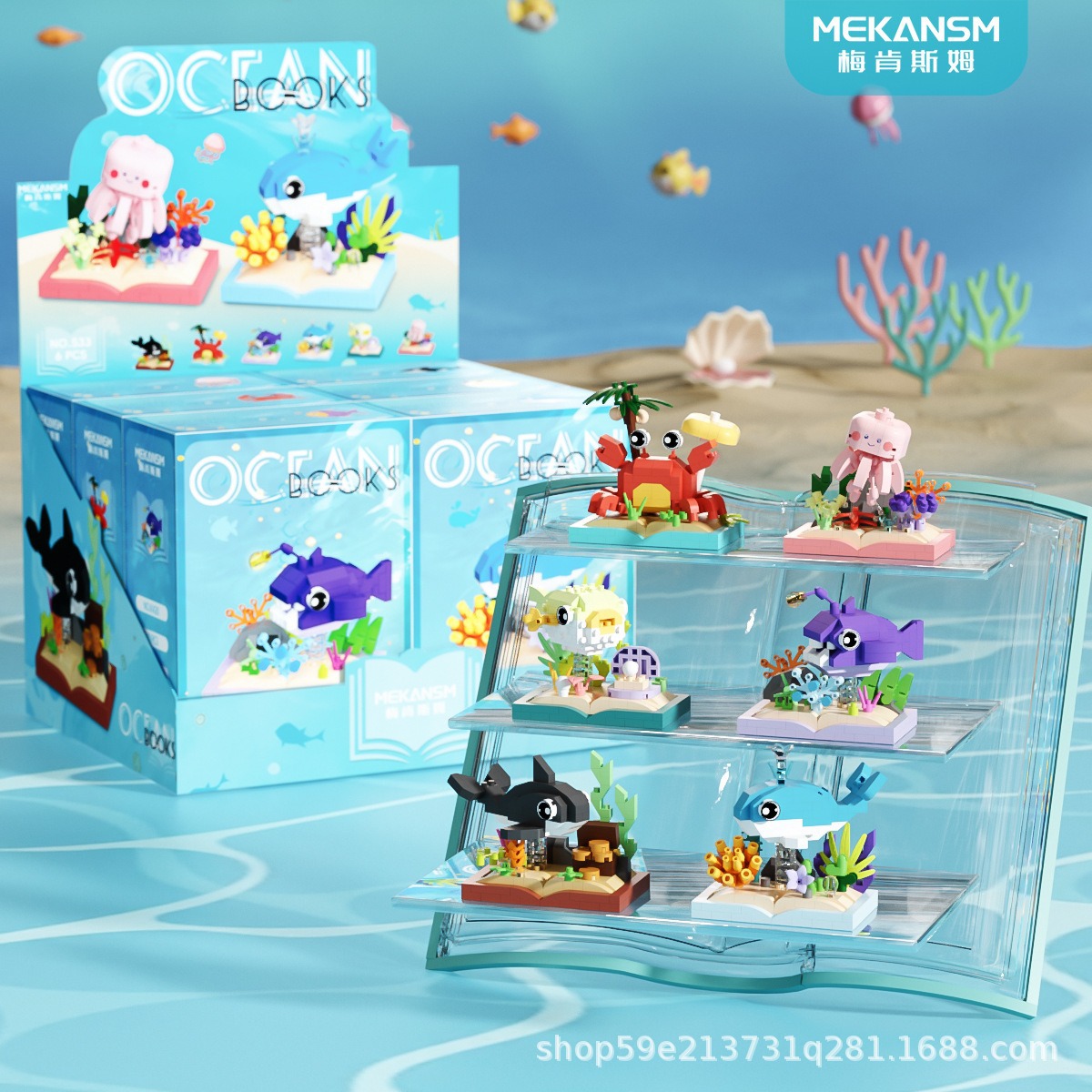 메이켄스 해양 책장 마이크로 입자 빌딩 블록 어린이 교육 스트리트 뷰 조립 장난감 장식품 시리즈
