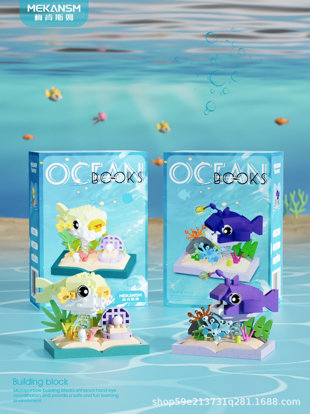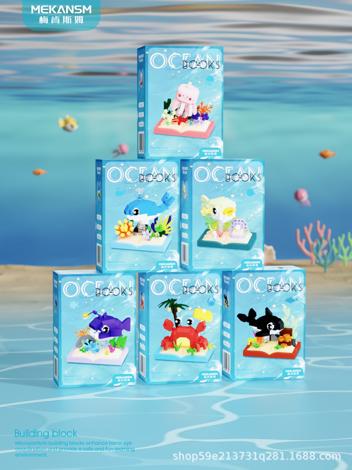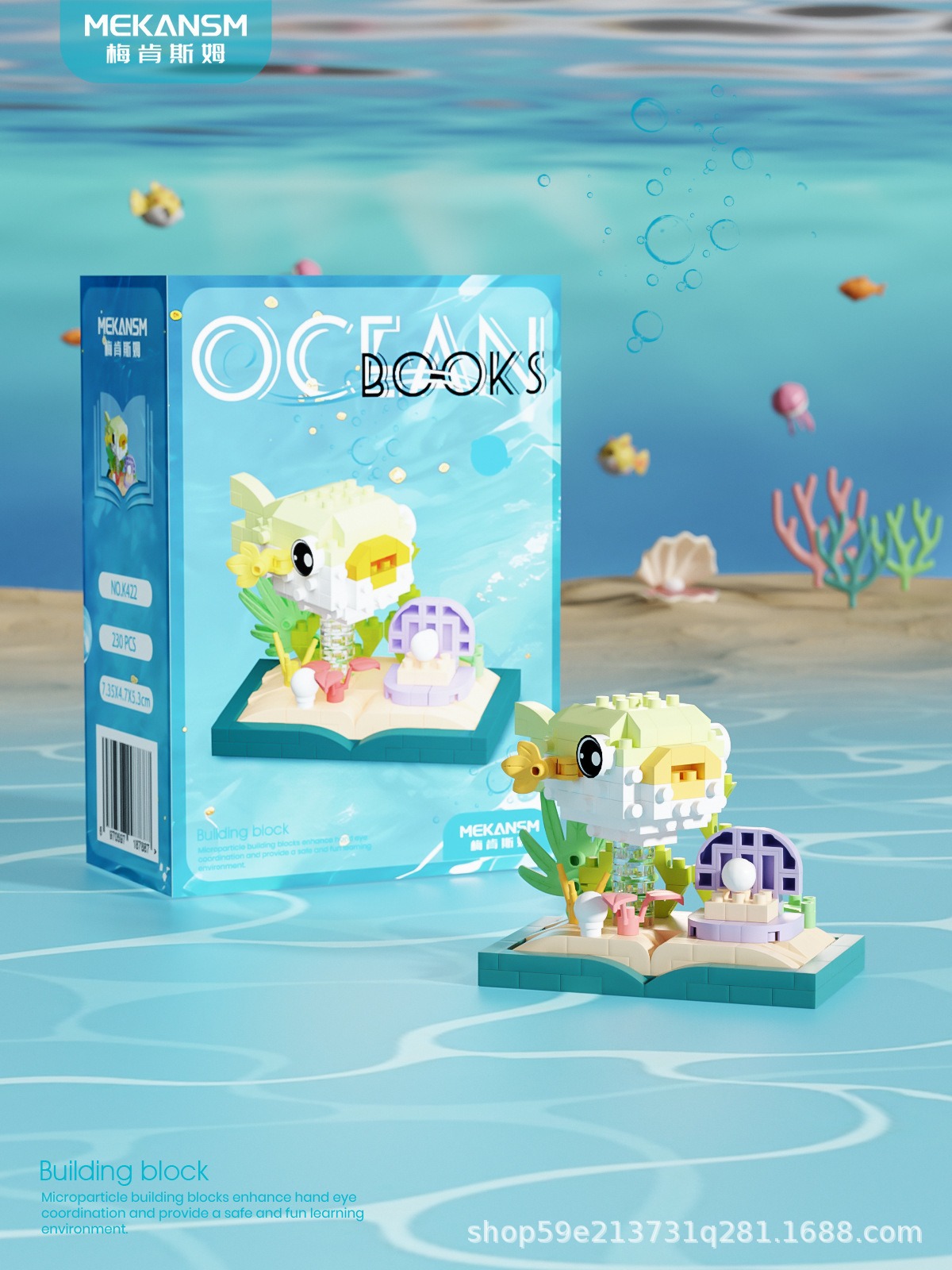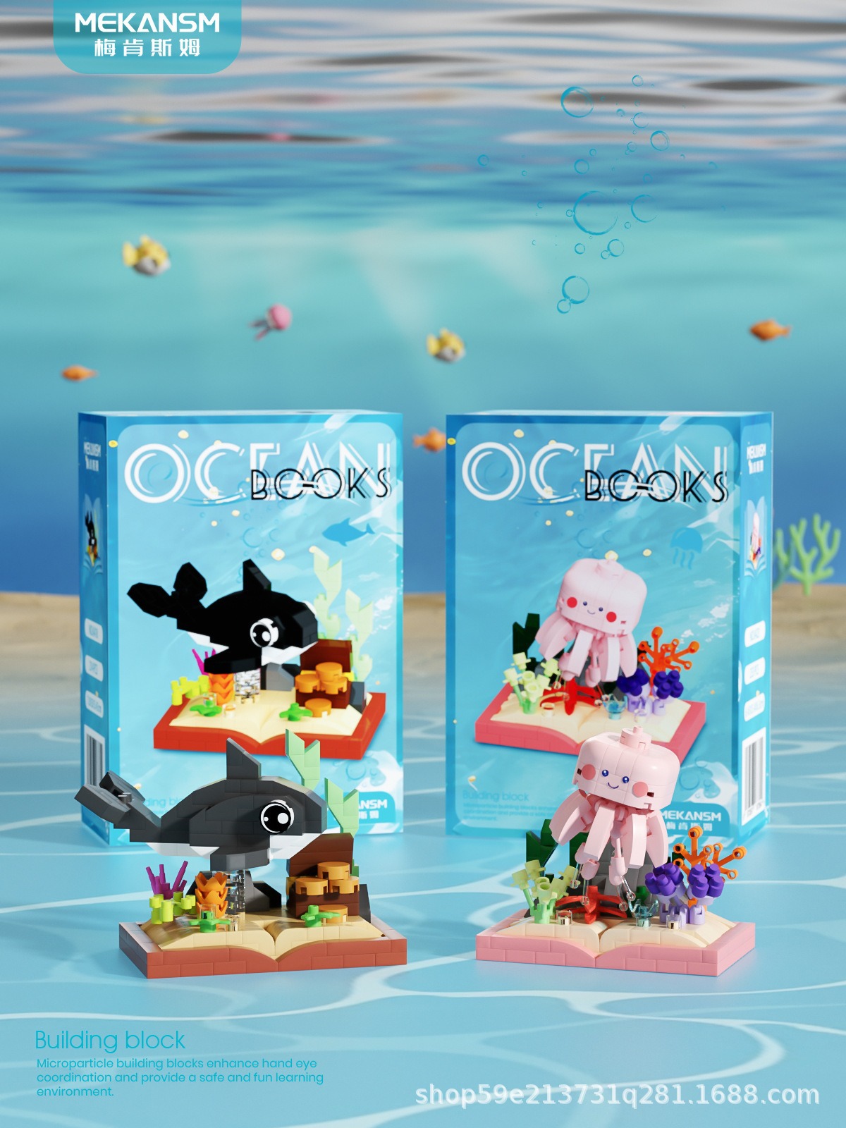 메이켄스 해양 책장 마이크로 입자 빌딩 블록 어린이 교육 스트리트 뷰 조립 장난감 장식품 시리즈