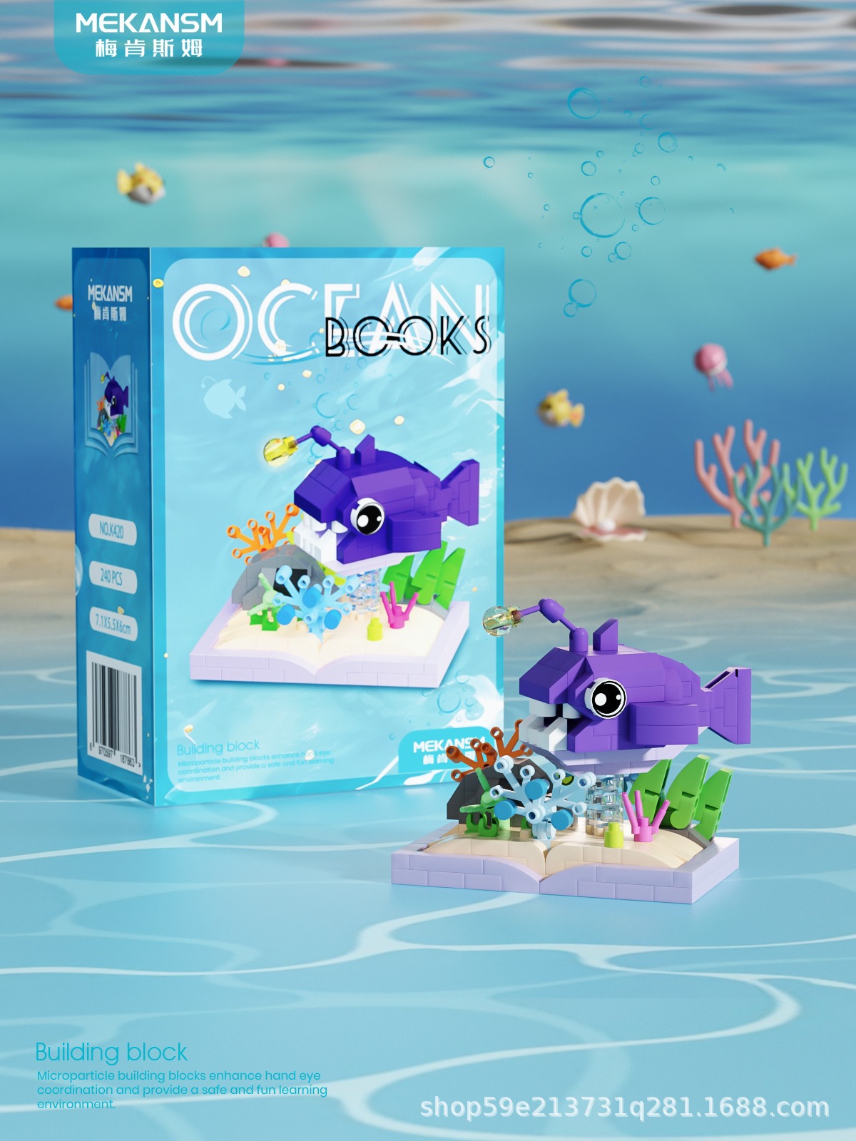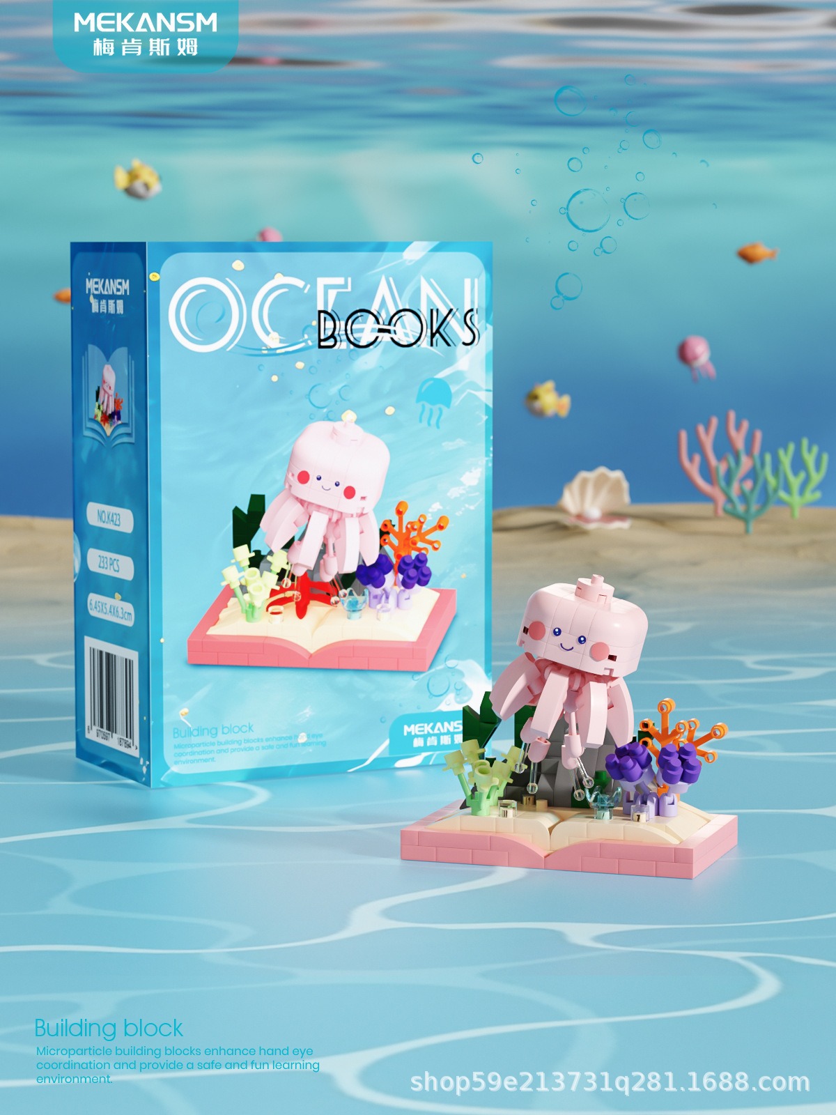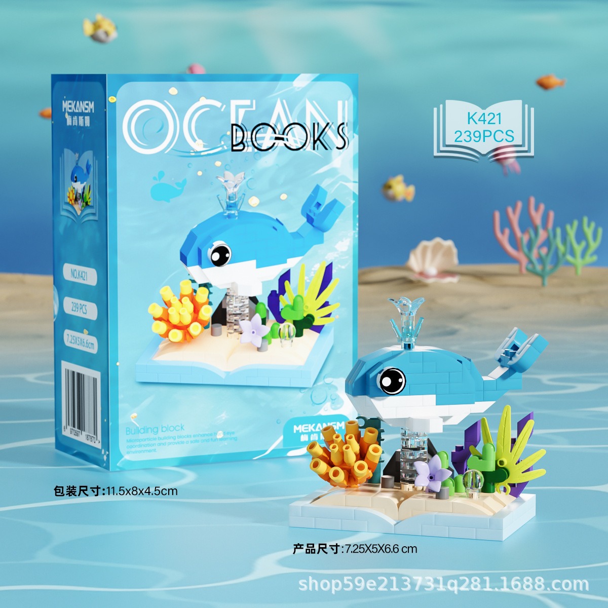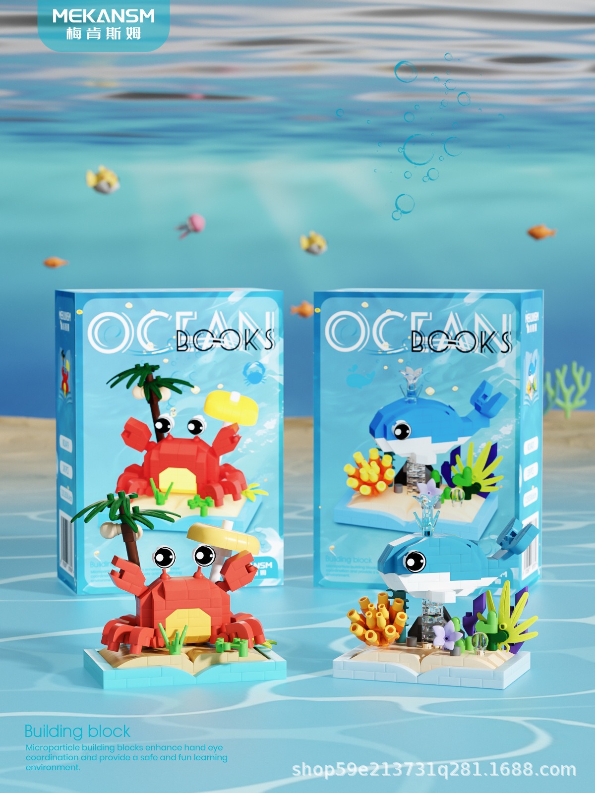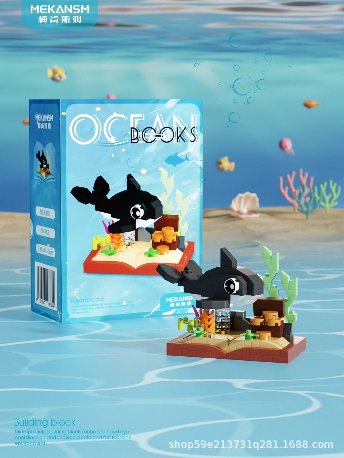 메이켄스 해양 책장 마이크로 입자 빌딩 블록 어린이 교육 스트리트 뷰 조립 장난감 장식품 시리즈