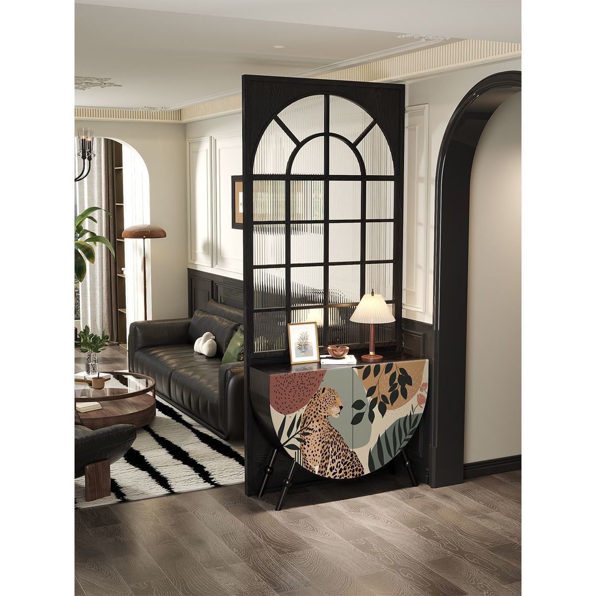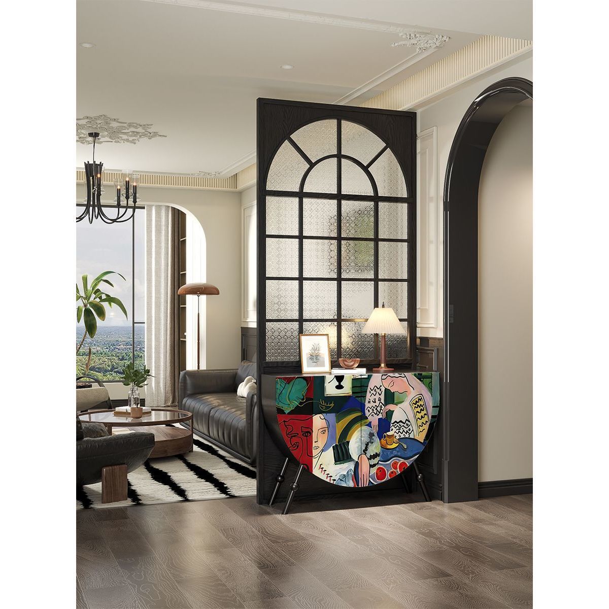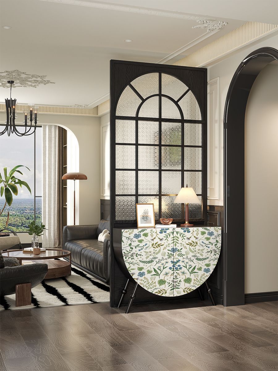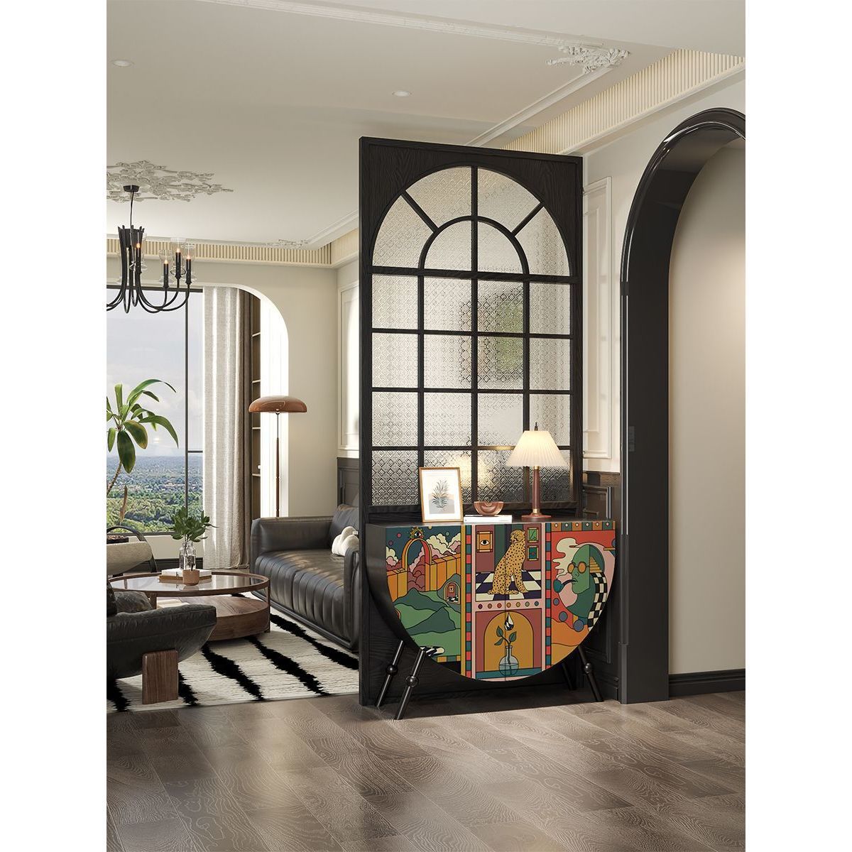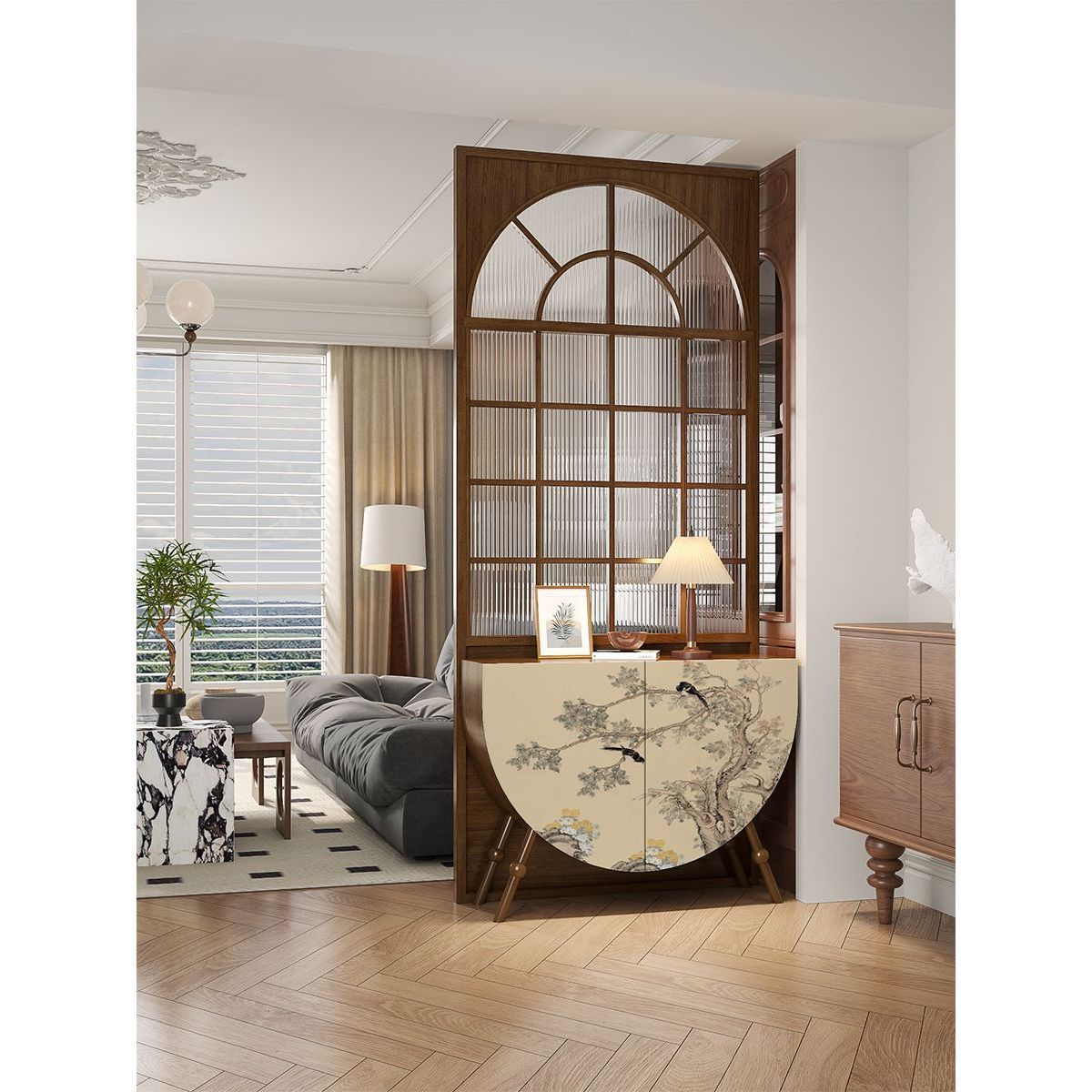 맞춤형 현관 스크린 칸막이 거실 원목 현관문 직각 유리 현관장 미국식 가정용 차단 스크린 해외배송