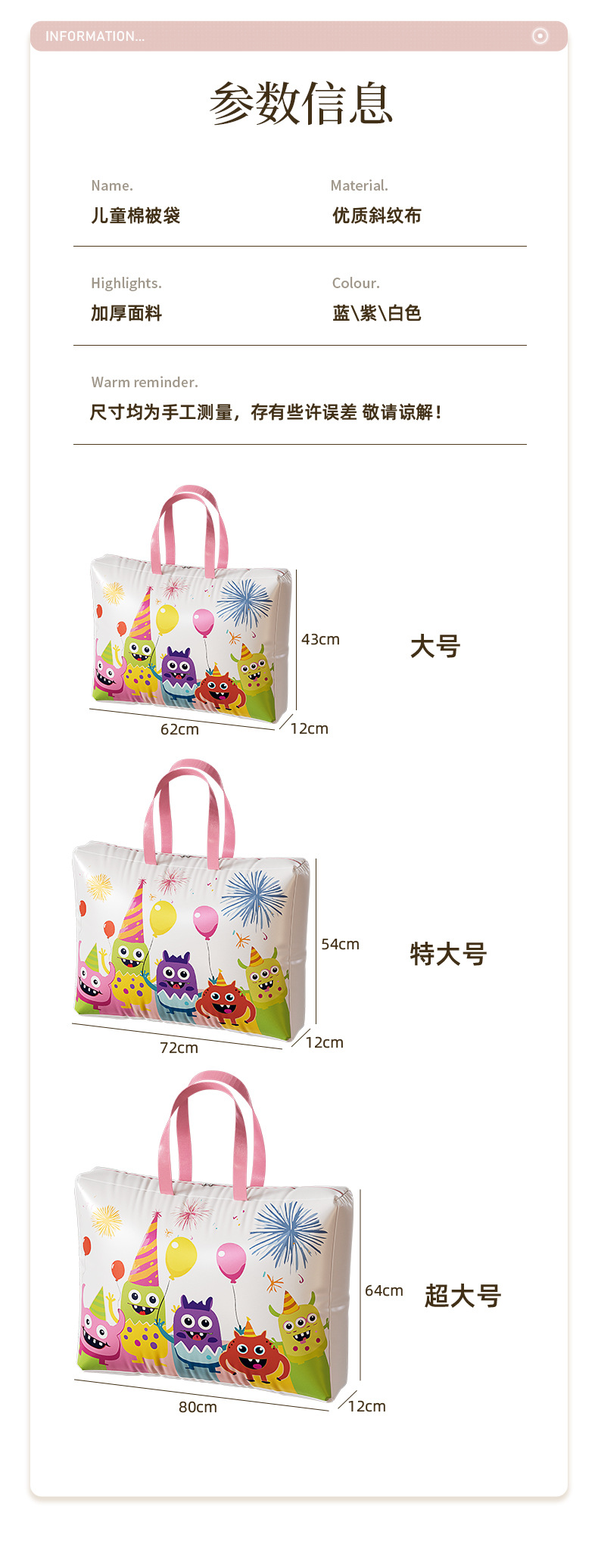 어린이 이불 가방, 고급 패브릭 이불 보관 가방, 만화 이동 포장 가방, 여행 필수 학생 수하물 가방
