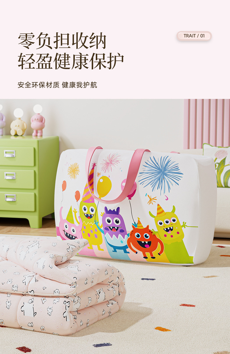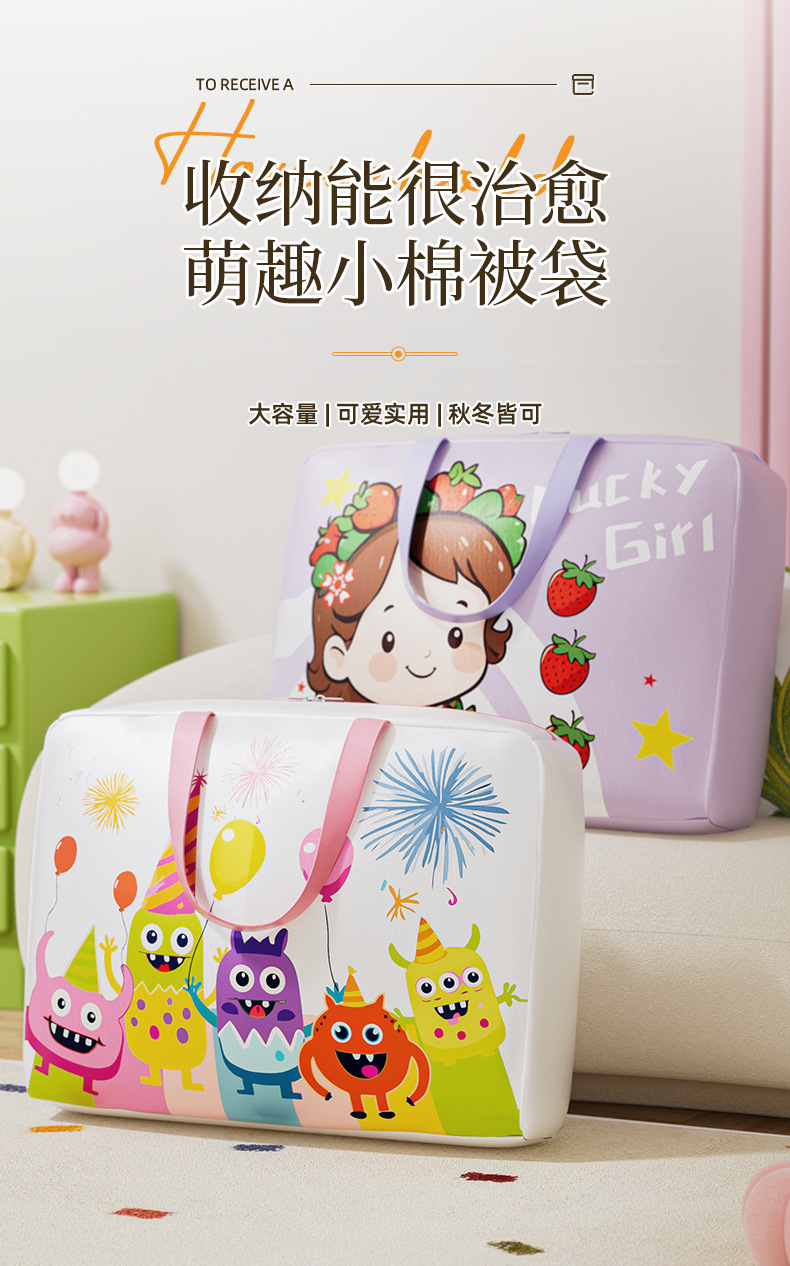 어린이 이불 가방, 고급 패브릭 이불 보관 가방, 만화 이동 포장 가방, 여행 필수 학생 수하물 가방스토어 가기