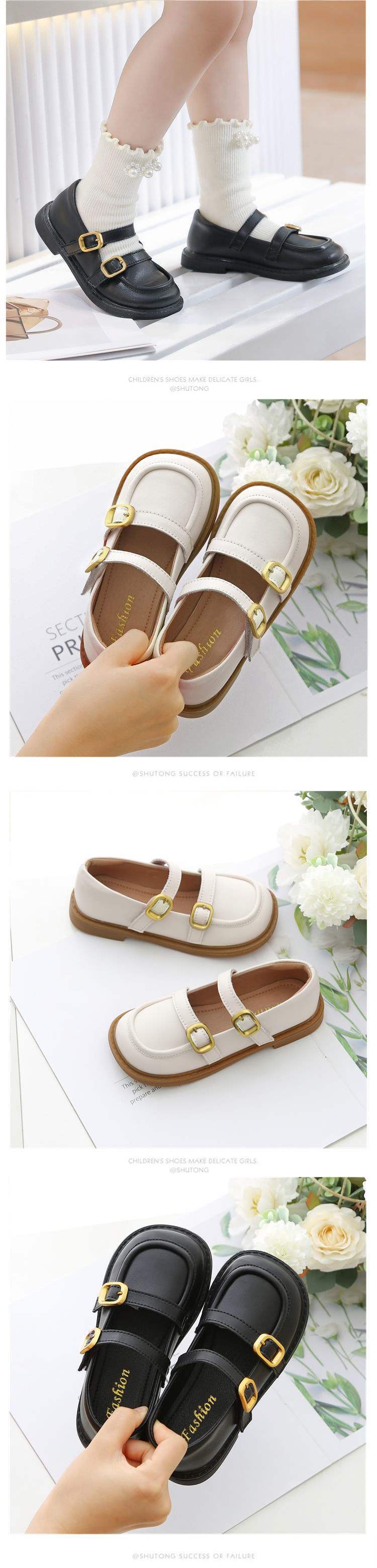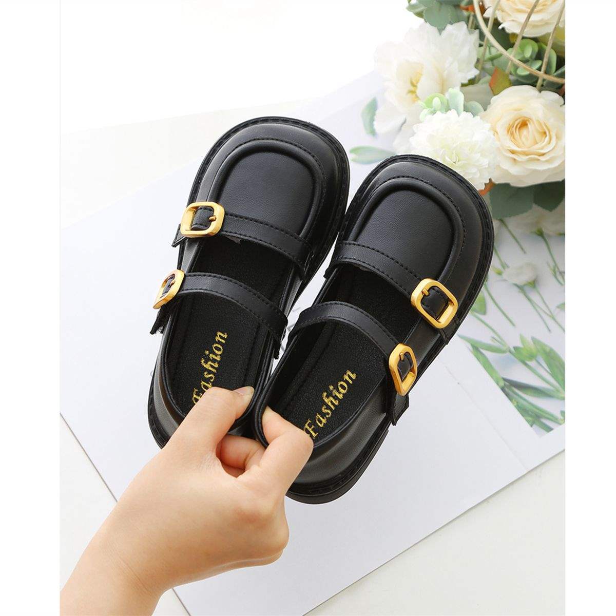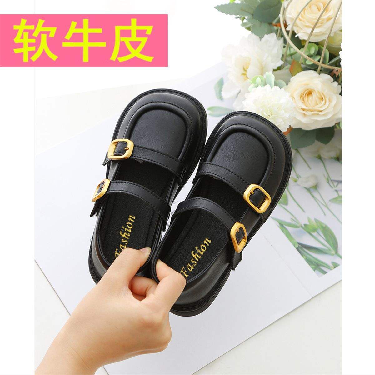 여자를위한 검은 색 작은 가죽 신발 2025 새로운 어린이 공주 봄 부드러운 밑창 신발을 수행스토어 가기