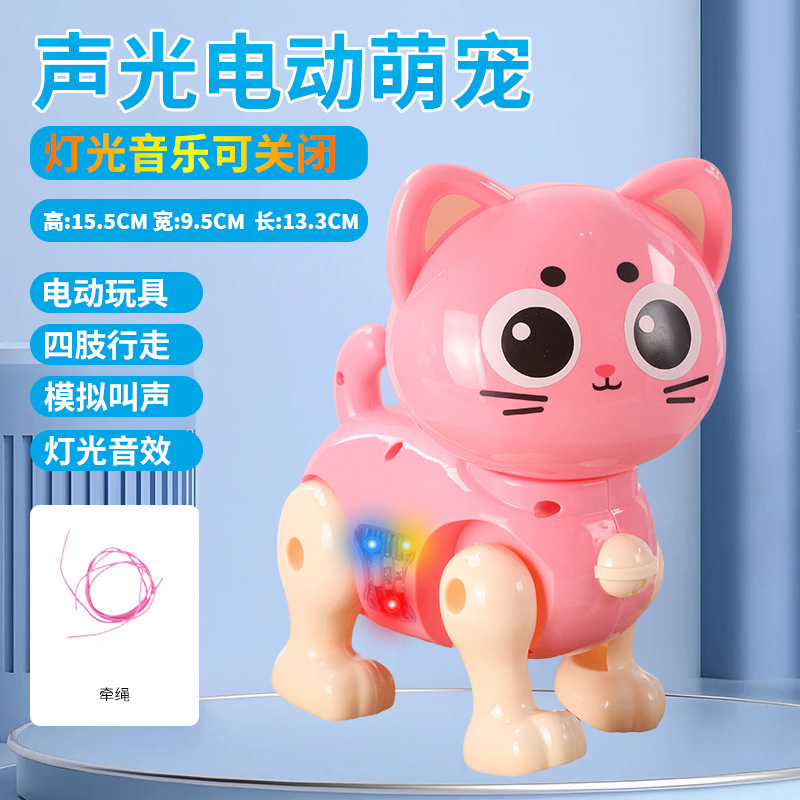 인기 전동 로봇 고양이, 조명 콘서트, 걷기 기능, 충전식, 노점용 어린이 장난감, 기계 고양이 아기
