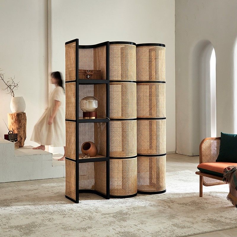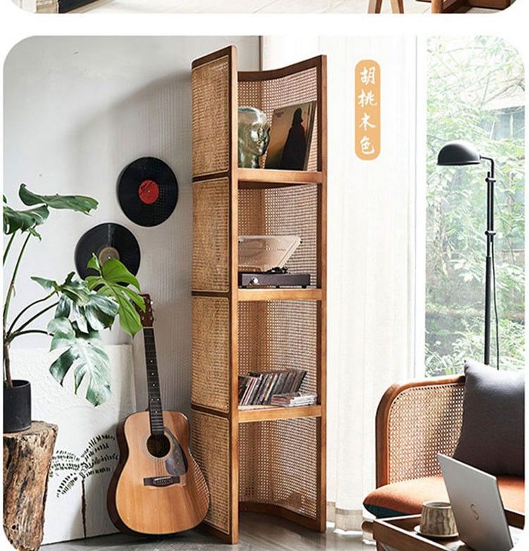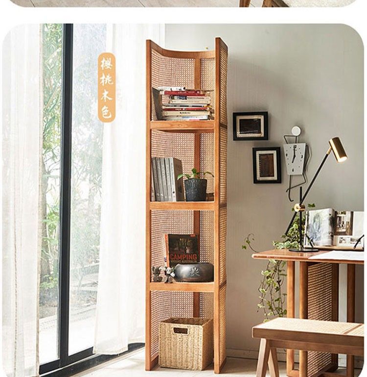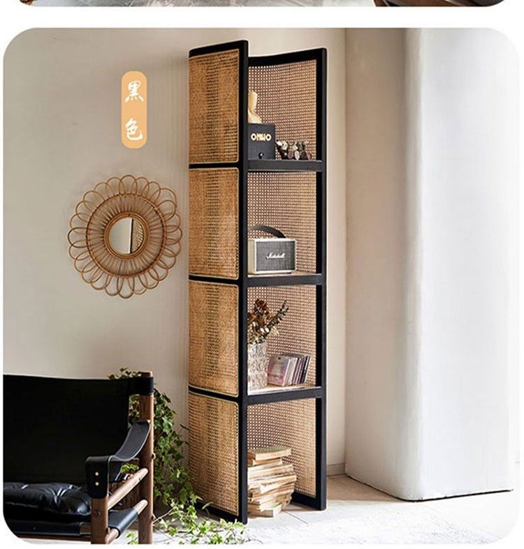 맞춤형 등나무 수납장 레트로 와비사비 스타일 칸막이형 플로어 코너 캐비닛 실내 가정용 다층 수납장 해외 판매스토어 가기