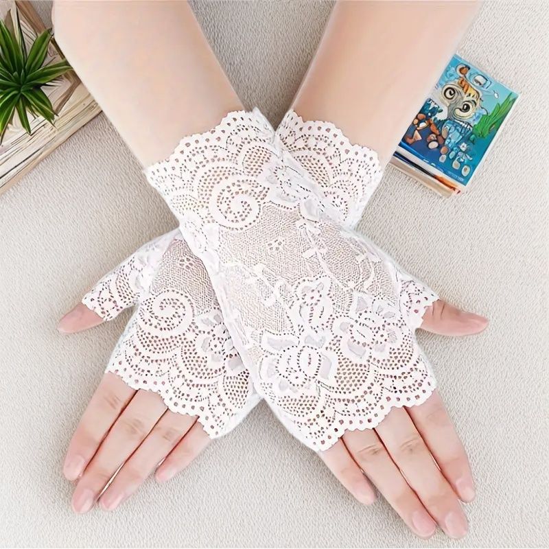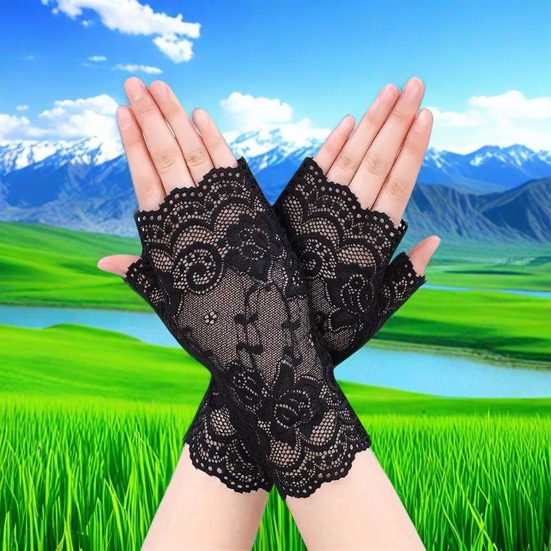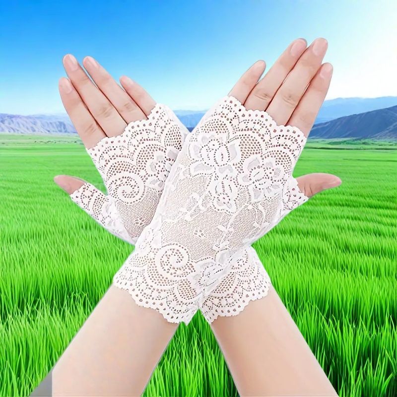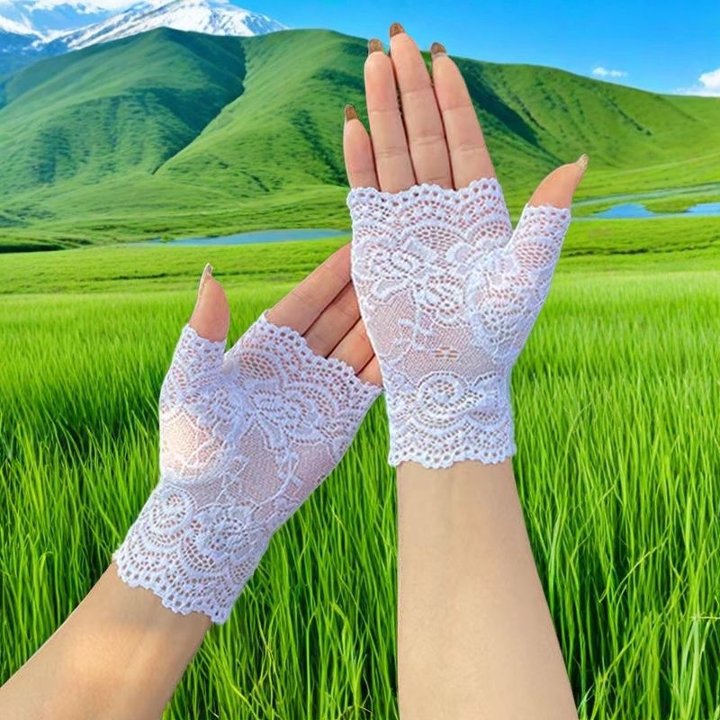 여성용 한국식 얼음 레이스 장갑, 여름 자외선 차단, 얇고 통기성, 중년 및 노인 스퀘어 댄스, 확장 반 손가락 도매스토어 가기