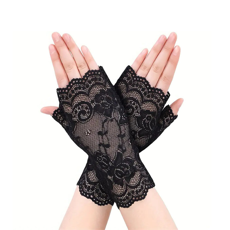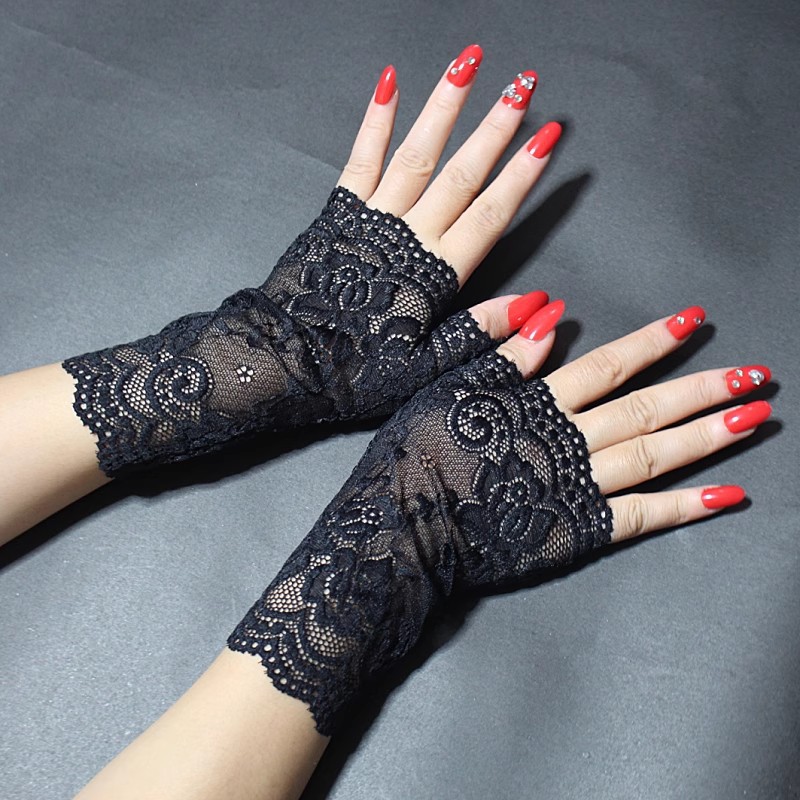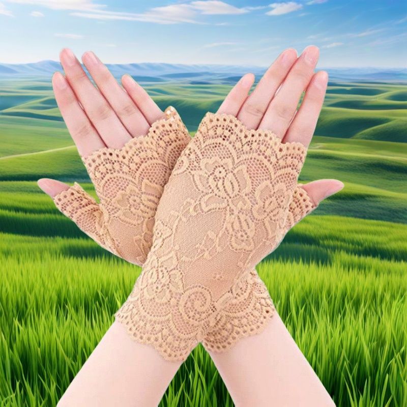 여성용 한국식 얼음 레이스 장갑, 여름 자외선 차단, 얇고 통기성, 중년 및 노인 스퀘어 댄스, 확장 반 손가락 도매