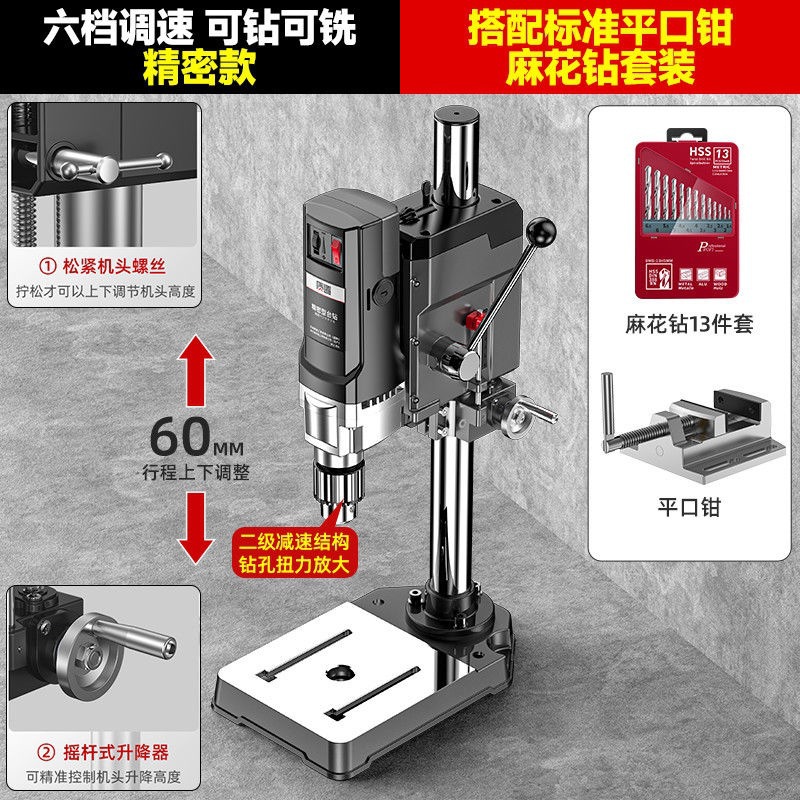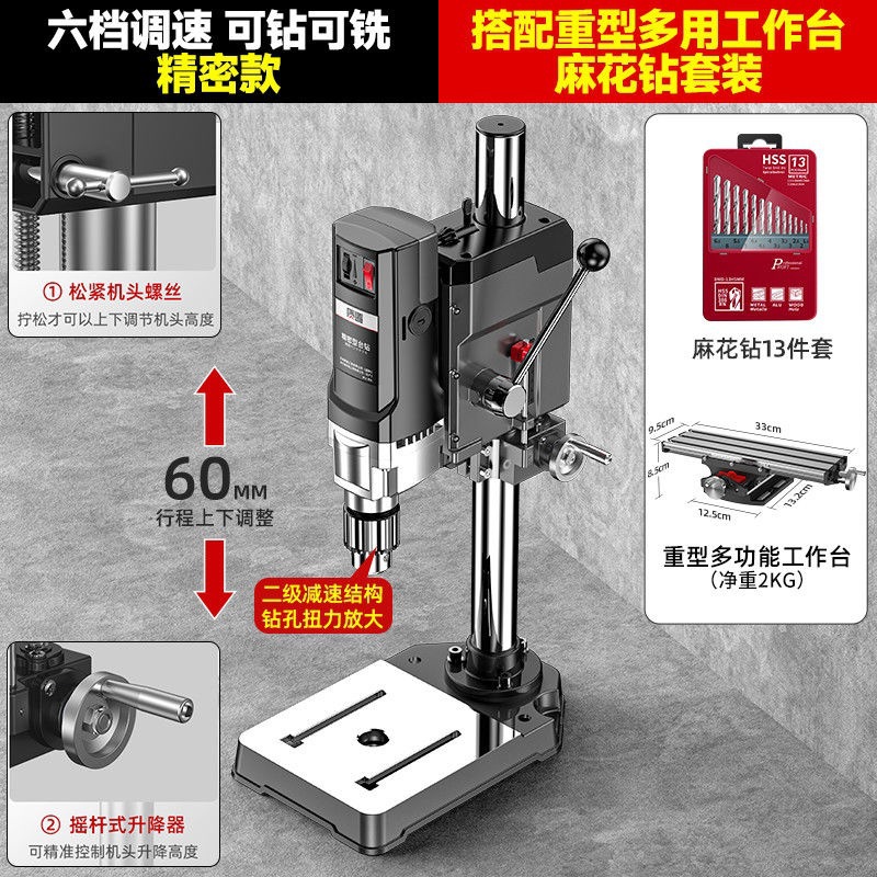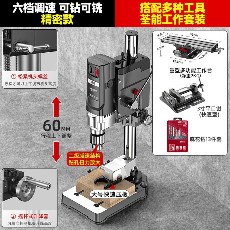 • [다중 공구 만능 작업 세트]_[6단 속도 조절 설계] 정밀 벤치 드릴과 결합