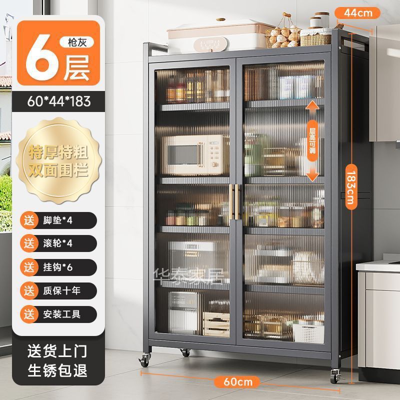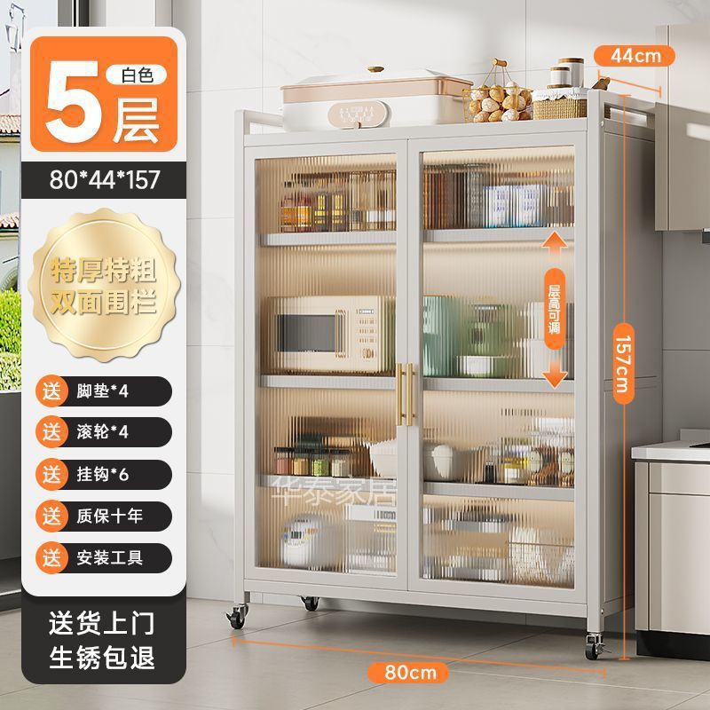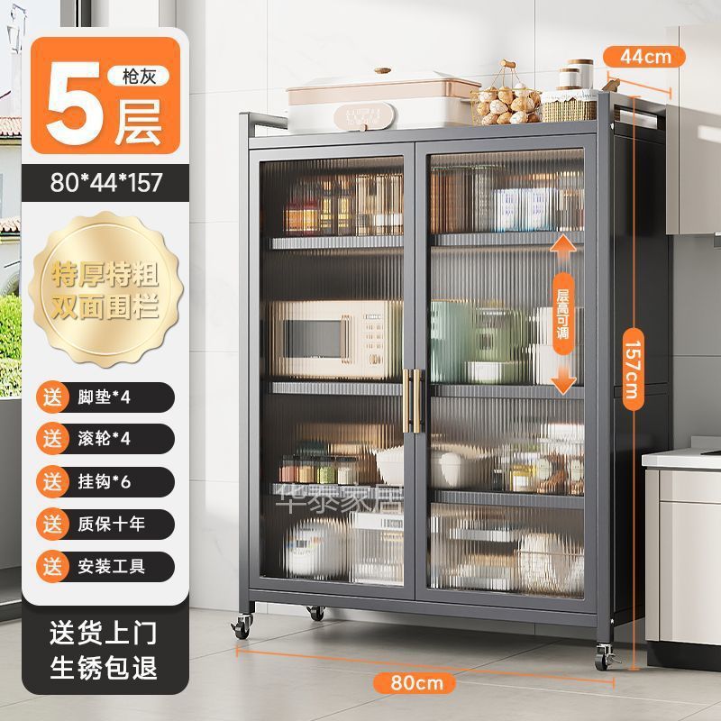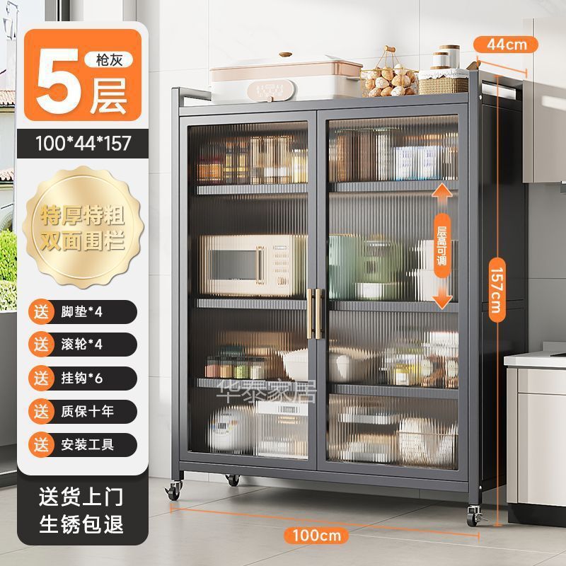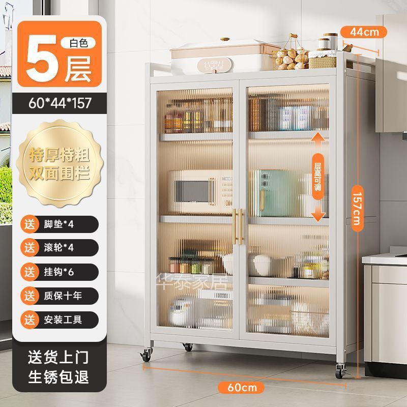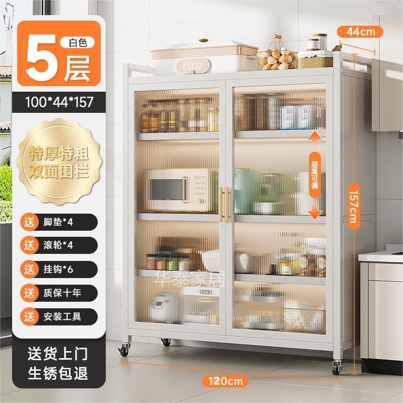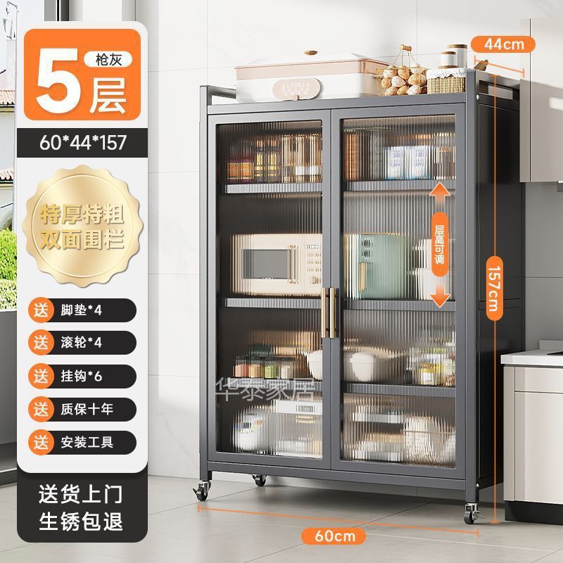 주방 수납 선반 양문형 높이 바닥 전자 레인지 다층 다기능 가정용 수납 캐비닛 수납 캐비닛