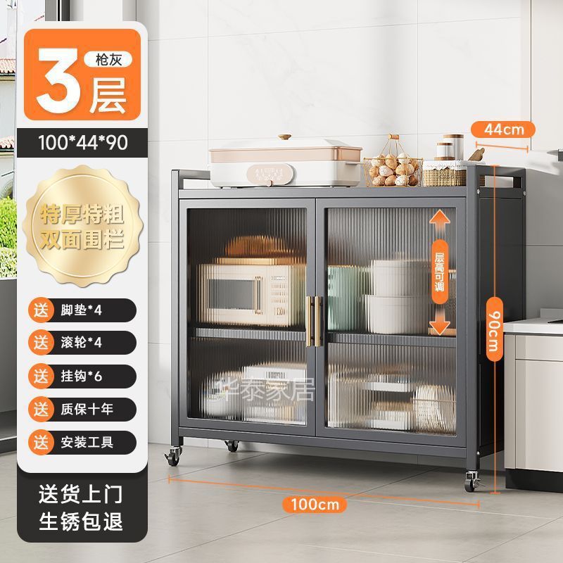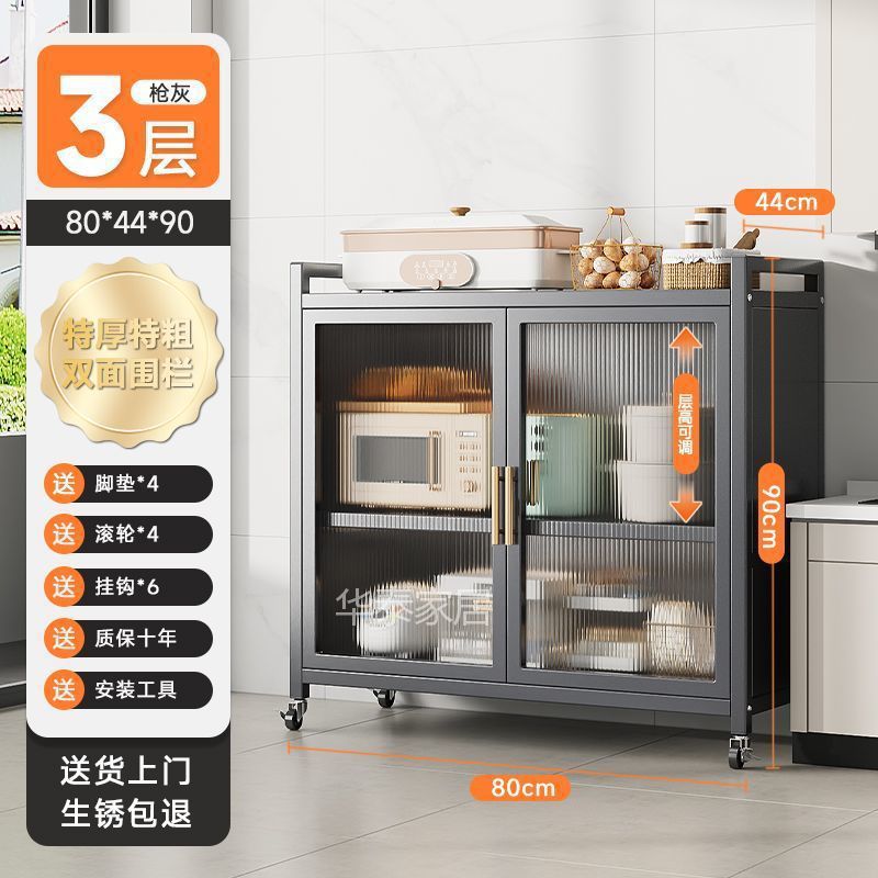 주방 수납 선반 양문형 높이 바닥 전자 레인지 다층 다기능 가정용 수납 캐비닛 수납 캐비닛스토어 가기