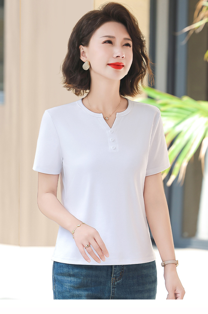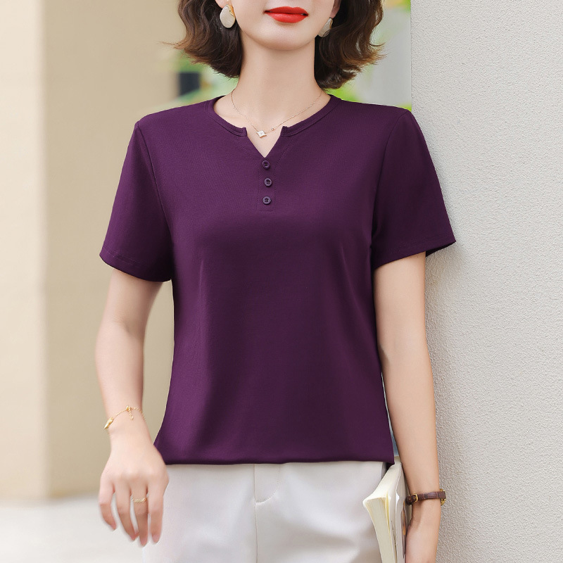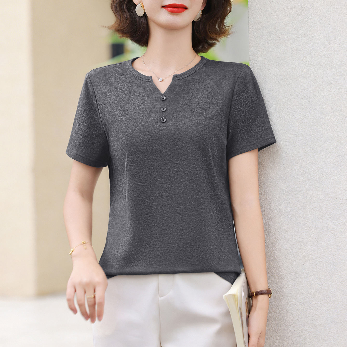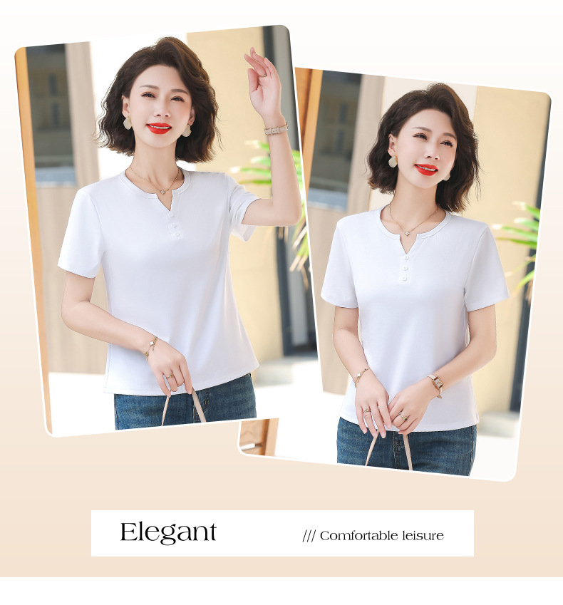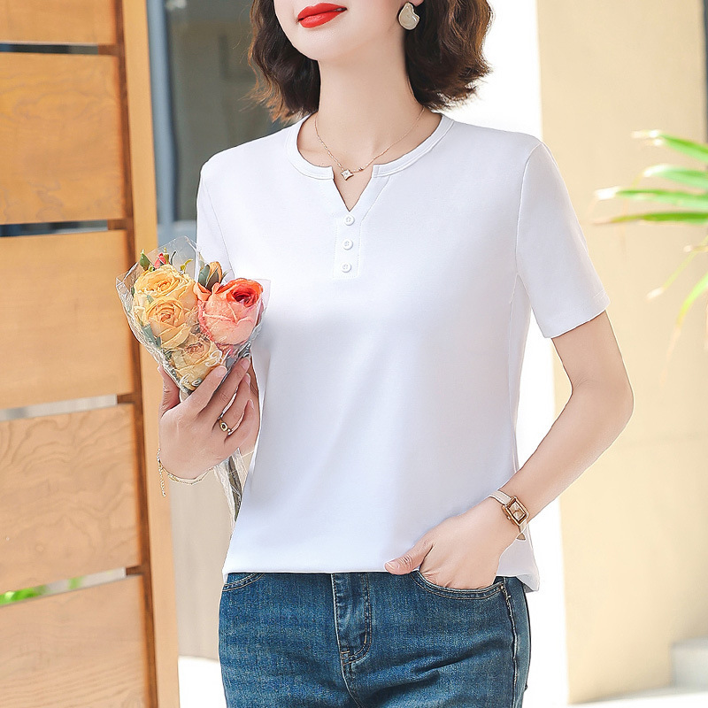 여성용 브이넥 숏슬리브 티셔츠 2026년 신상 여름 인기 여성복 슬림핏 예쁜 나이를 잊게 하는 상의 반팔 티셔츠