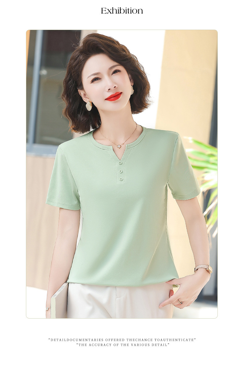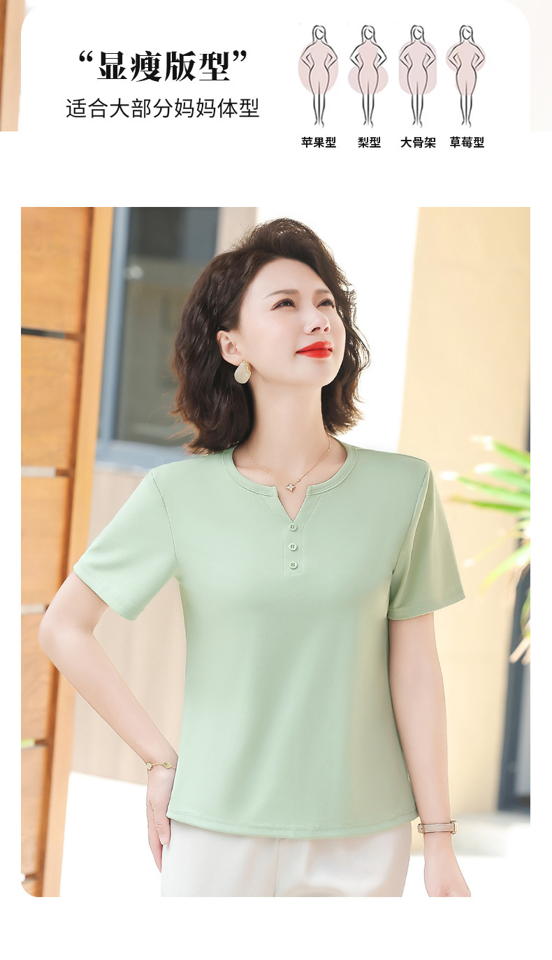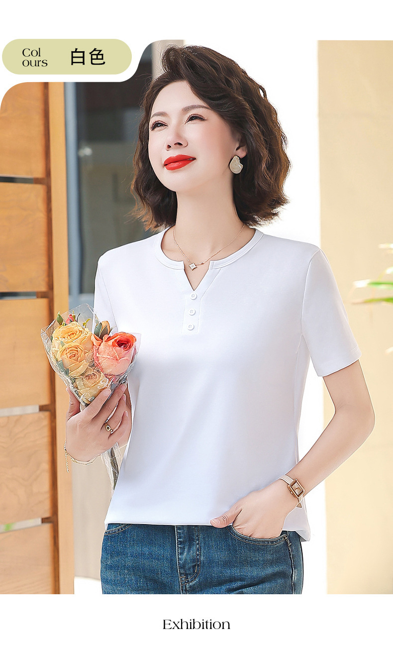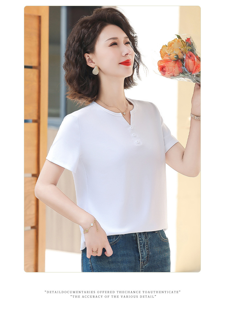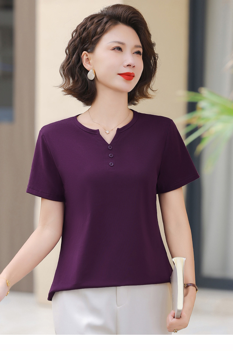 여성용 브이넥 숏슬리브 티셔츠 2026년 신상 여름 인기 여성복 슬림핏 예쁜 나이를 잊게 하는 상의 반팔 티셔츠