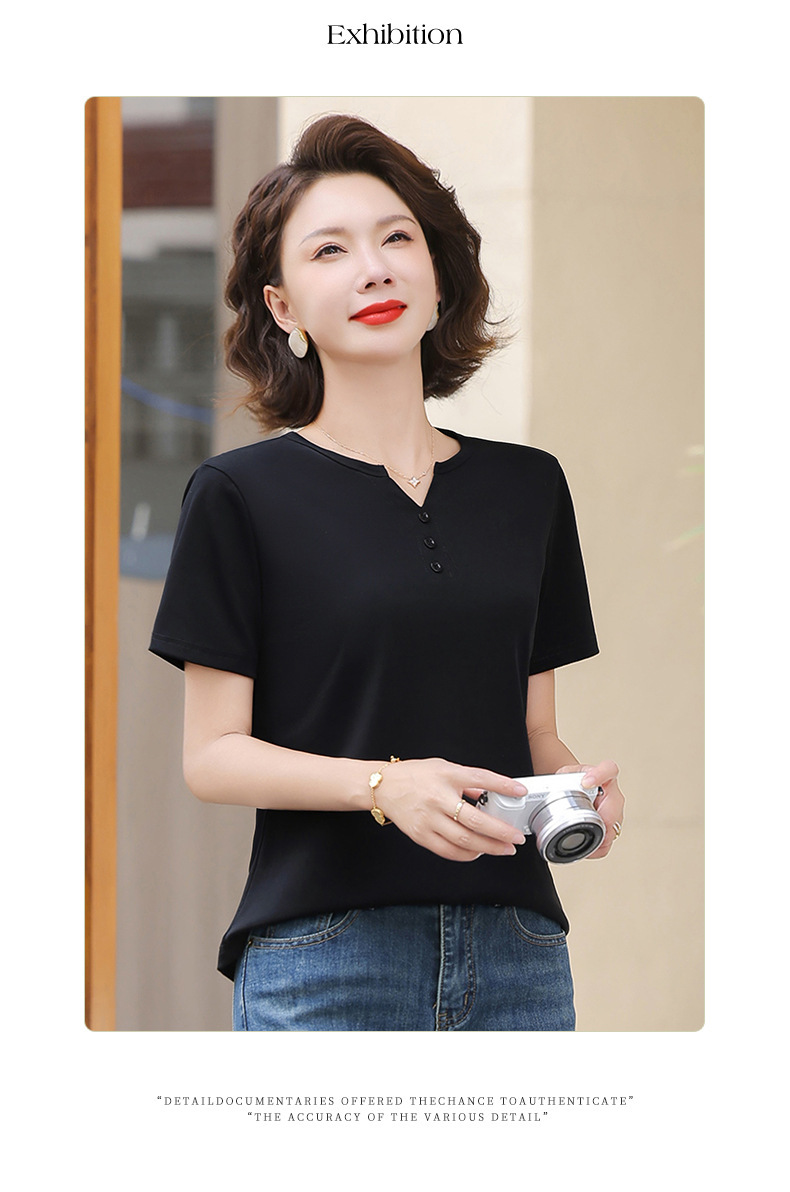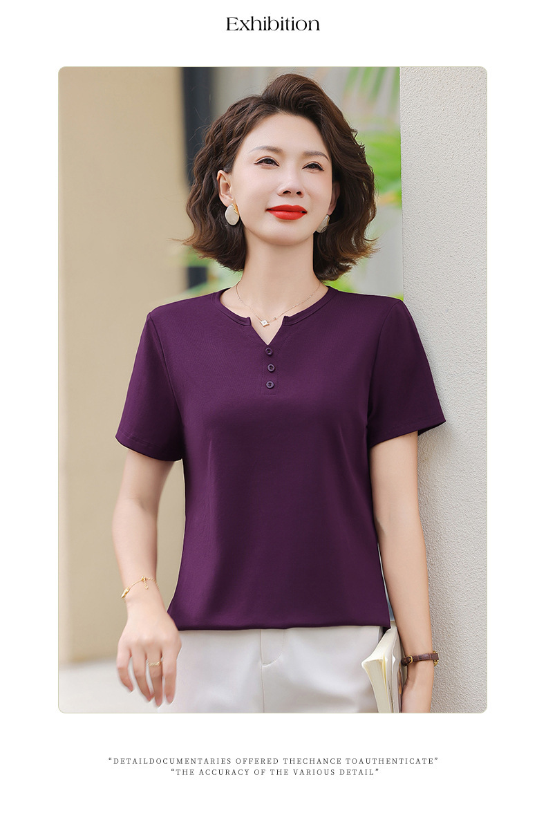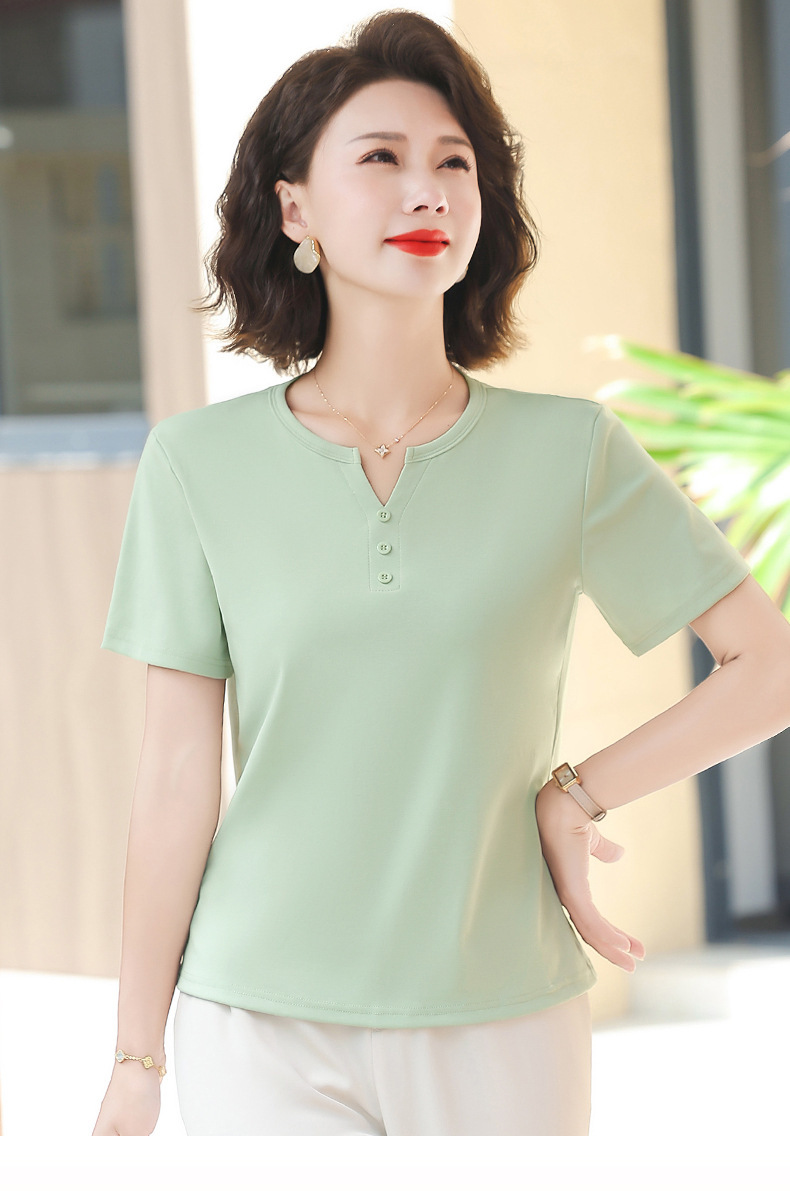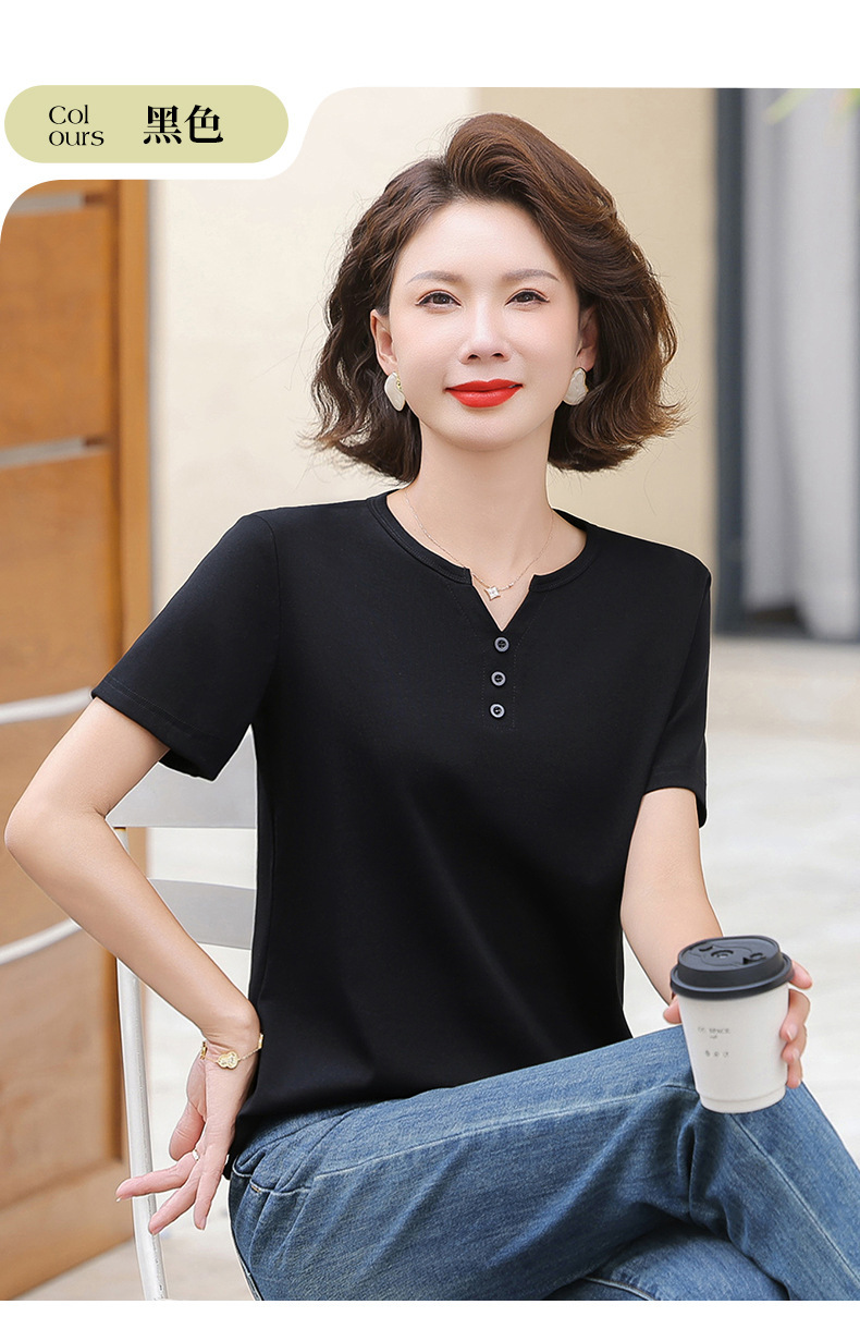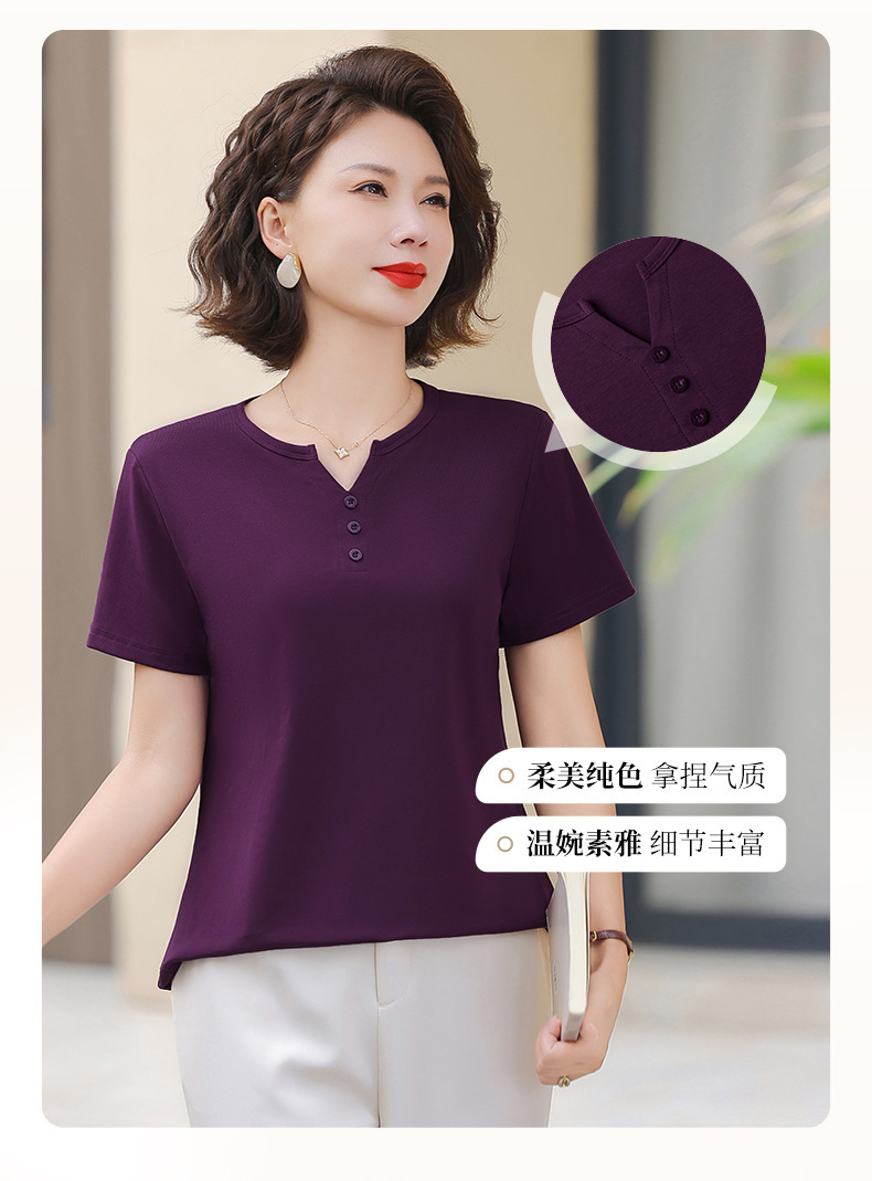 여성용 브이넥 숏슬리브 티셔츠 2026년 신상 여름 인기 여성복 슬림핏 예쁜 나이를 잊게 하는 상의 반팔 티셔츠