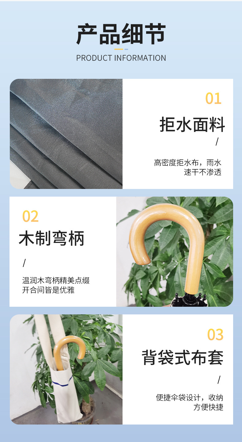 곡선형 나무 손잡이 우산, 로고, 그림, 이름 인쇄 가능, 나무 손잡이 맞춤 제작, 햇볕과 비 모두를 막아주는 우산, 햇빛과 비 모두를 막아주는 우산, 자외선 차단스토어 가기
