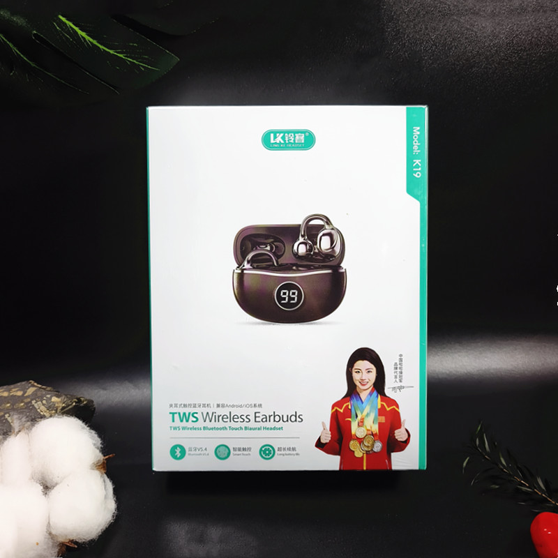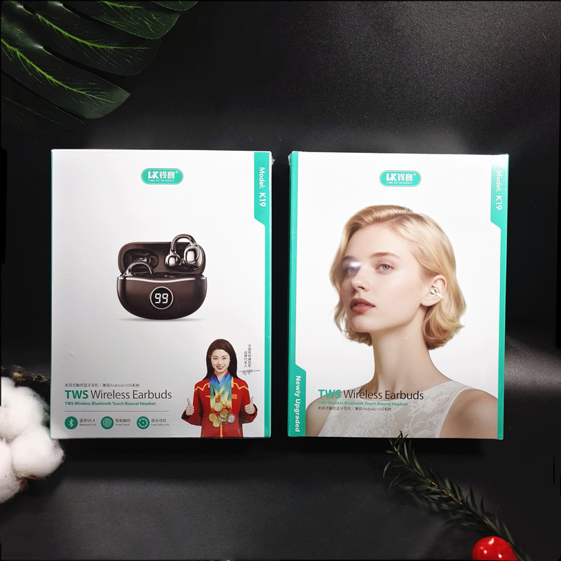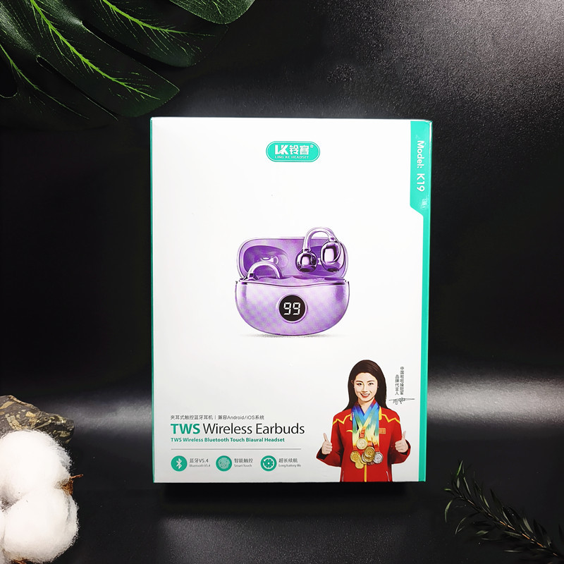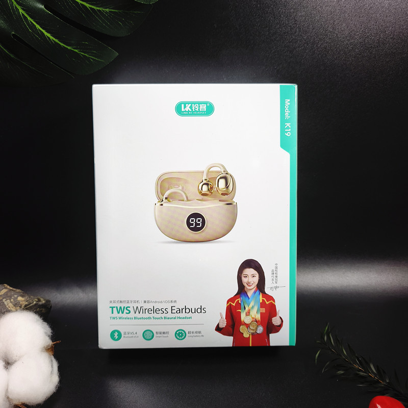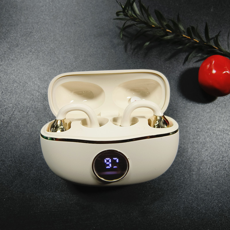 노래 듣기용 이어클립형 블루투스 헤드셋, 디지털 충전함이 포함된 고화질 통화, 대기용 블루투스 헤드셋