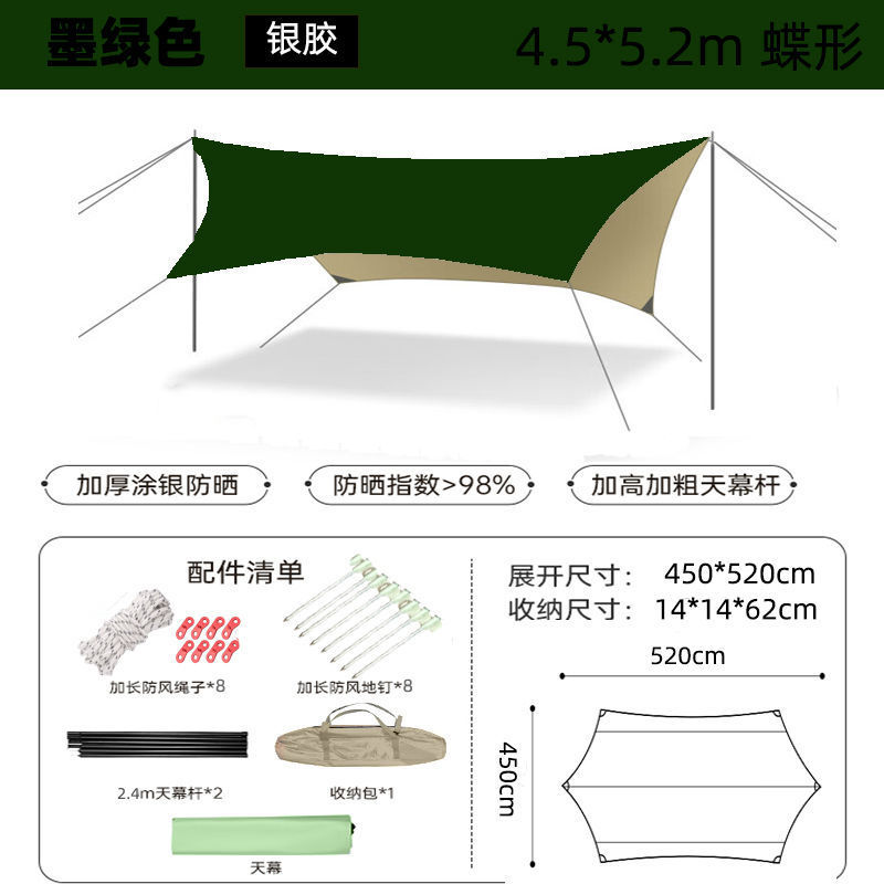 캐노피 캠핑 두꺼운 단일 방수 은도금 나비 모양 캠핑 자외선 방지 휴대용 텐트 천막
