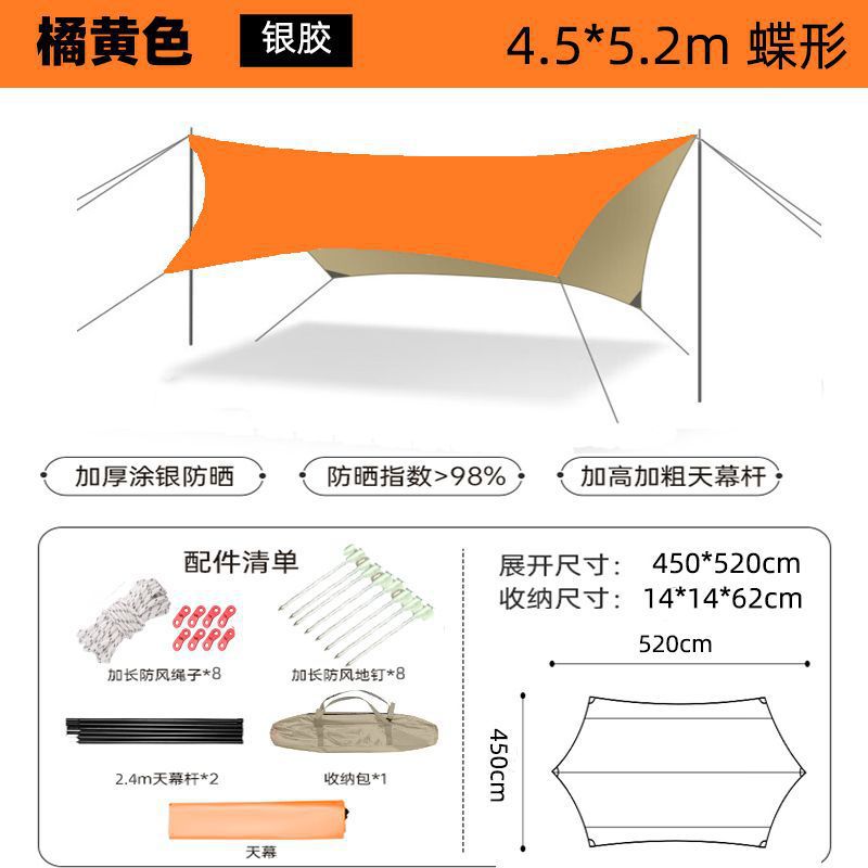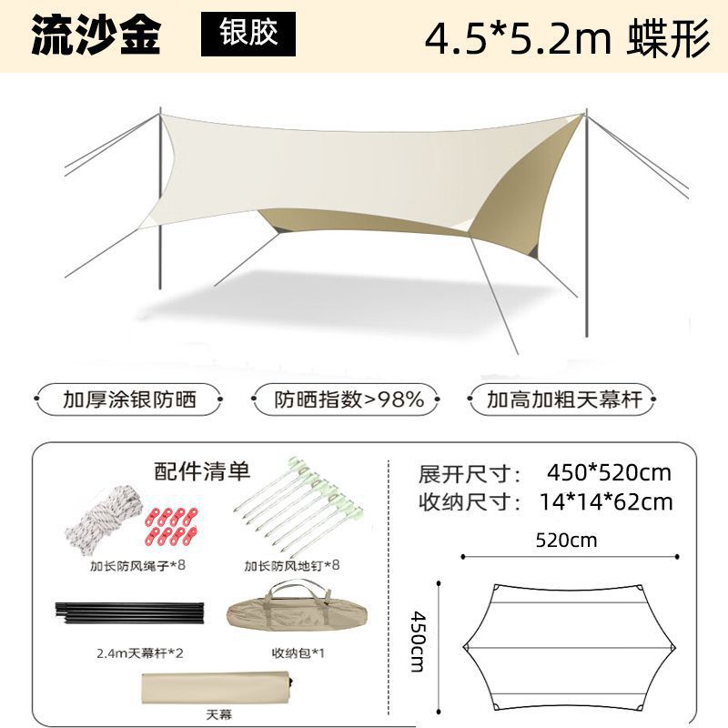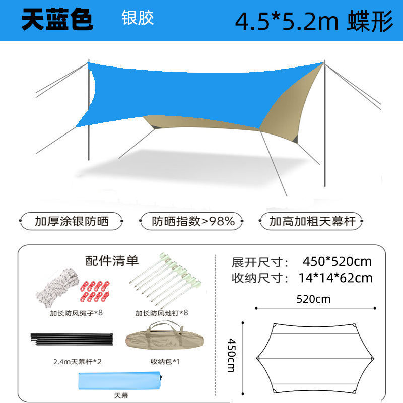 캐노피 캠핑 두꺼운 단일 방수 은도금 나비 모양 캠핑 자외선 방지 휴대용 텐트 천막스토어 가기
