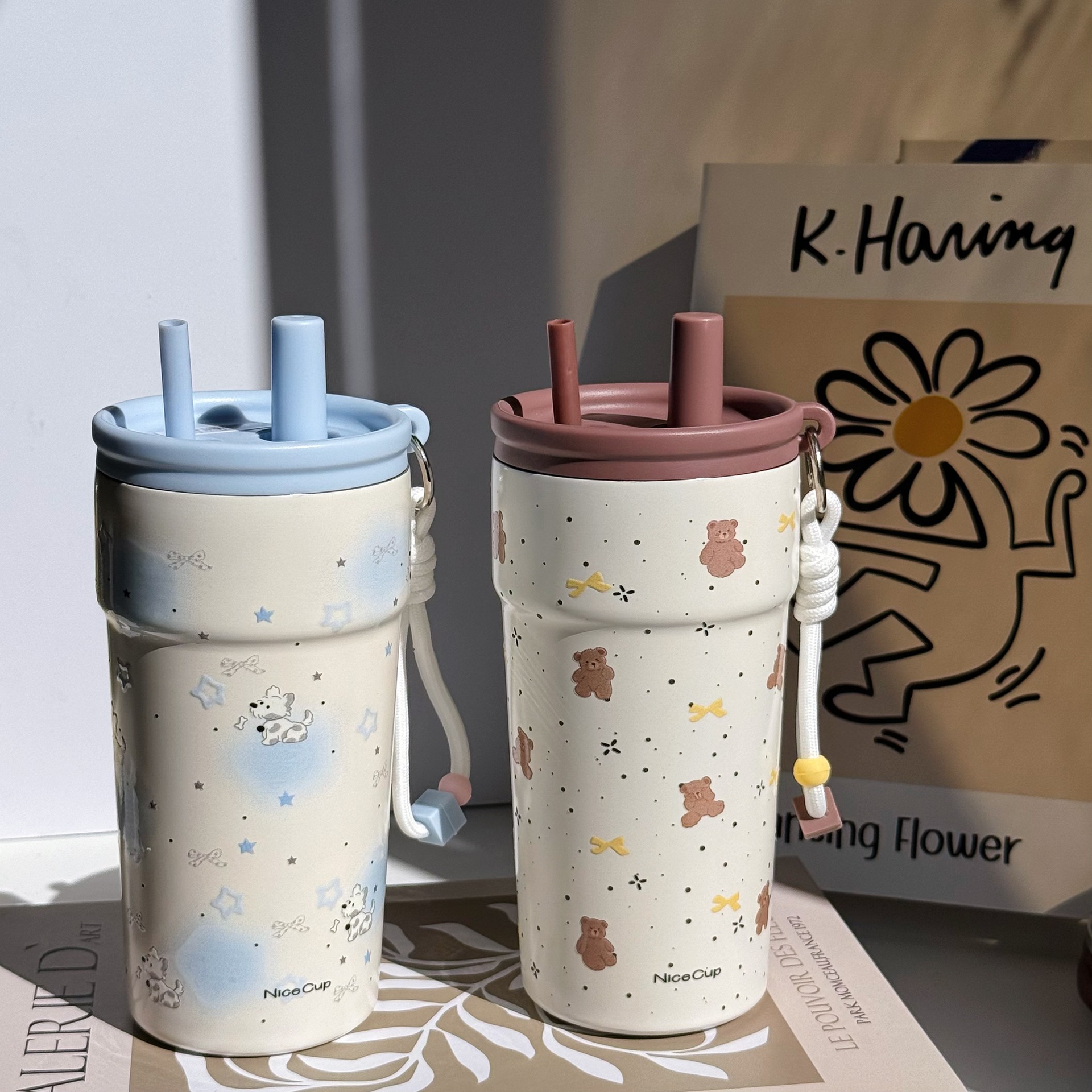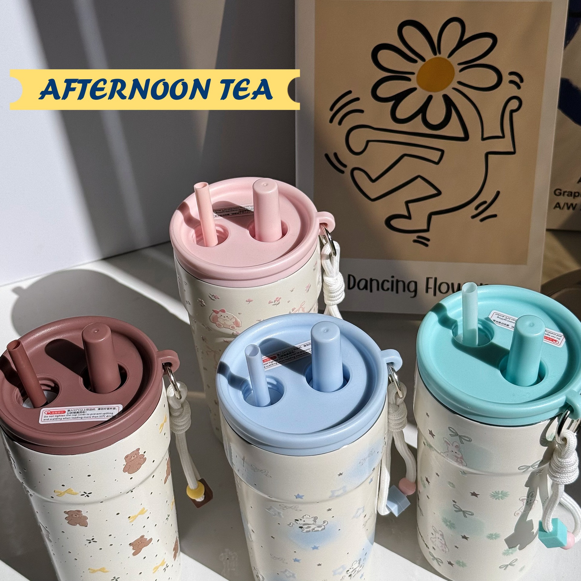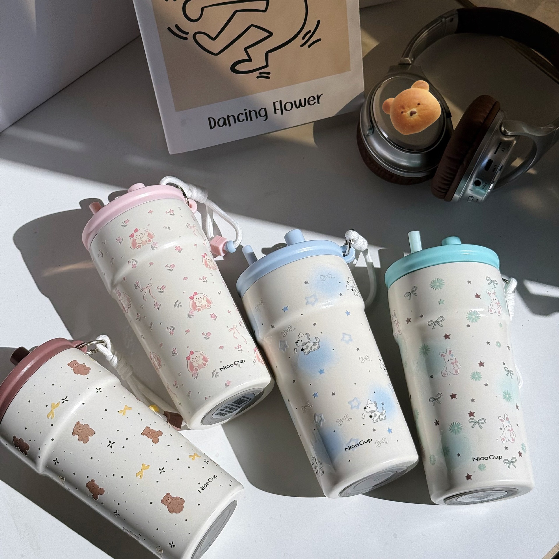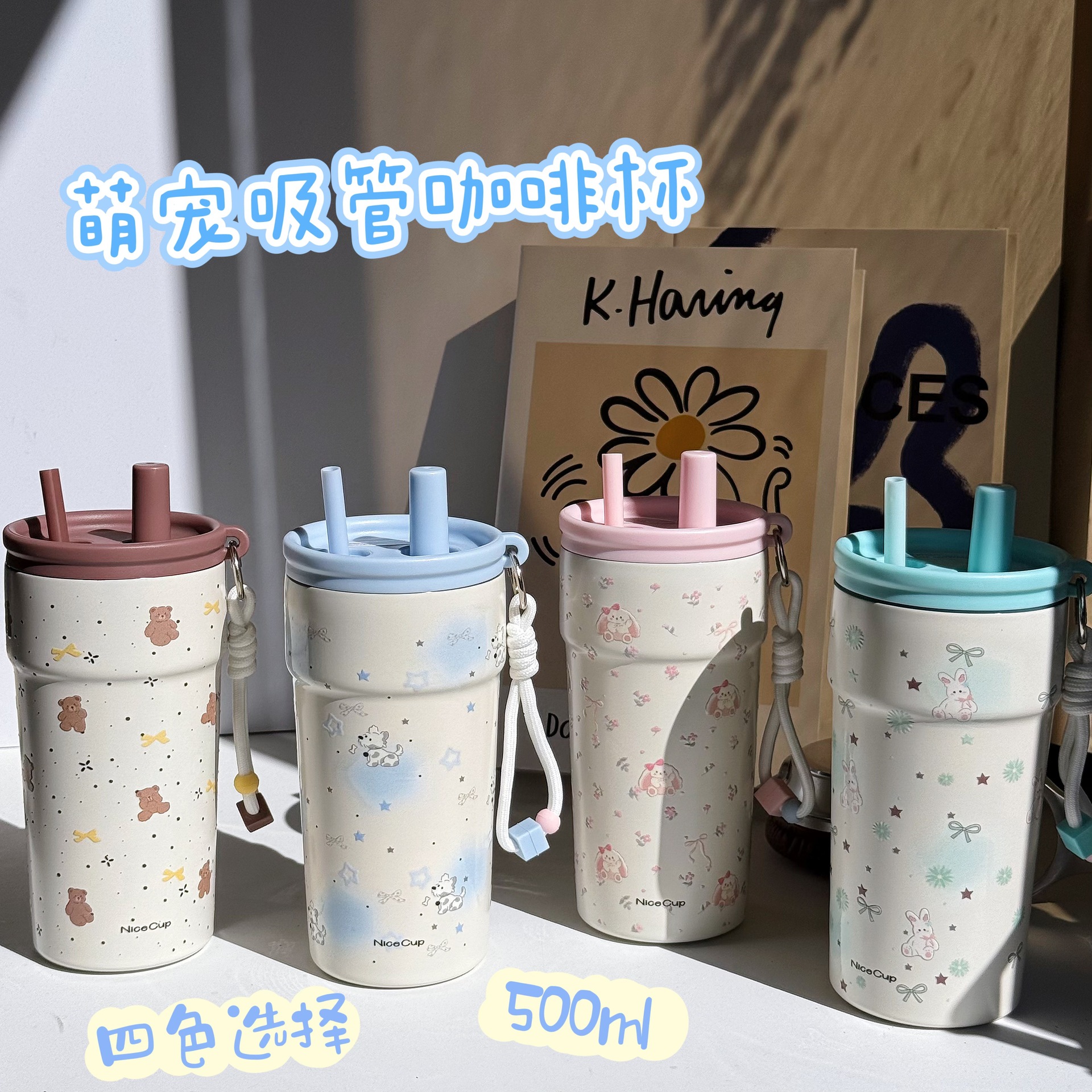 새로운 스테인레스 스틸 라이너 아이스 컵 500ml 차와 물 분리 대용량 컵 야외 자동차 휴대용 보온병 컵