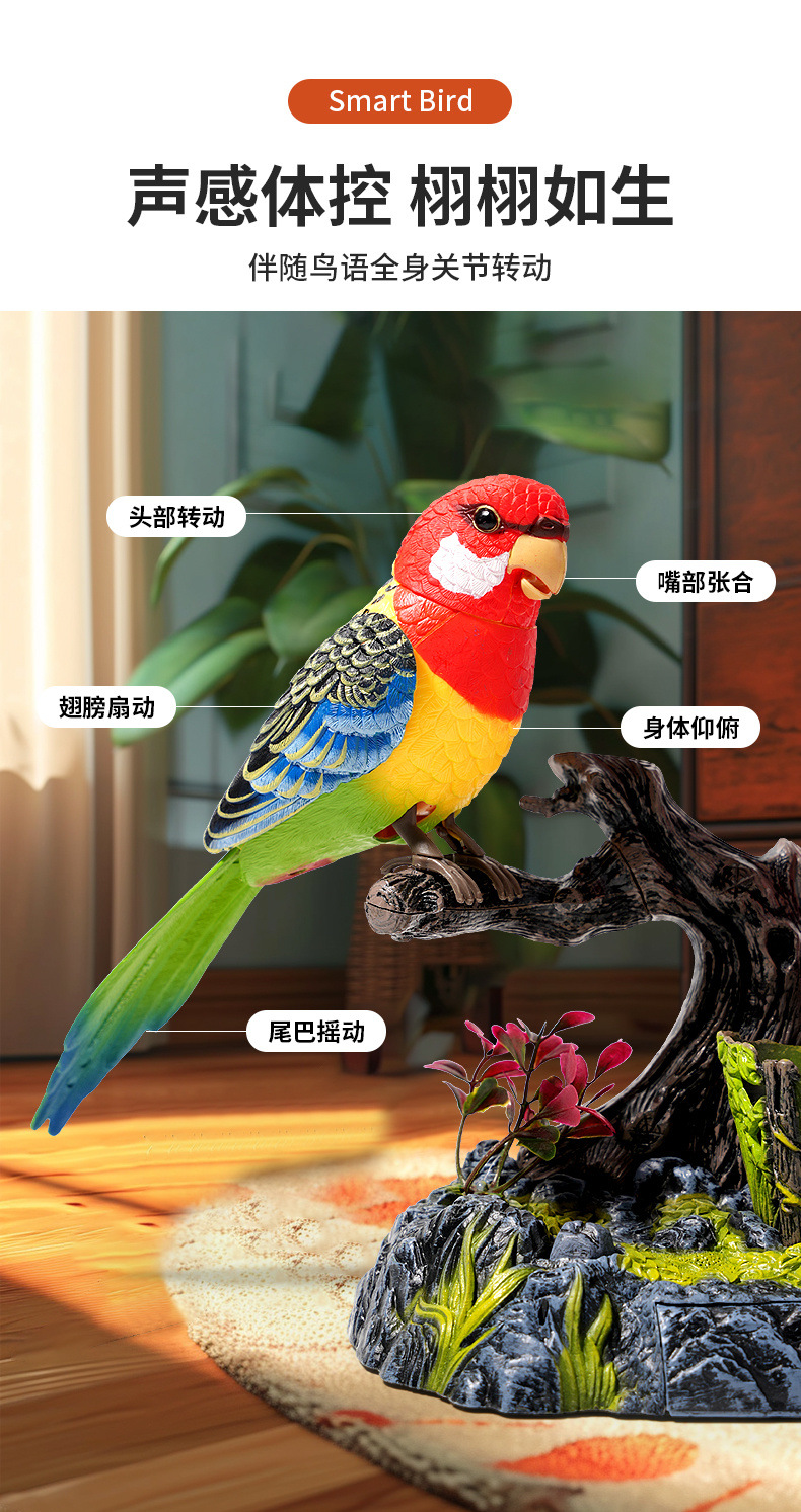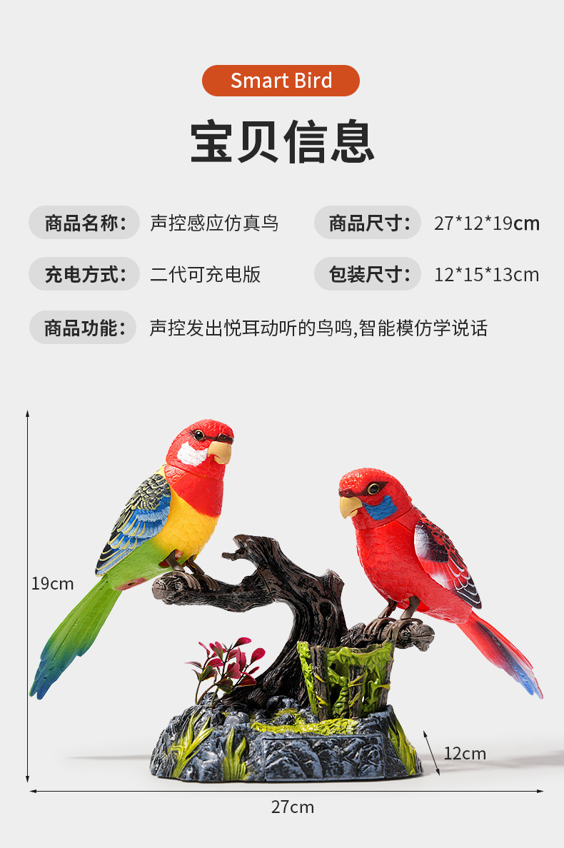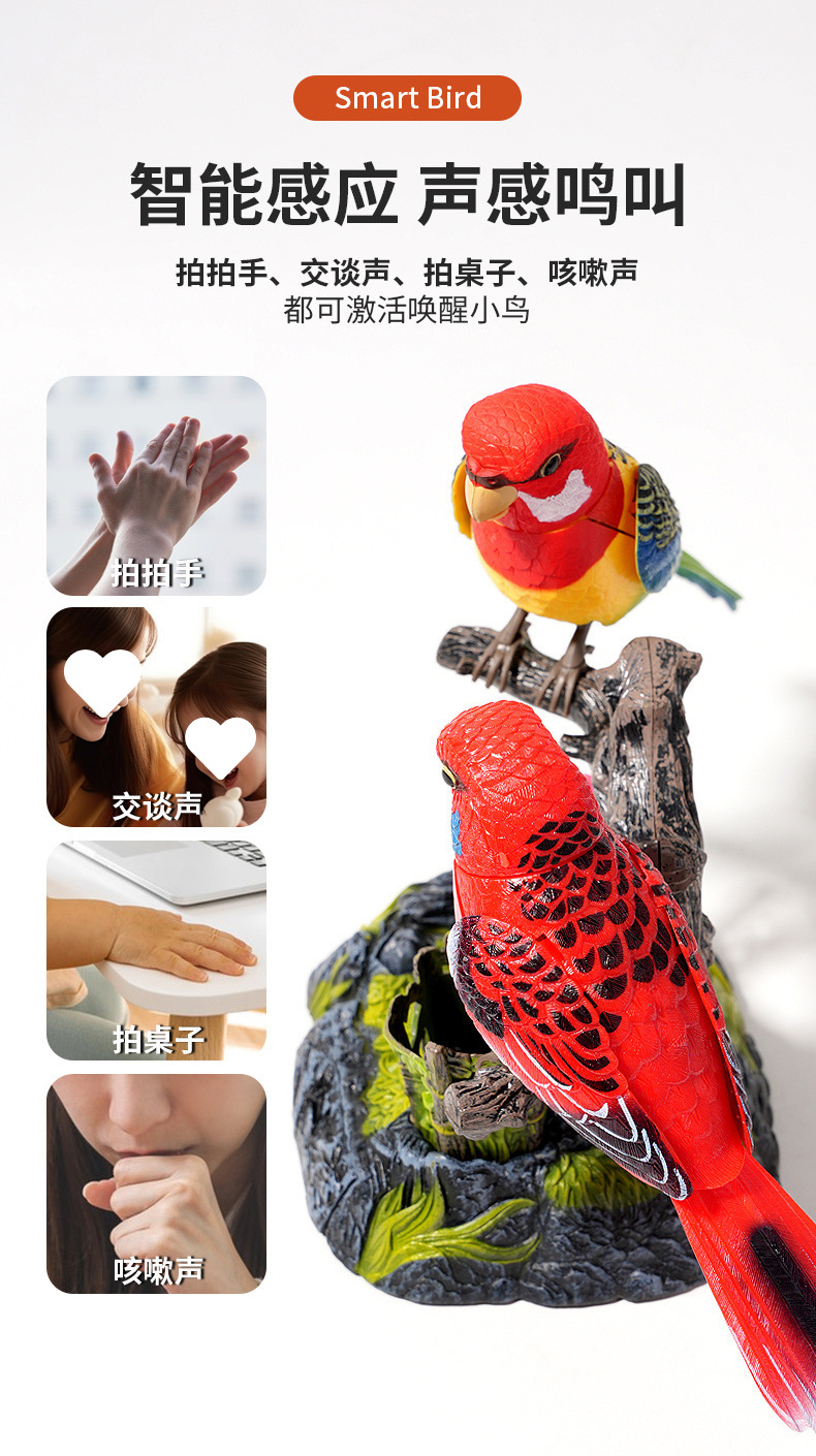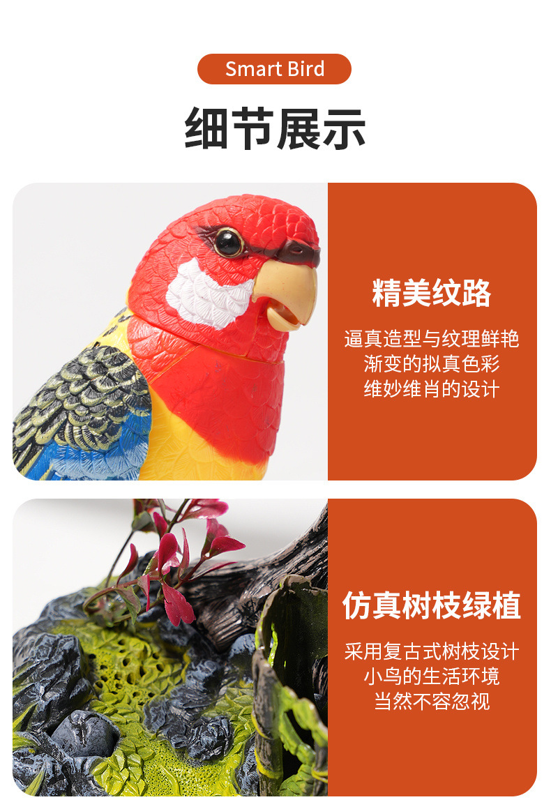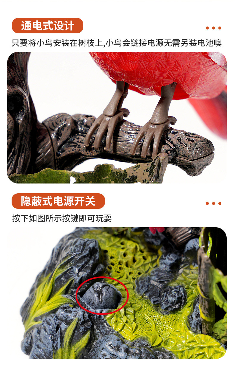 • 특별 배터리 버전 - 한 마리의 새가 움직이고 울 수 있습니다.