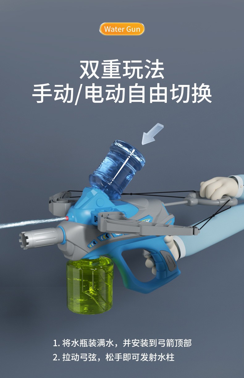 국경 간 전기 석궁 물총 어린이 대화 형 풀 아웃 스프레이 건 자동 활과 화살 야외 물 장난감
