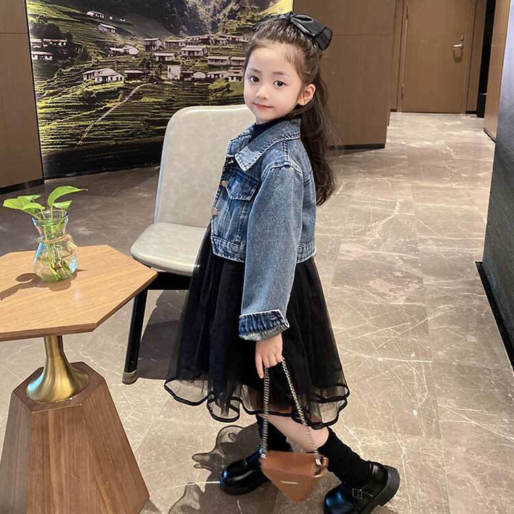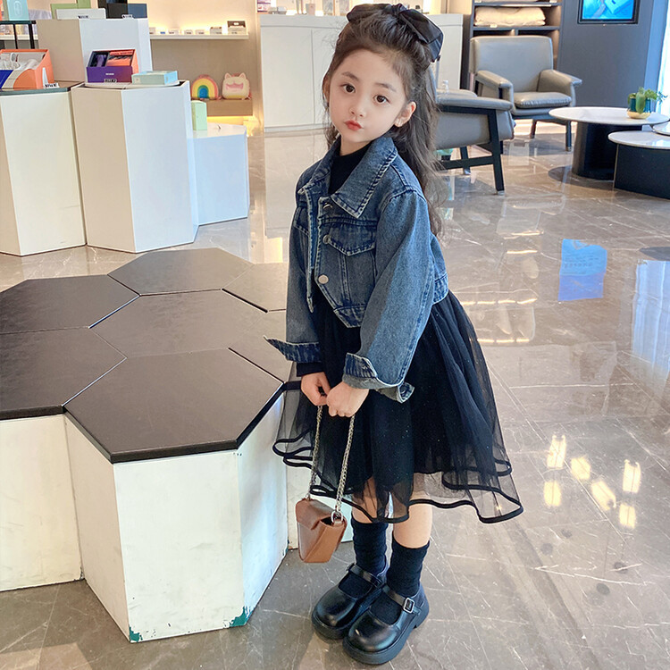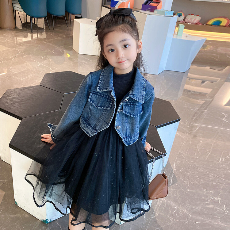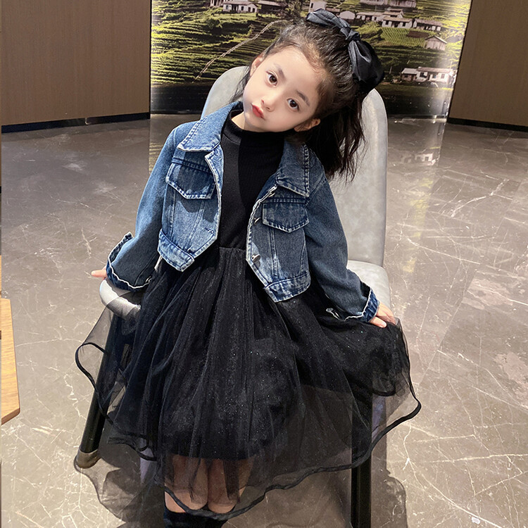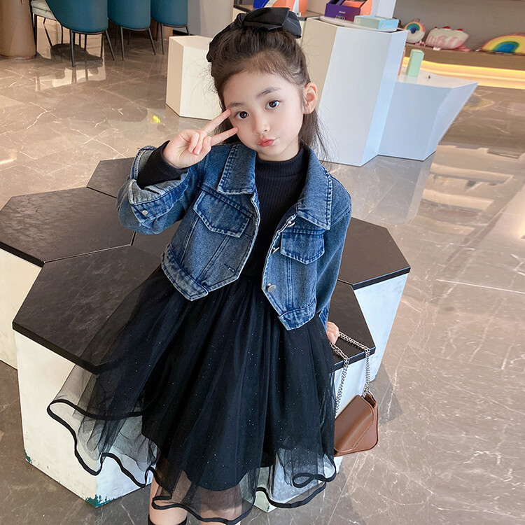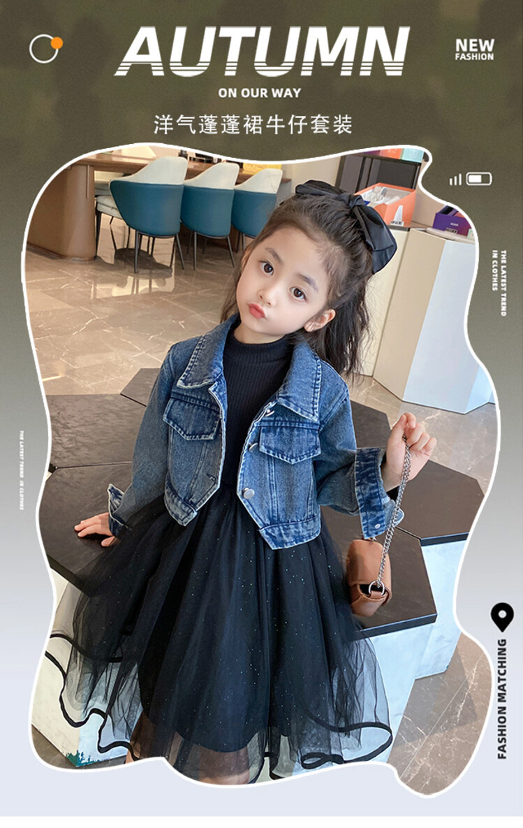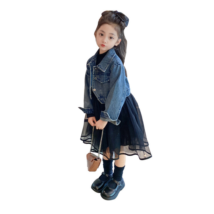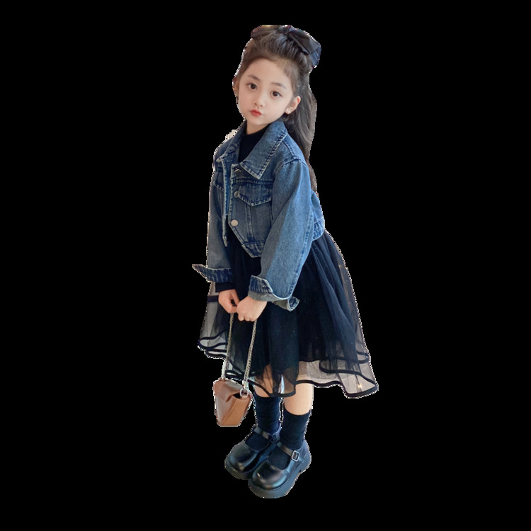 여아 정장 2025 신작 아동 데님 재킷 인터넷 연예인 아동 봄, 가을 스타일 거즈 스커트 데님 투피스 아동복스토어 가기