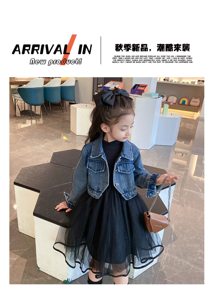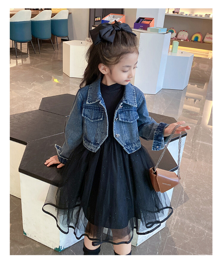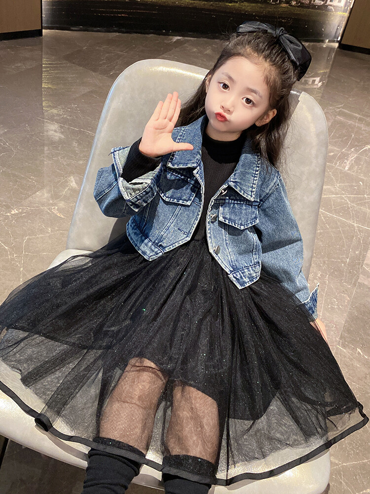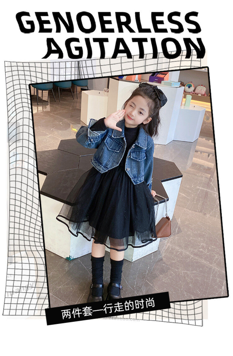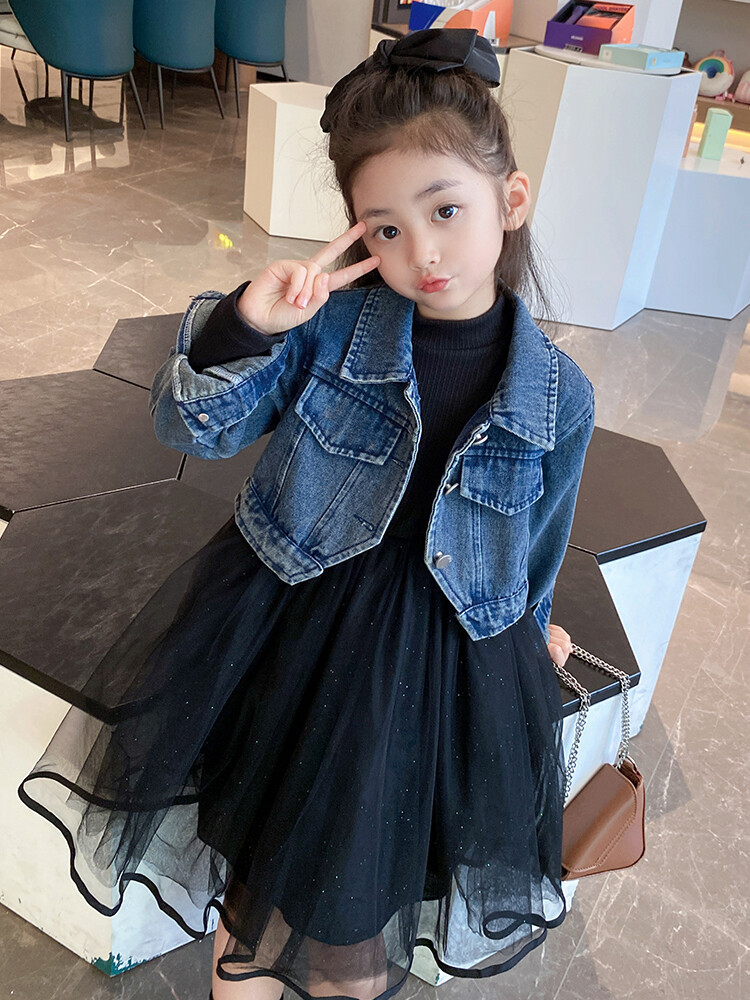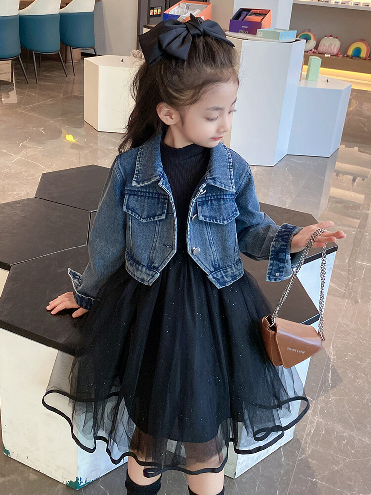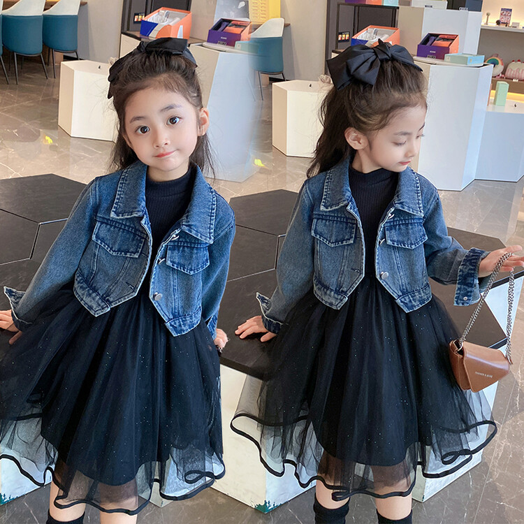 여아 정장 2025 신작 아동 데님 재킷 인터넷 연예인 아동 봄, 가을 스타일 거즈 스커트 데님 투피스 아동복스토어 가기