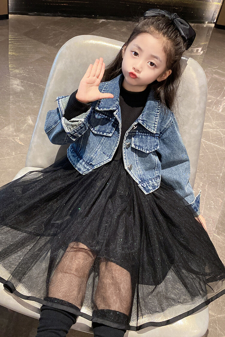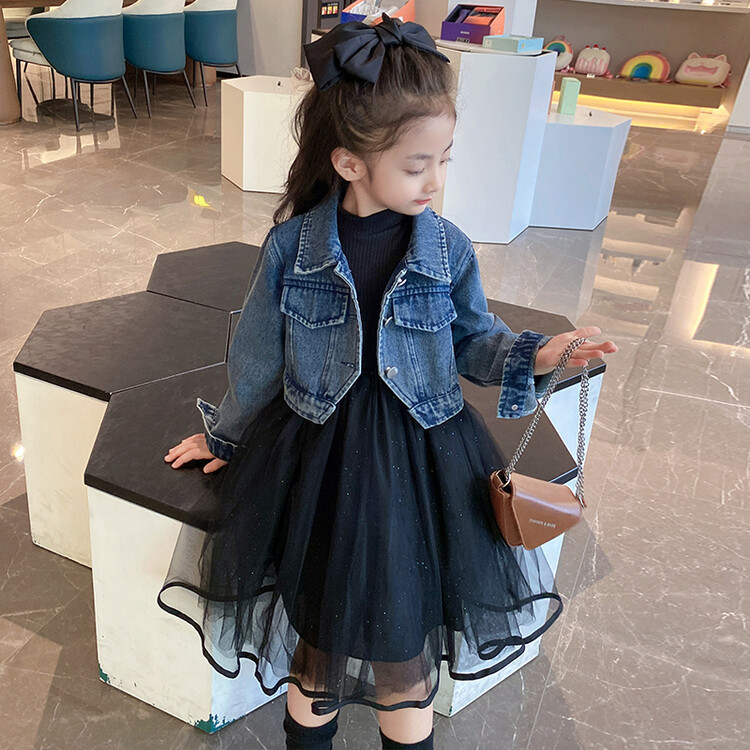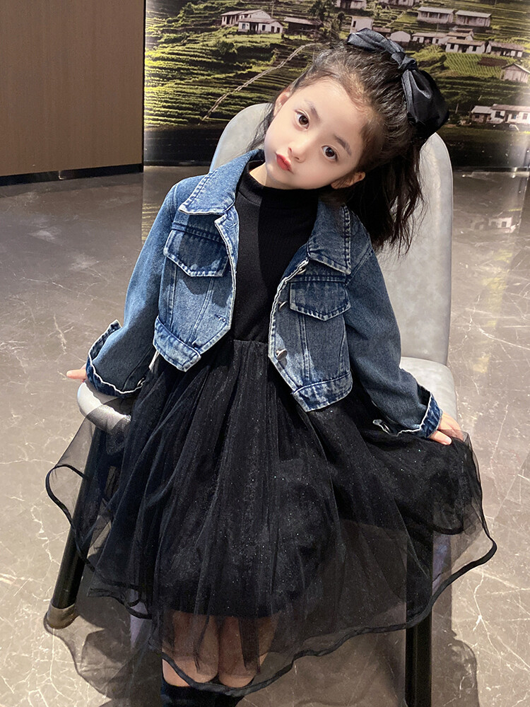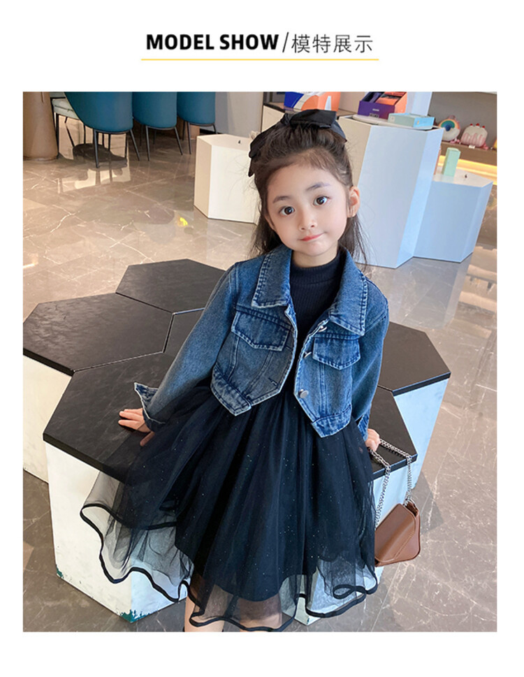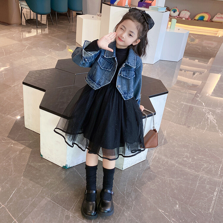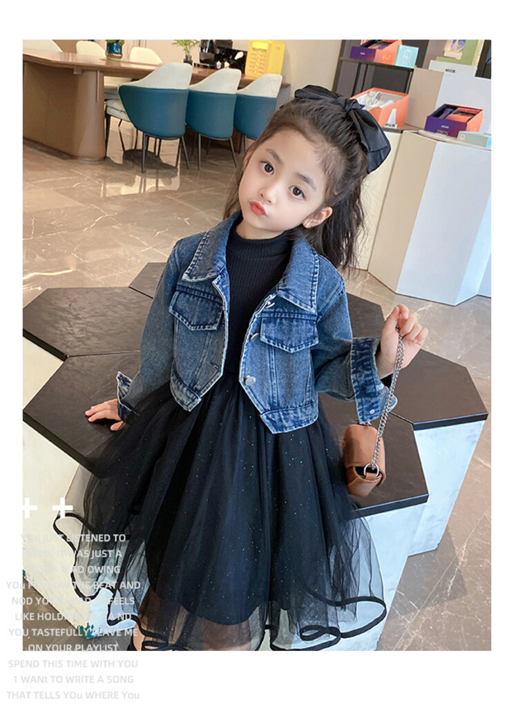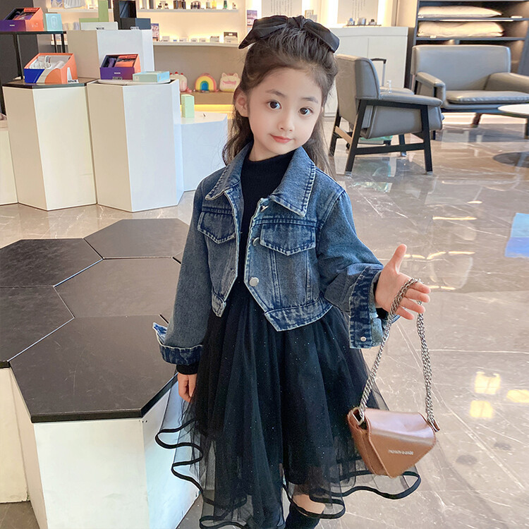 여아 정장 2025 신작 아동 데님 재킷 인터넷 연예인 아동 봄, 가을 스타일 거즈 스커트 데님 투피스 아동복스토어 가기