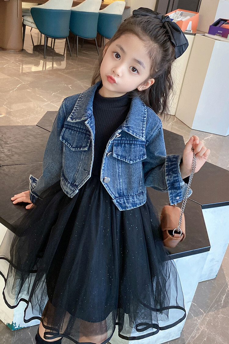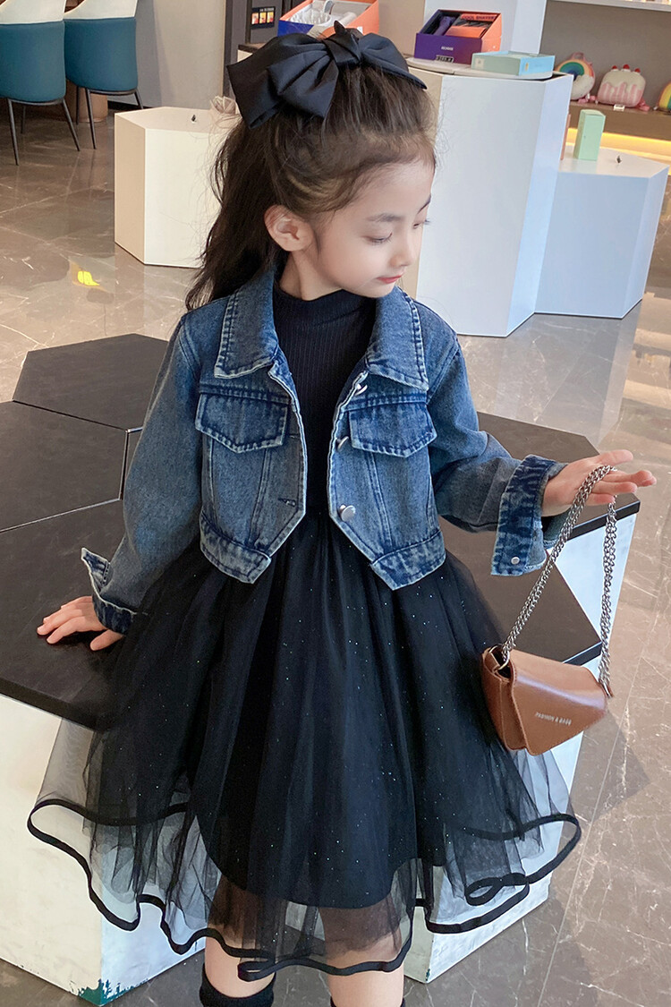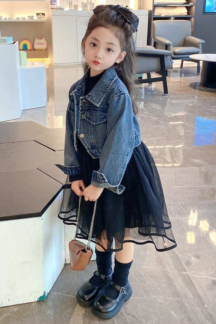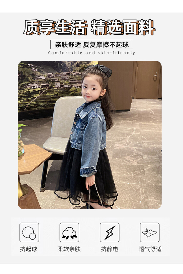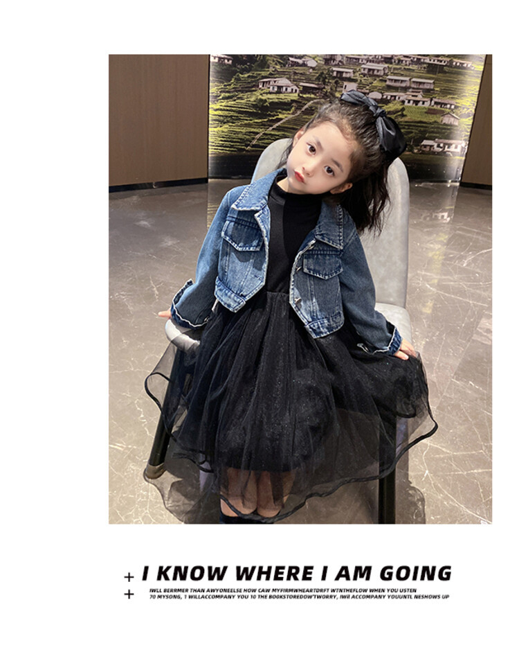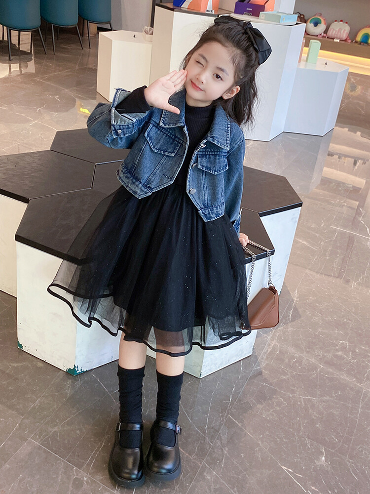 여아 정장 2025 신작 아동 데님 재킷 인터넷 연예인 아동 봄, 가을 스타일 거즈 스커트 데님 투피스 아동복스토어 가기