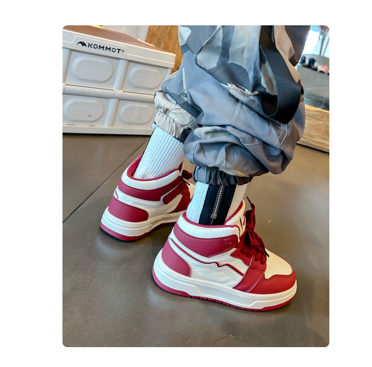 아동 운동화, 운동화, 2025 가을 신상 남학생 및 여학생 흰색 신발, 패셔너블한 미드탑 운동화, 운동화, 싱글 슈즈