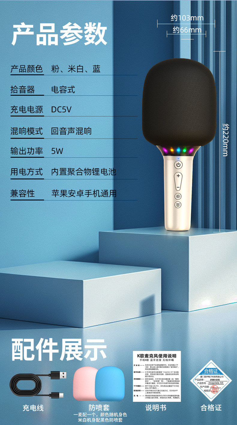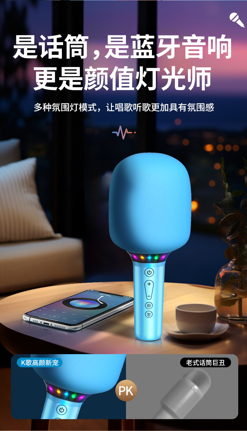 마이크 오디오 통합 마이크 노래방 휴대 전화 무선 블루투스 홈 노래 어린이 국민 노래방 스피커 무선스토어 가기