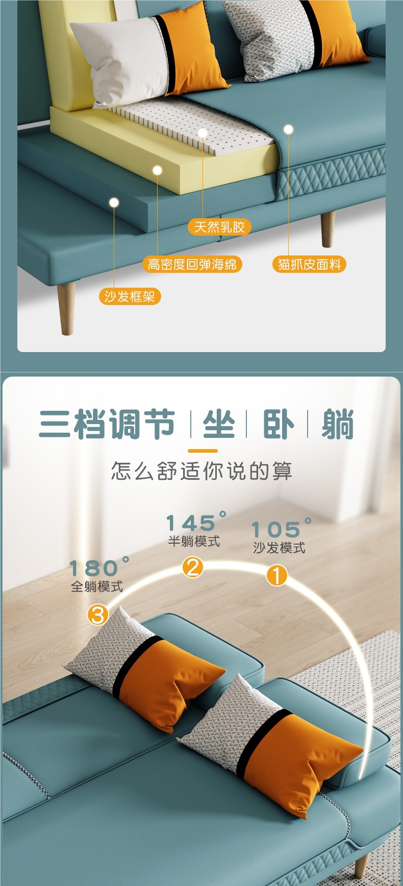 다기능 접이식 소파 베드, 이중 목적, 소형 아파트, 간단한 고양이 스크래치 가죽, 가정용 거실, 아파트, 게으른 사람들은 누워서 자고 있습니다.